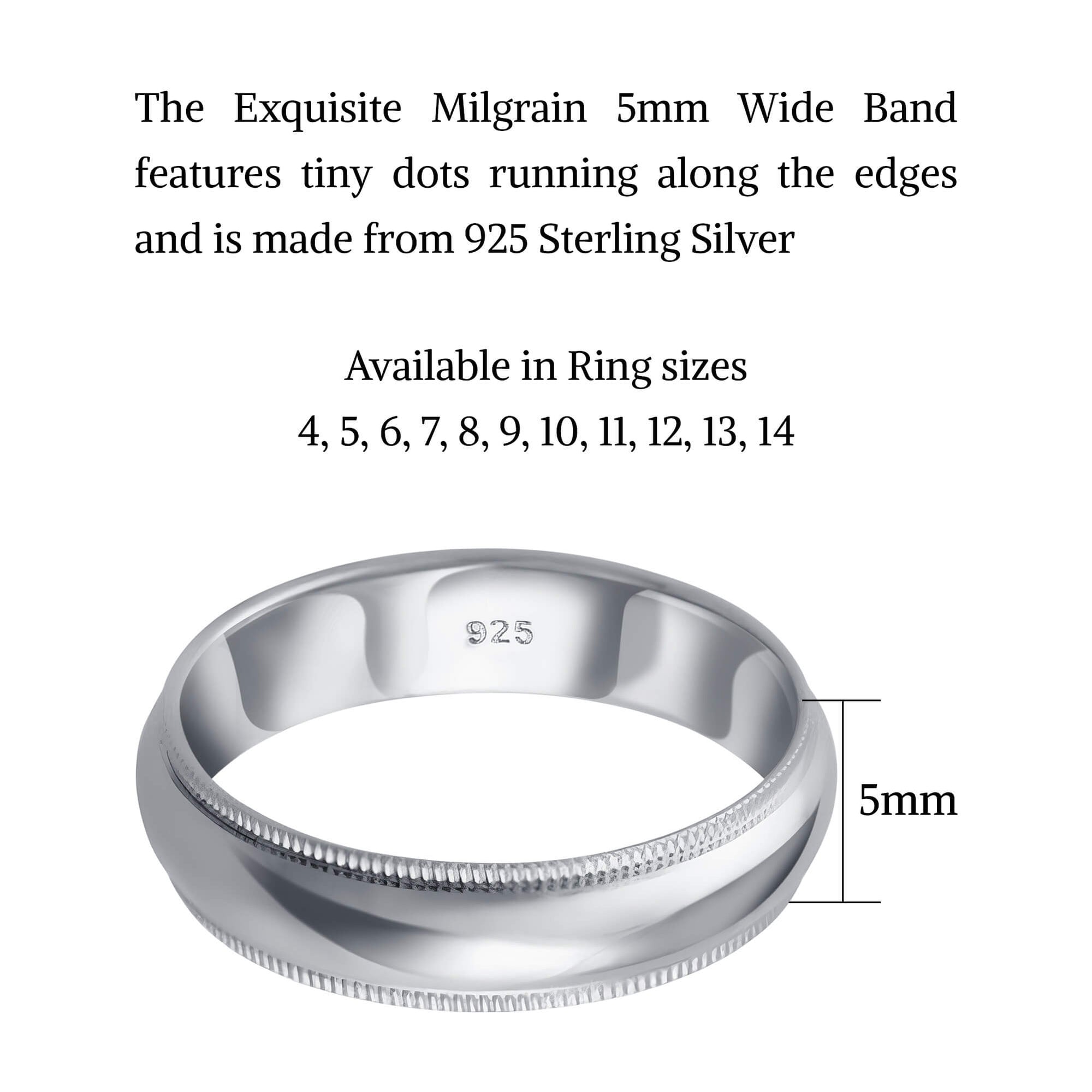 Make a statement with this classic 925 Sterling Silver 5mm Milgrain Band Ring. Its 5mm width and Milgrain accents are perfect for any occasion and its meticulous craftsmanship make it a timeless treasure. Add it to your collection today!