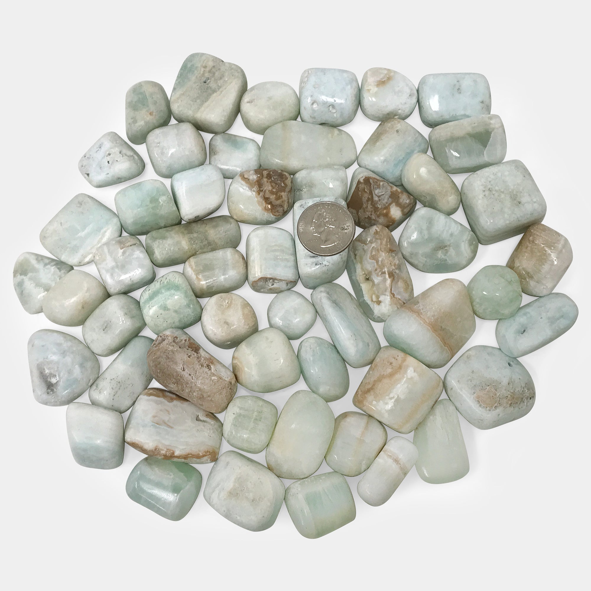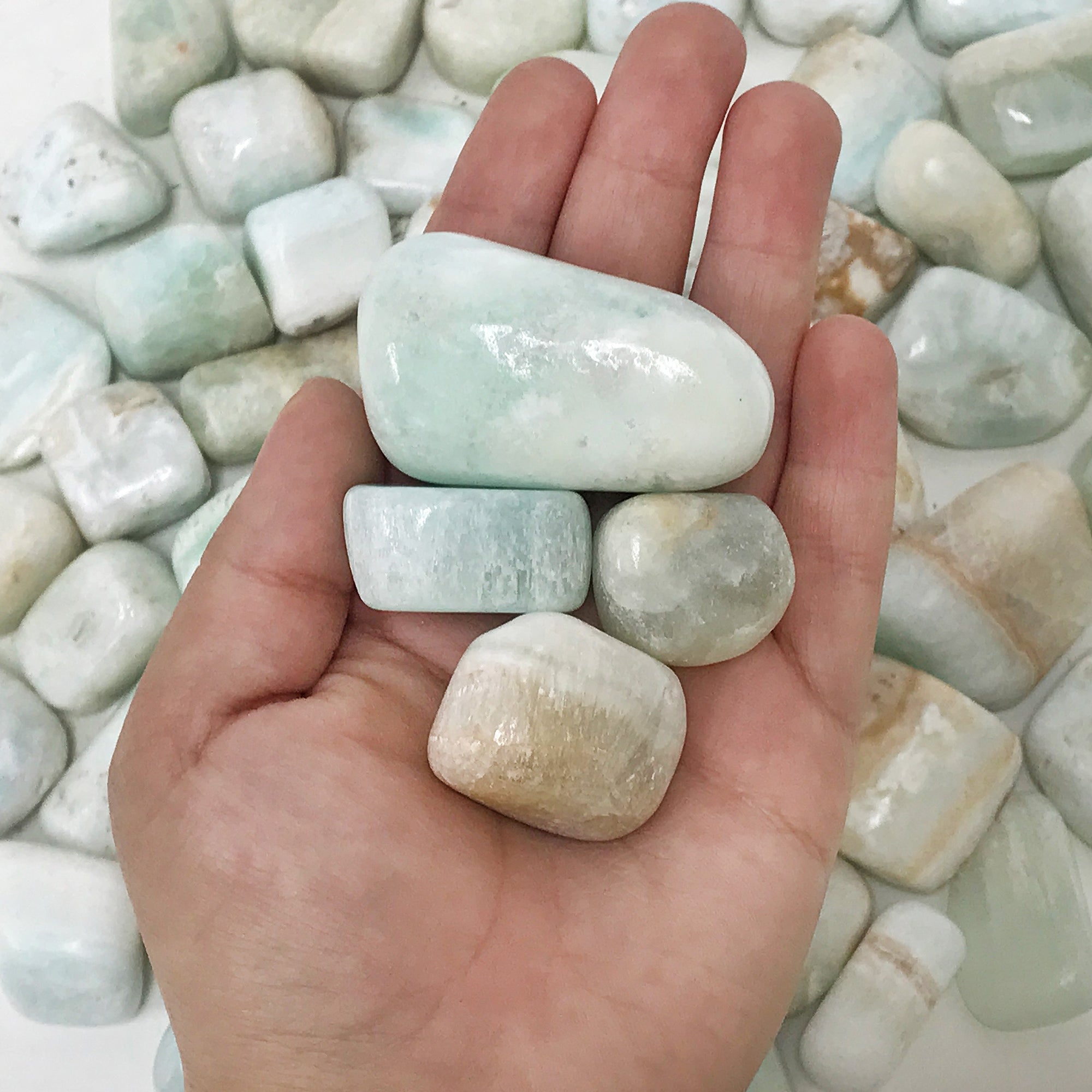 What draws customers in and captivates them to Caribbean Blue Calcite is the beautiful vibrant colors, which come together and form a stunning beach like scenery. You simply can not go wrong with these gorgeous stones! In your order you will receive one pound worth of Caribbean Blue Calcite tumbled stones. Please allow for some variance between stone such as color, size, and shape.