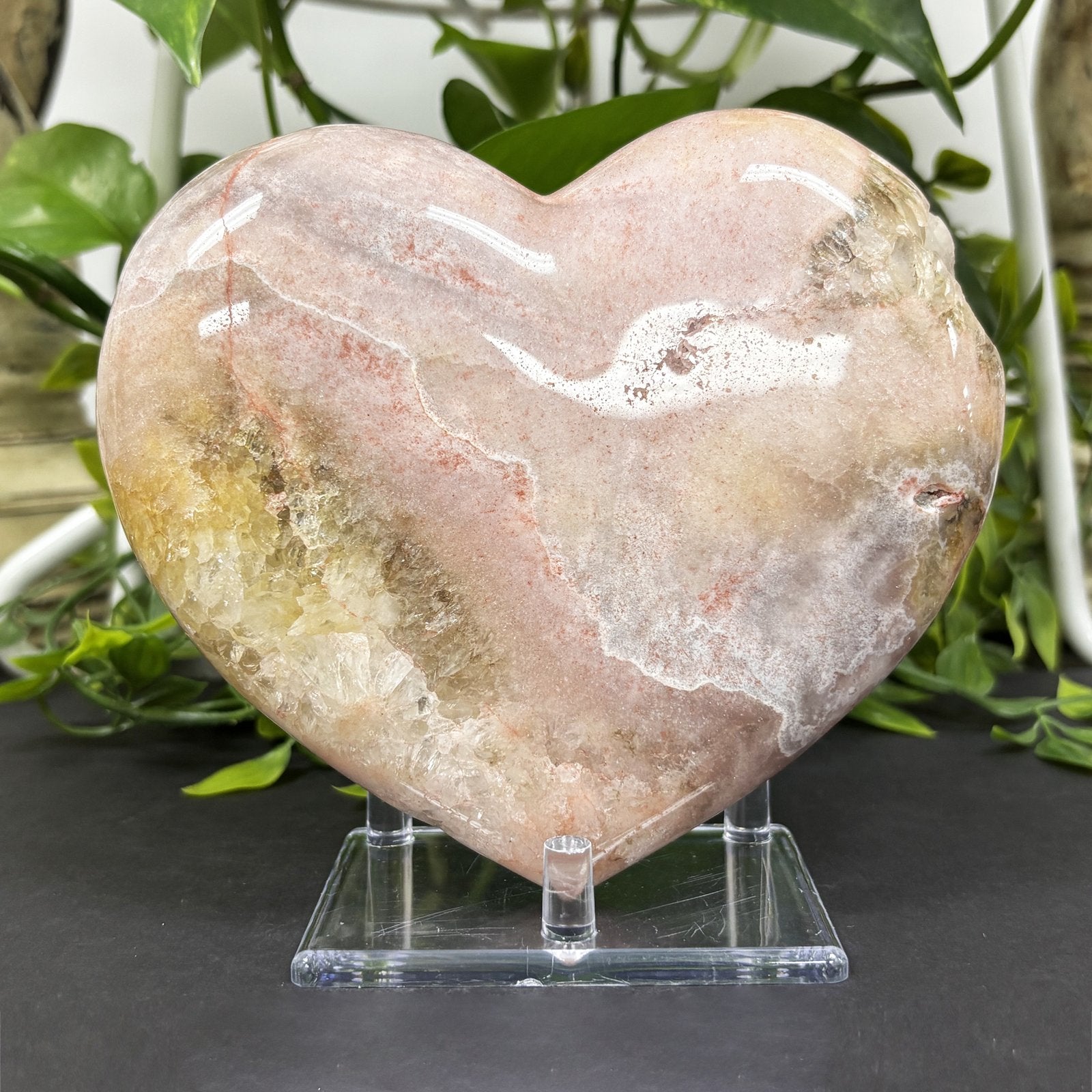 - description_tag : This Natural Pink Amethyst Heart Crystal from Brazil, available at Gem Avenue Store in Charlotte, features delicate pink hues renowned for their calming and loving energy. Expertly sourced, this heart-shaped crystal combines natural beauty with emotional healing properties, making it an ideal addition for collectors and those seeking authentic specimens to enhance meditation, love, and home dcor.