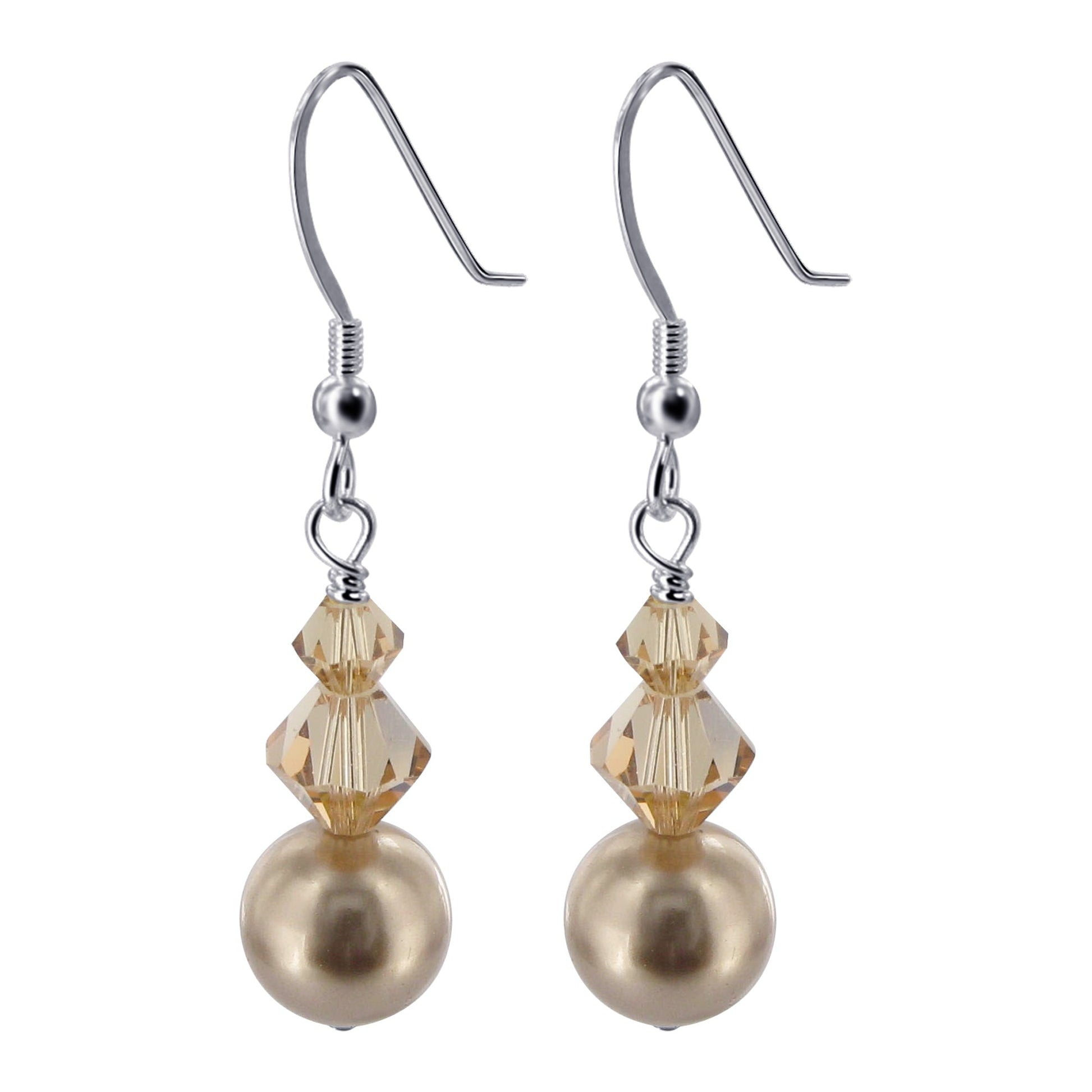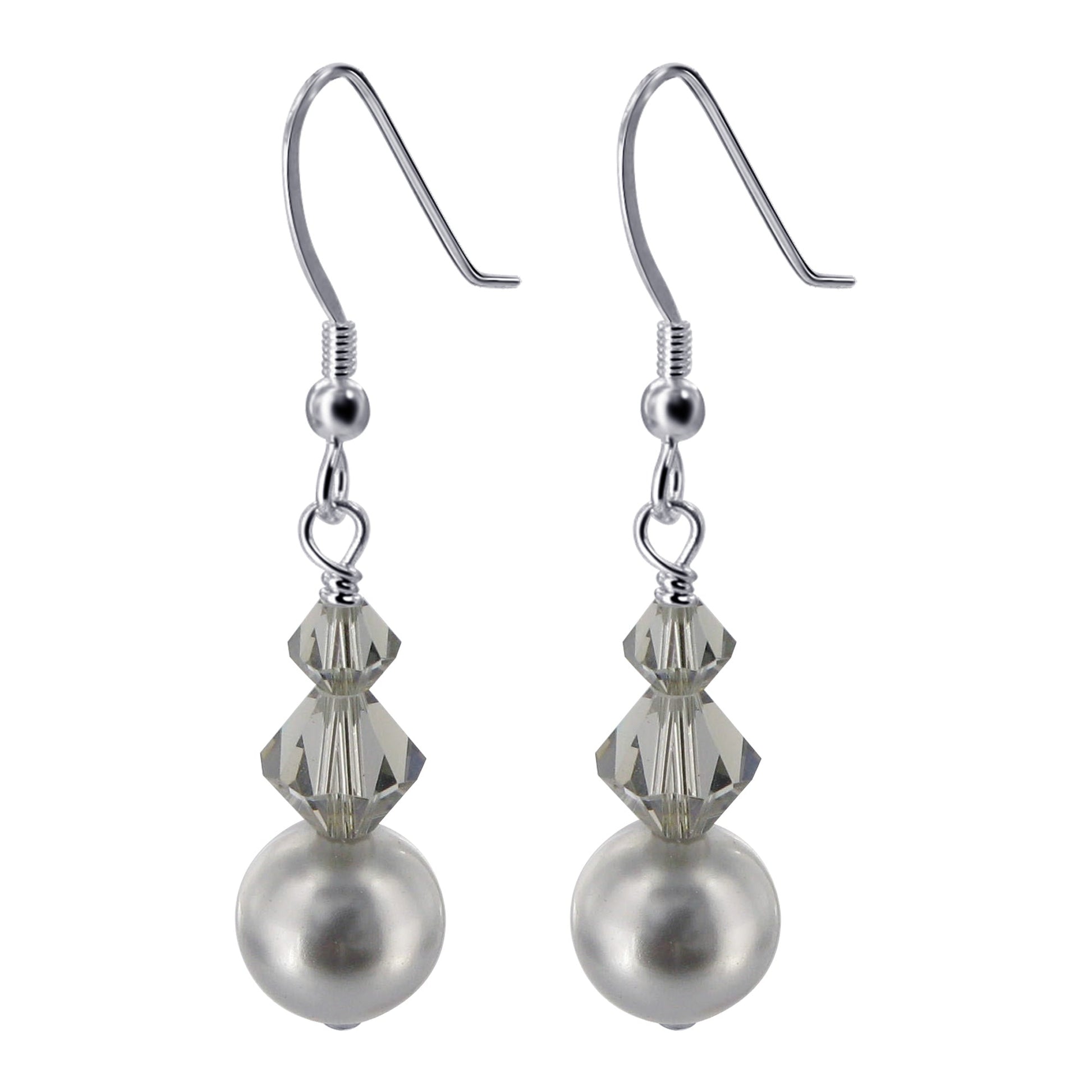 - title_tag : .925 Silver Earrings with Austrian Crystals and Faux Pearl - GEG46
