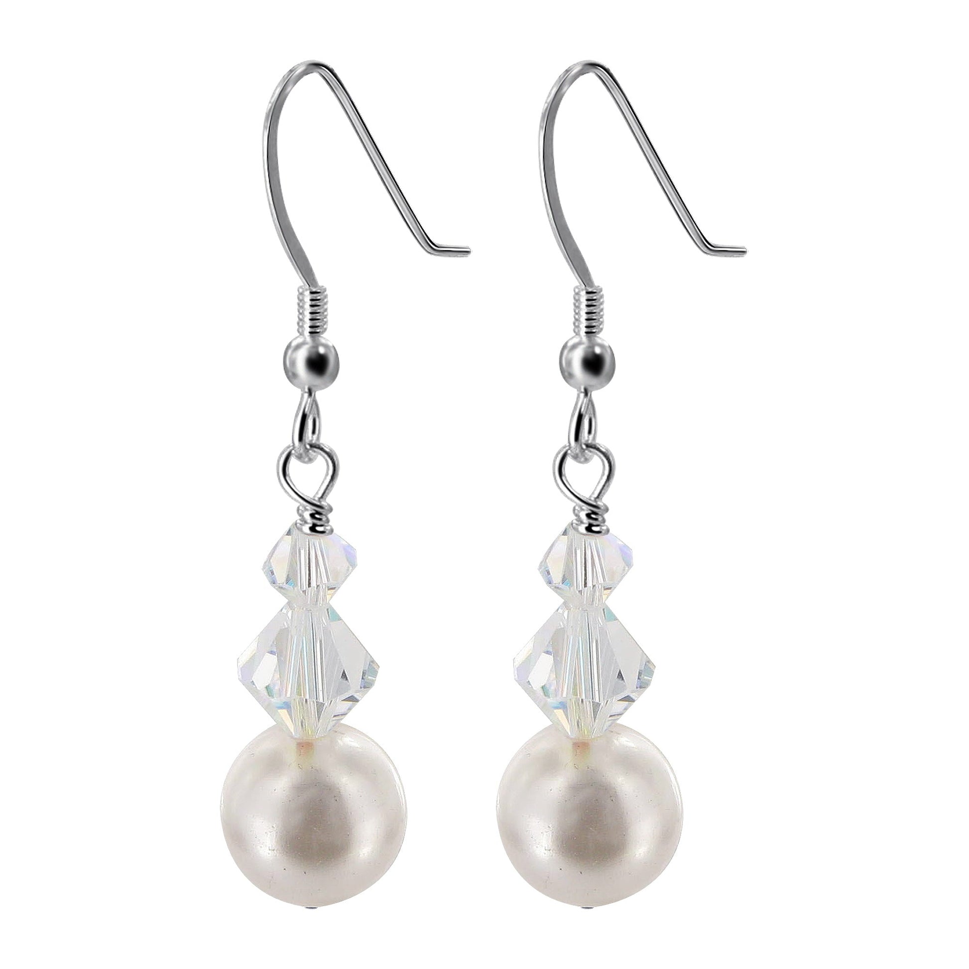 925 Silver Earrings with Crystals & Simulated Pearl Elegant Jewelry for Everyday Wear