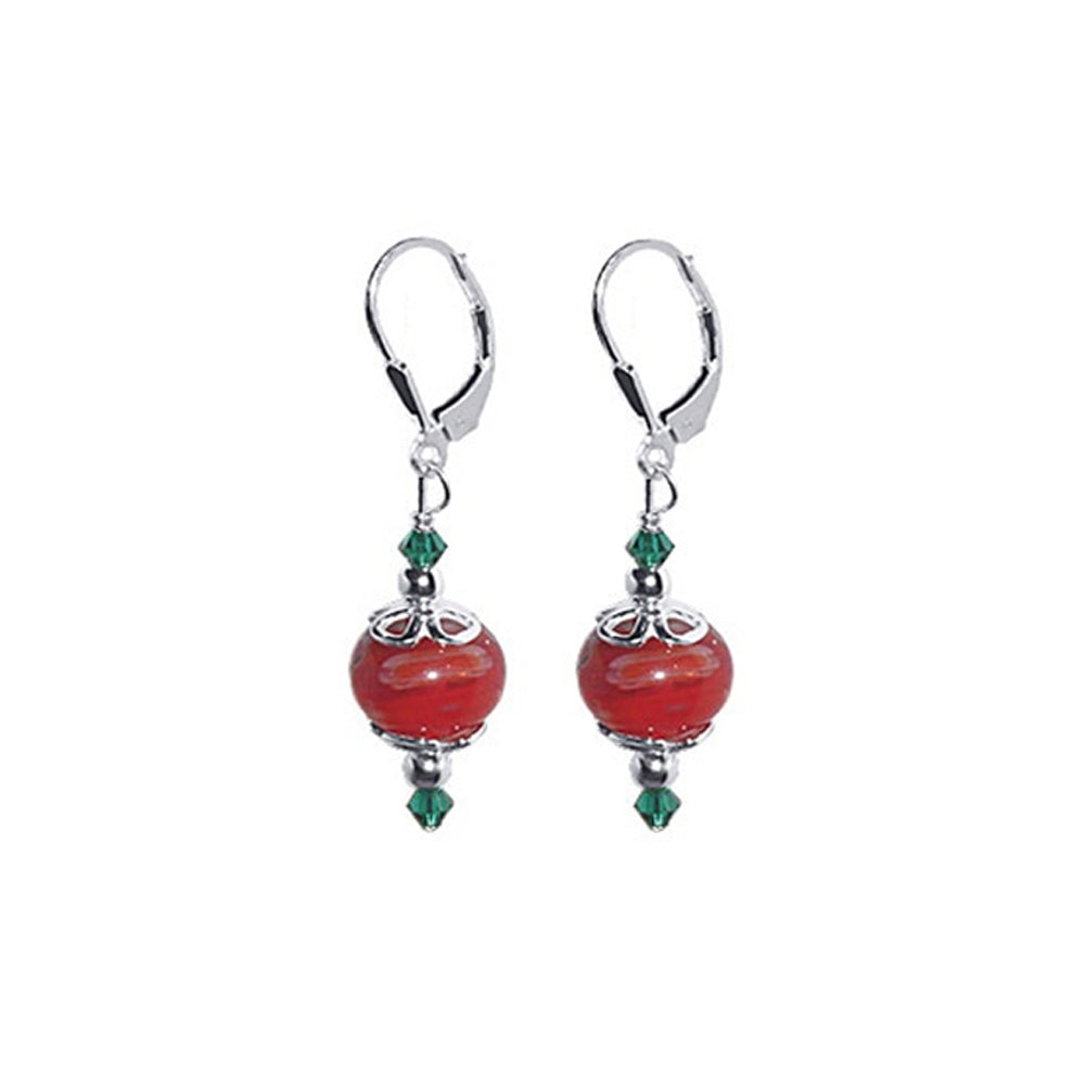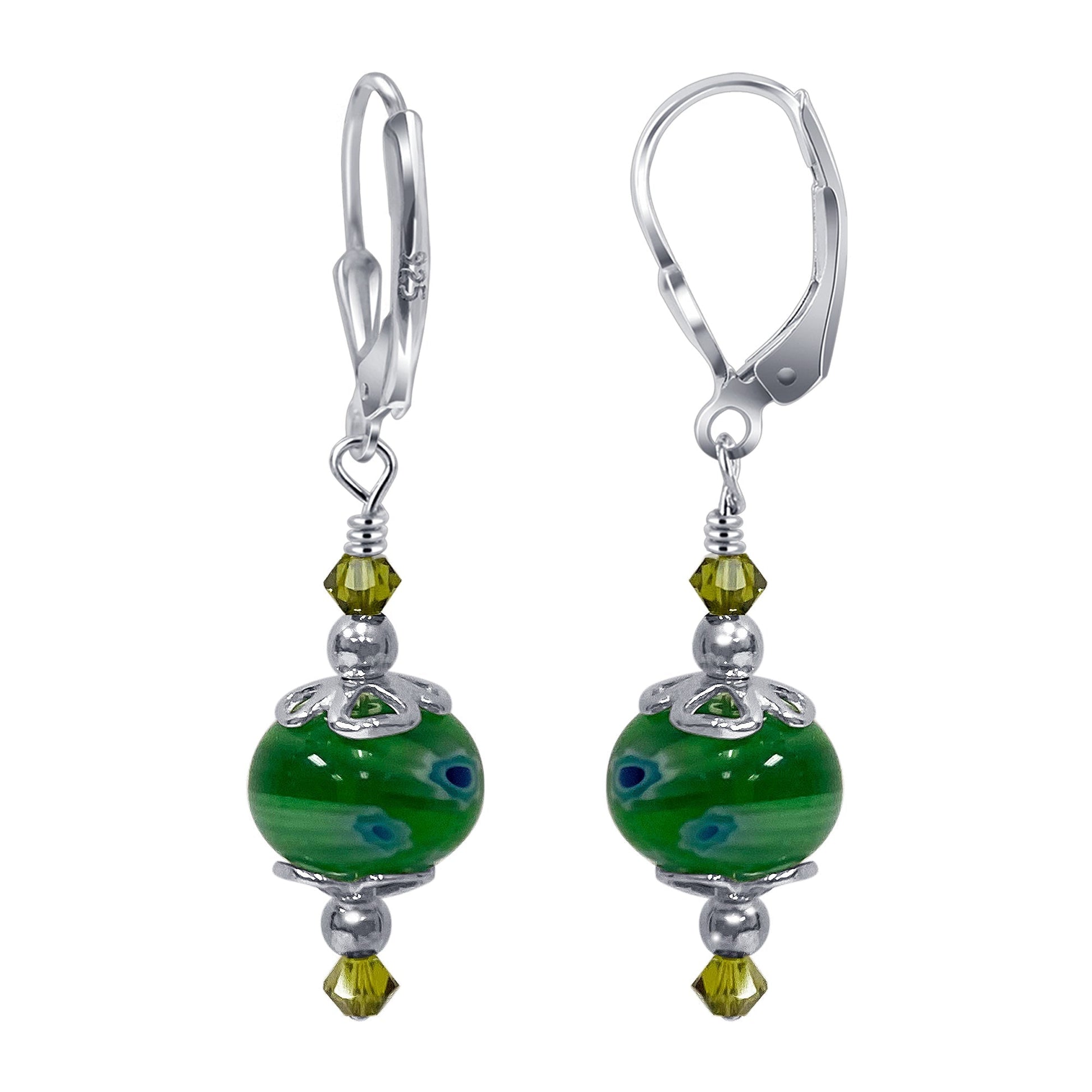 - title_tag : .925 Silver Earrings with Glass Beads and Austrian Crystal Drops - GEG121
