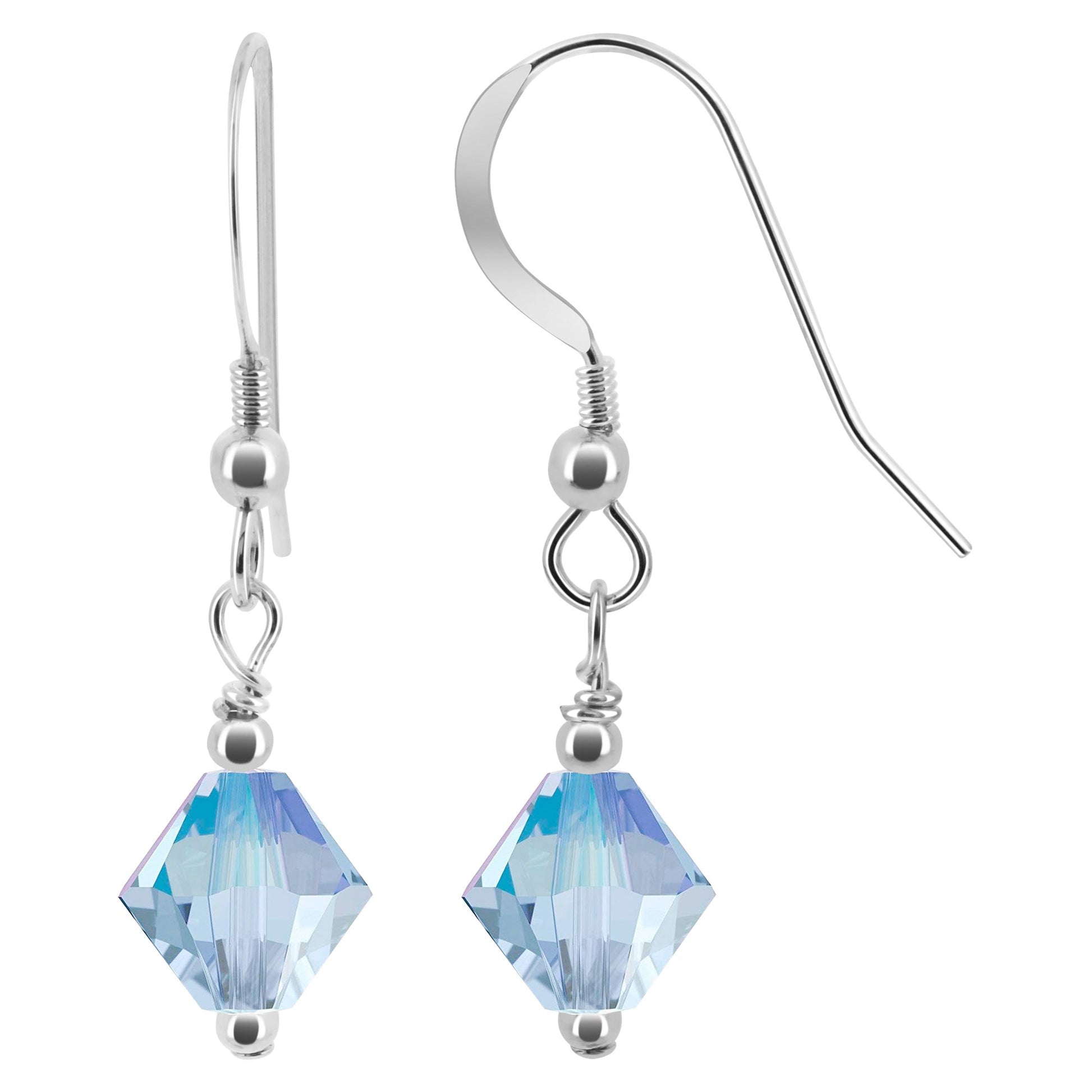 Handmade Drop Earrings .925 Sterling Silver with Sparkling Bicone Austrian Crystals