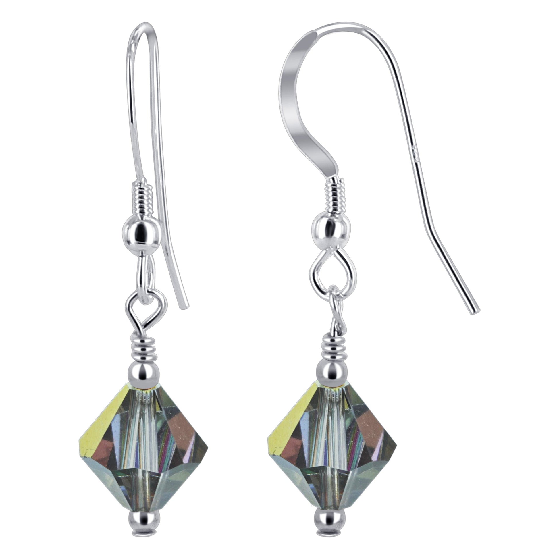 - description_tag : Enhance your look with Sterling Silver dangle earrings featuring bicone Austrian Crystals and silver accents. These elegant earrings come with secure French wire ear hooks in Sterling Silver and measure 1 inch in length. Perfect for adding a touch of sophistication to any outfit.