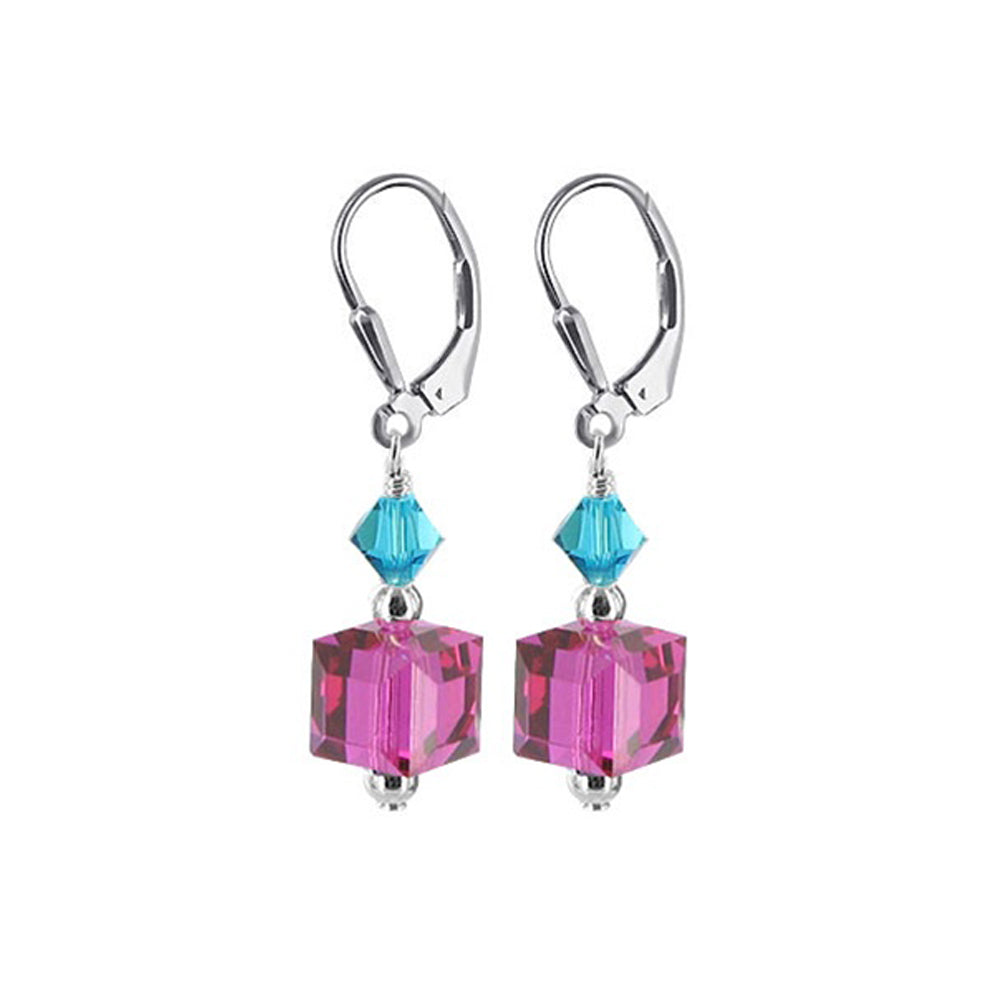 - description_tag : Be fabulous with these handmade crystal drop earrings! Perfect for adding a bright pop of color to any look, whether dressed up or down. These 925 Sterling Silver dangle earrings feature 10mm cube and bicone-shaped Austrian Crystals. Each pair measures approximately 1.25 inches in length and comes with a secure leverback for a comfortable fit. At Gem Avenue, we guarantee top-quality items that ensure your satisfaction and delight!