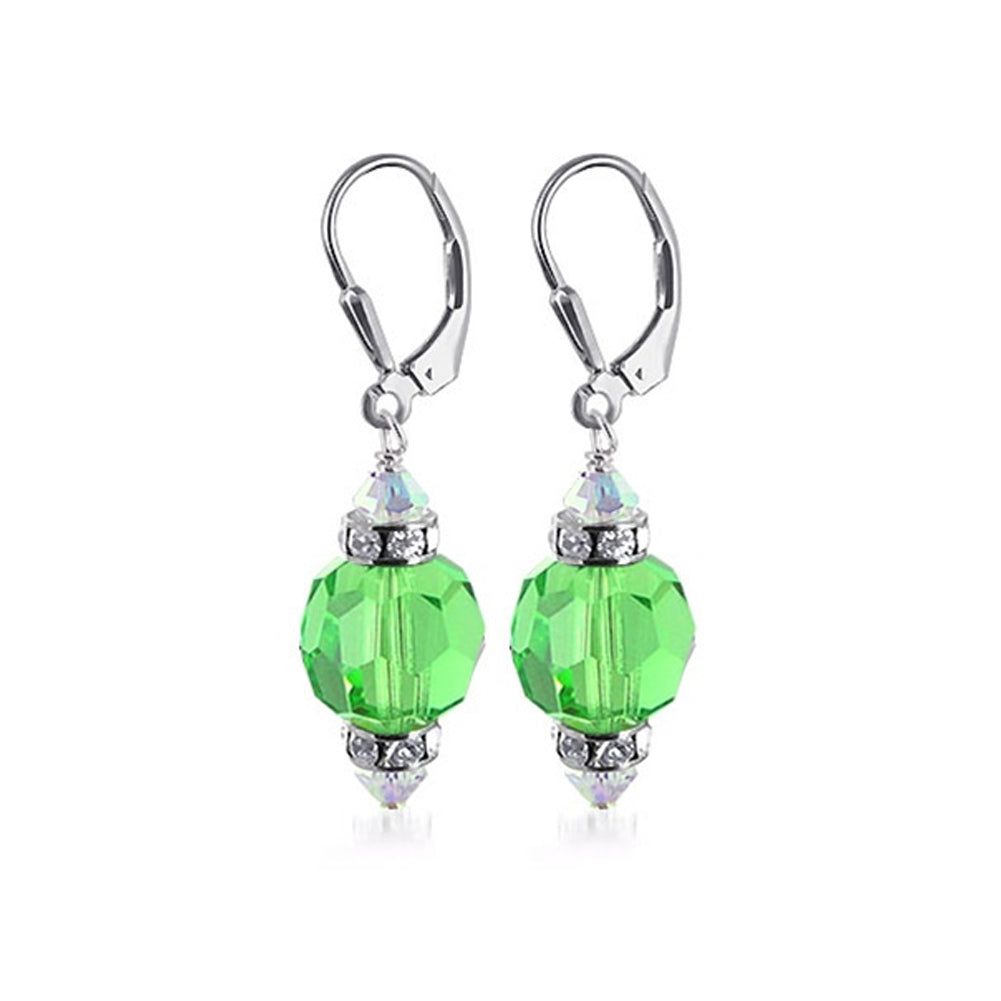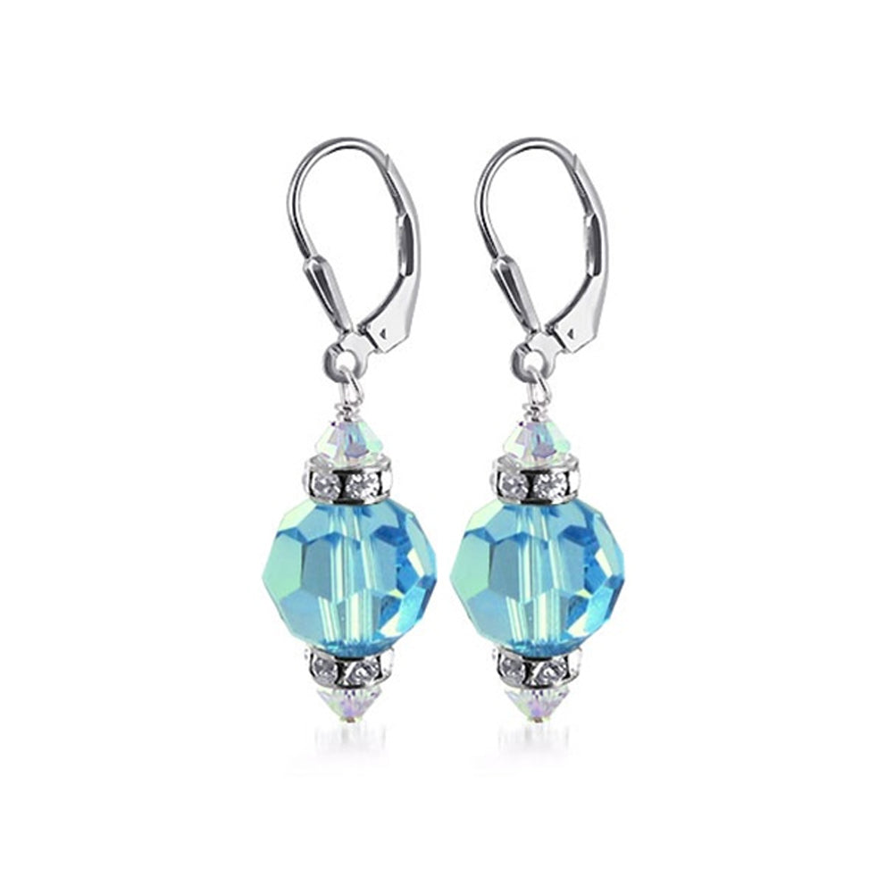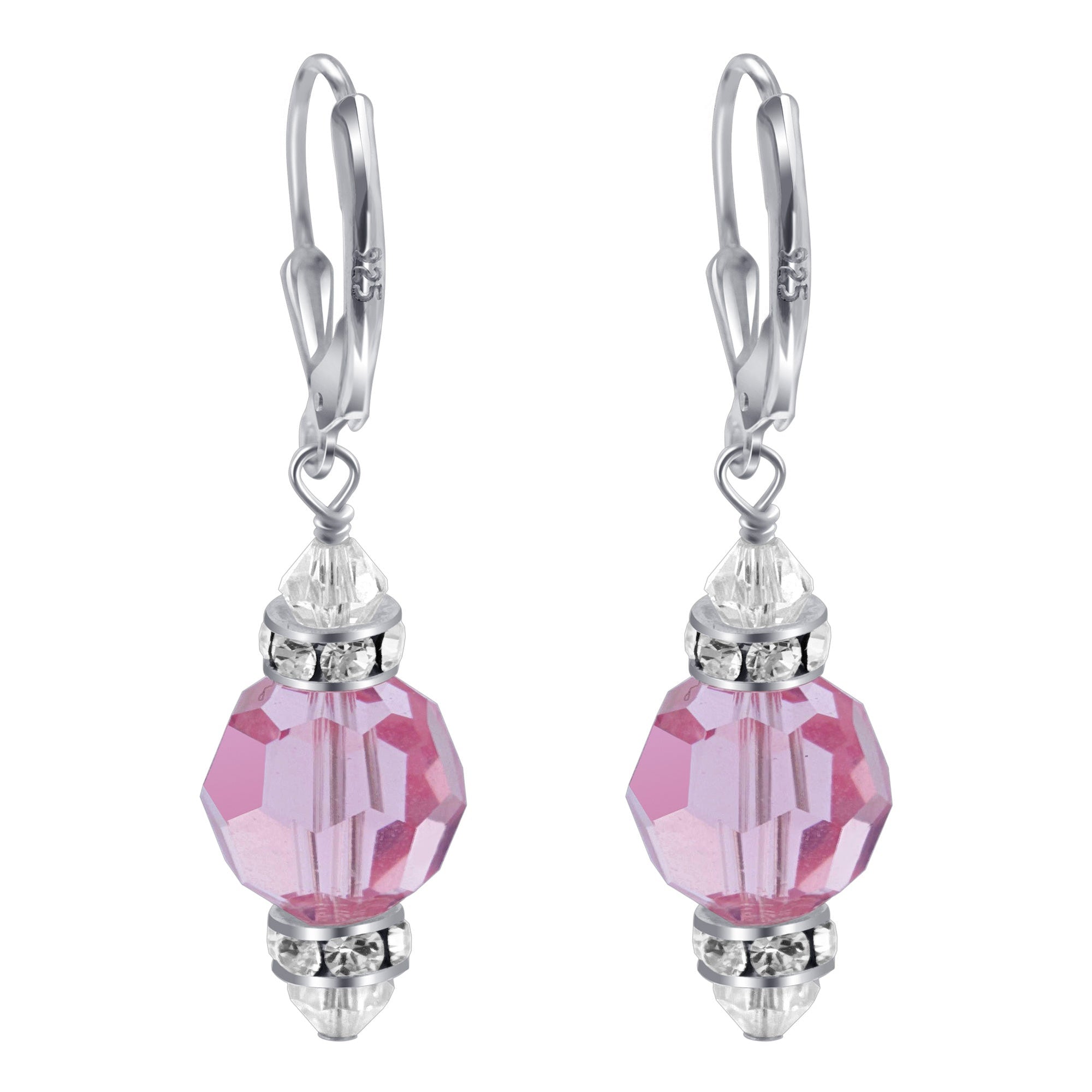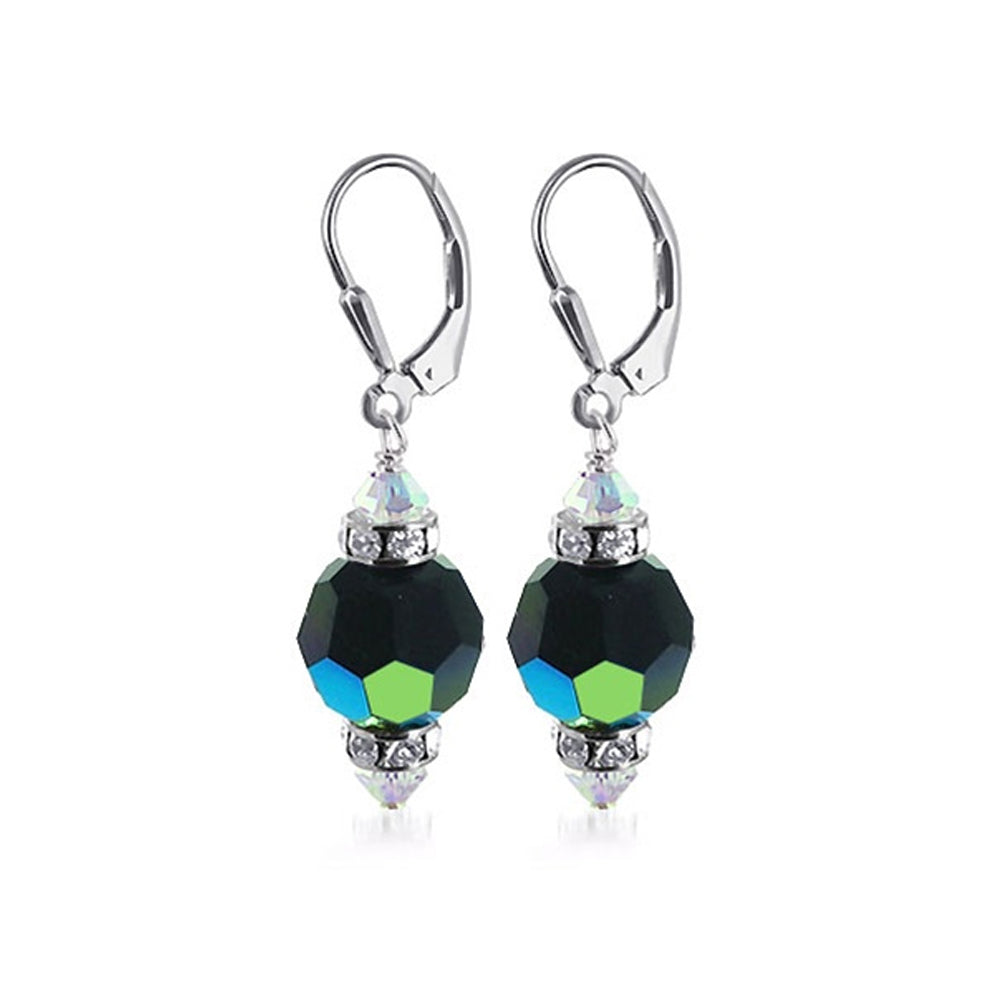 Featuring exquisite Austrian crystals and rondelle accents, these .925 sterling silver drop earrings bring timeless elegance to any outfit. The secure leverback ensures a comfortable fit and easy wear, making them a staple for any wardrobe. At a length of 1.5 inches, they offer a subtle yet eye-catching accessory that will never go out of style.