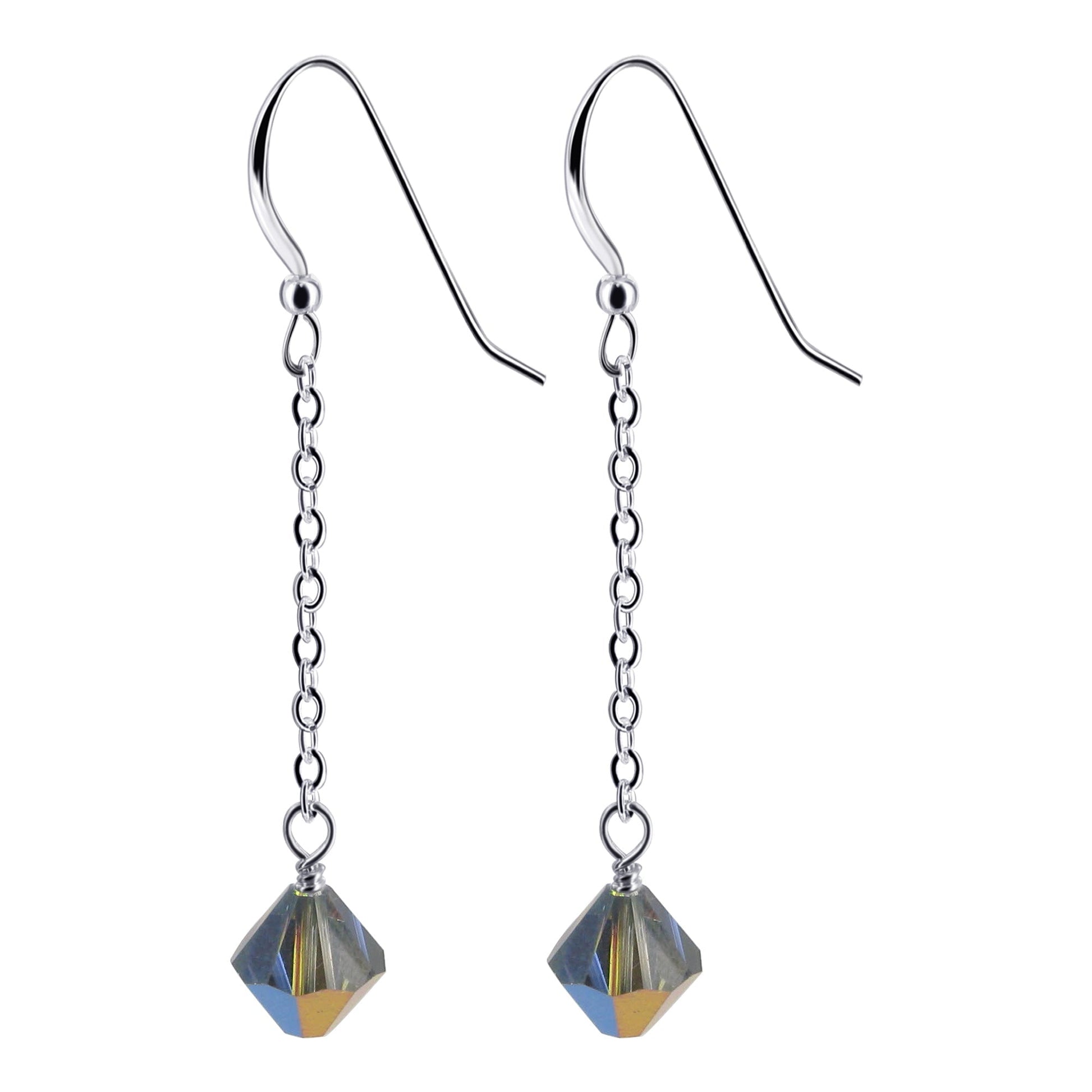 - description_tag : Sterling Silver Dangle Earrings with Bicone Austrian Crystals - 1.5 Inch Length, Secure French Wire, .925 Sterling Silver