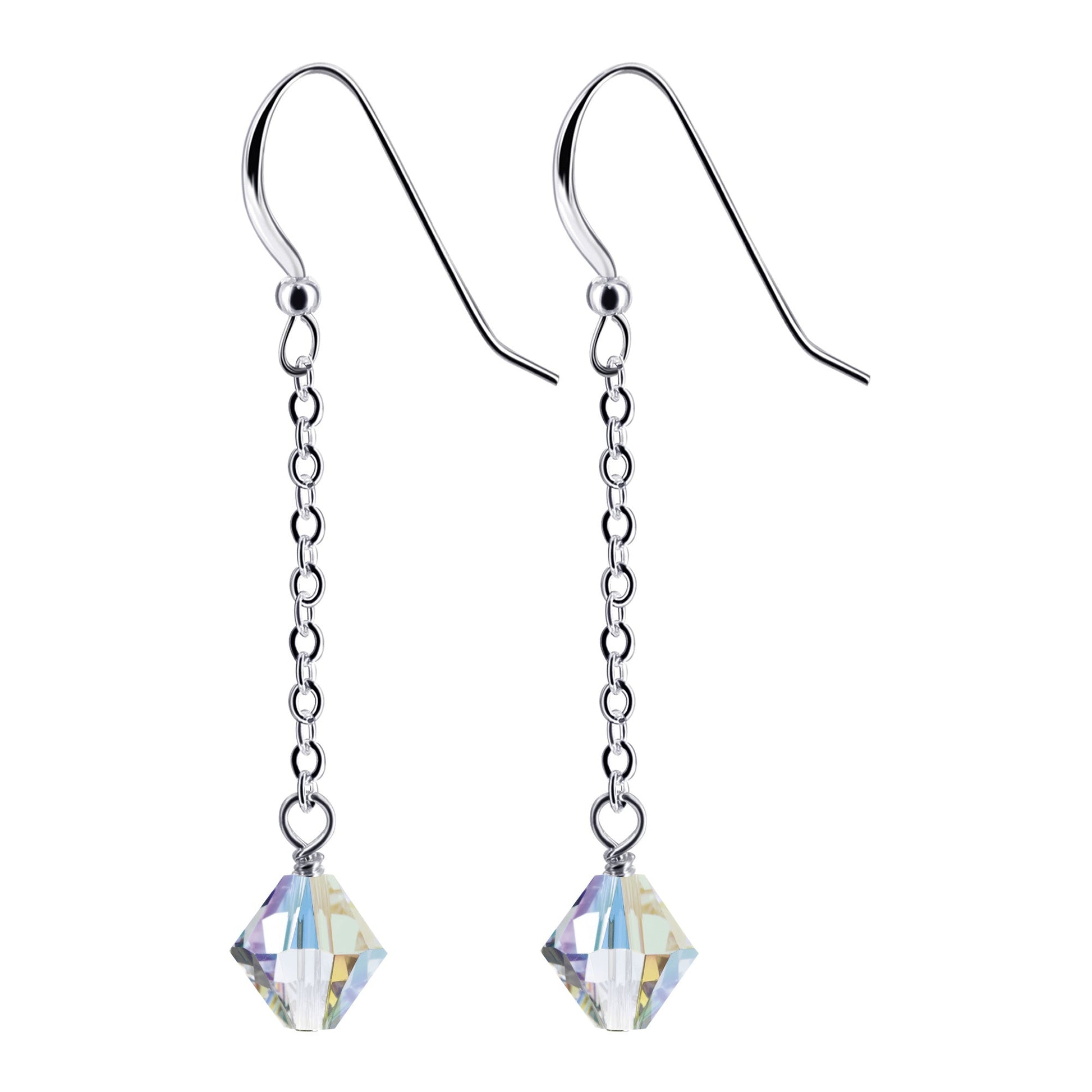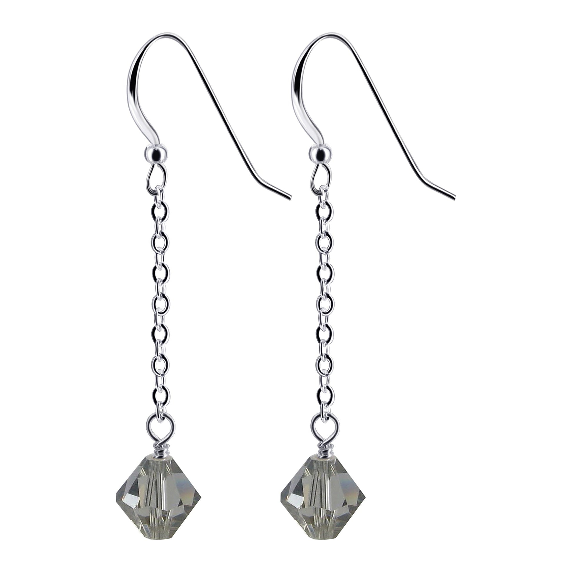 Handmade .925 Sterling Silver Dangle Earrings with Sparkling Bicone Crystals for Women