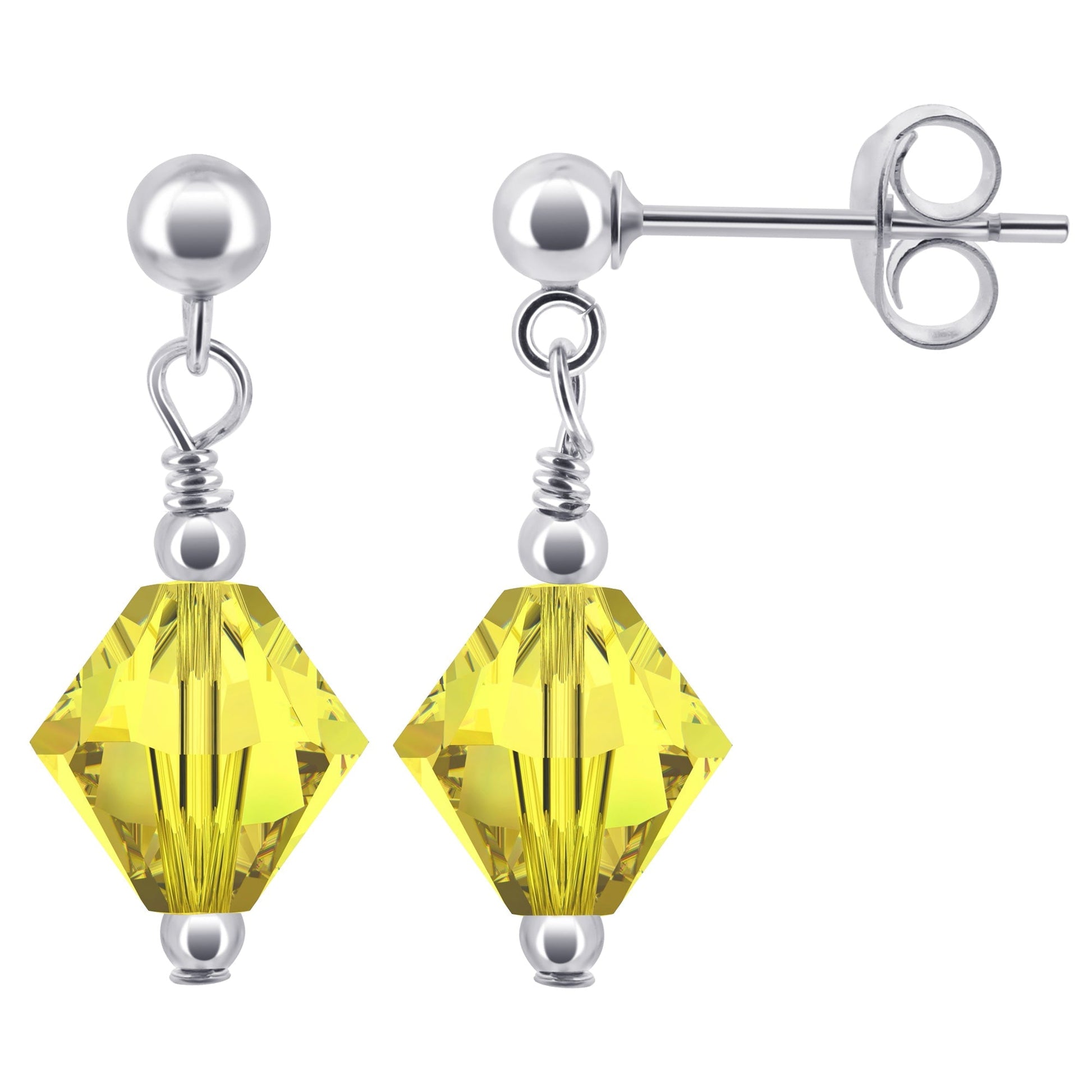 925 Sterling Silver Drop Earrings with Bicone Austrian Crystals Handmade Elegant Jewelry for Women Gift for Her