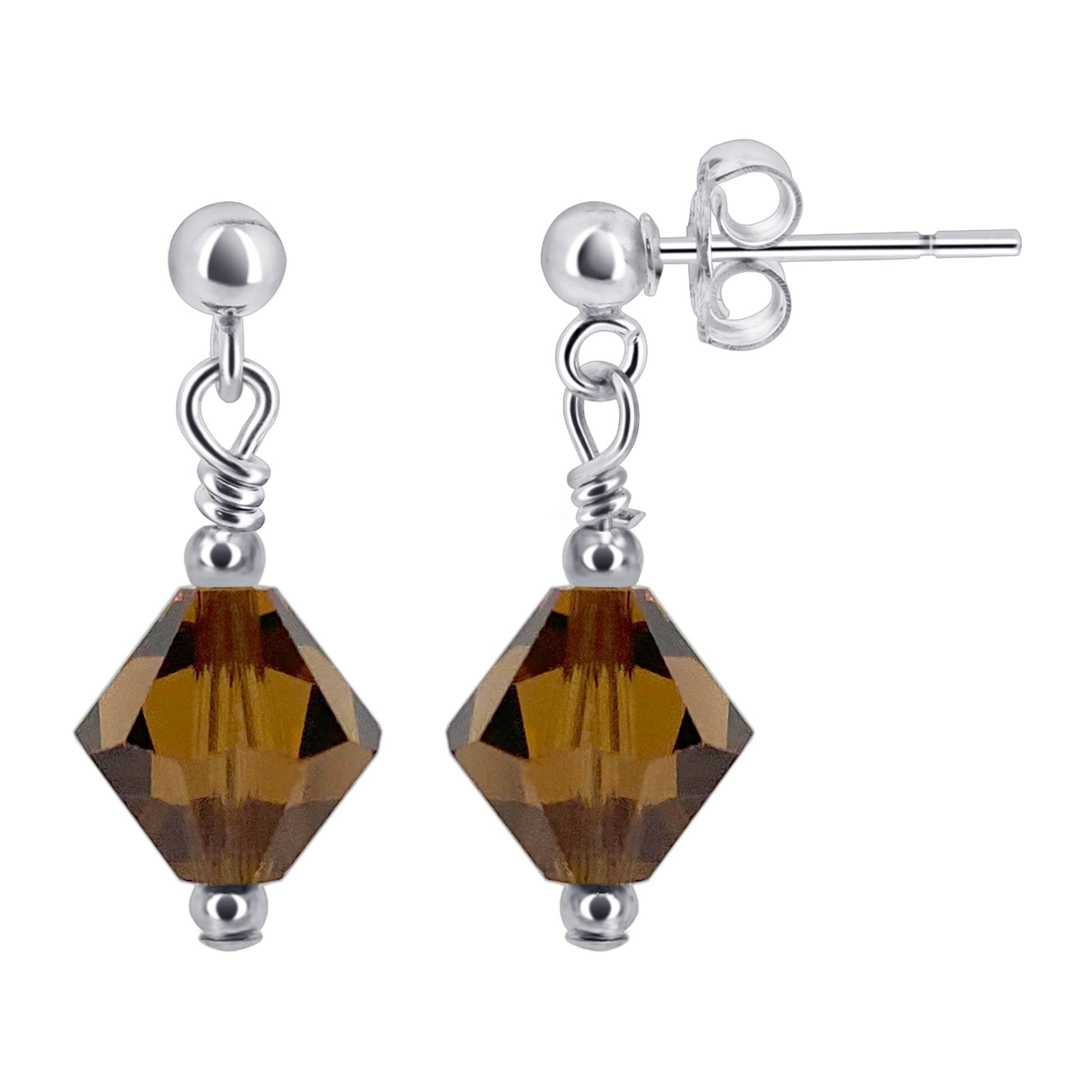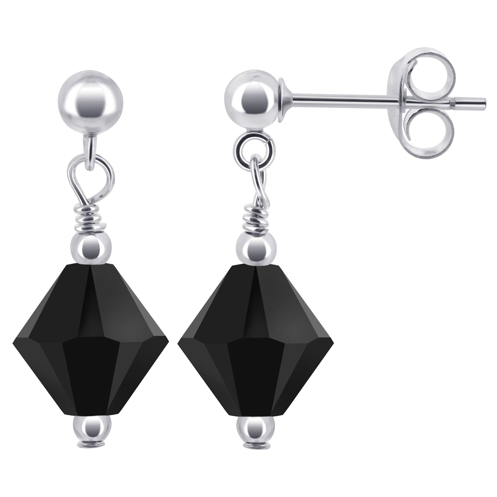 - description_tag : Enhance your look with Sterling Silver drop earrings featuring 8mm bicone Austrian Crystals and elegant silver accents. These earrings come with secure Sterling Silver post friction back findings and measure 1 inch in length, offering a perfect blend of sophistication and sparkle.