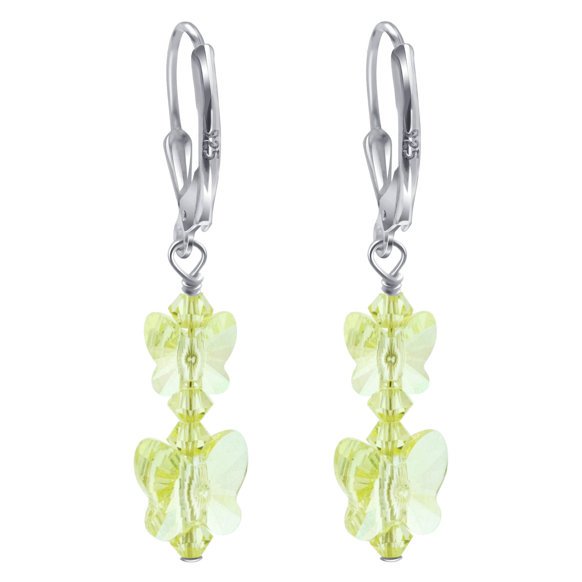 Austrian Crystal Butterfly Dangle Earrings. It comes with 925 sterling silver secure leverback findings. We offer this adorable piece at an incredible price. The length of these earrings is 1.5 inches long.