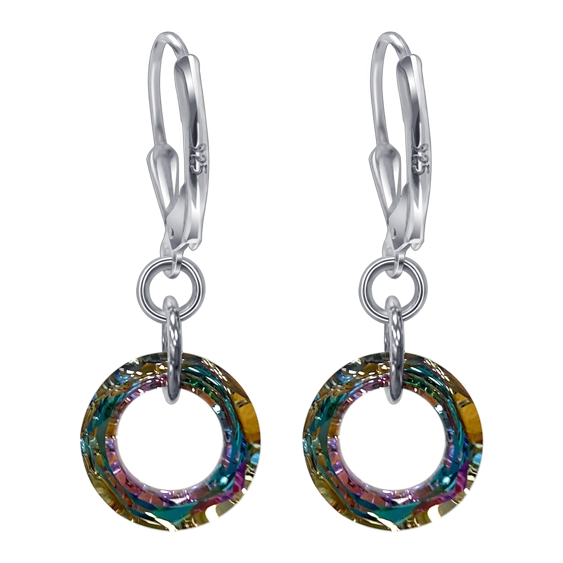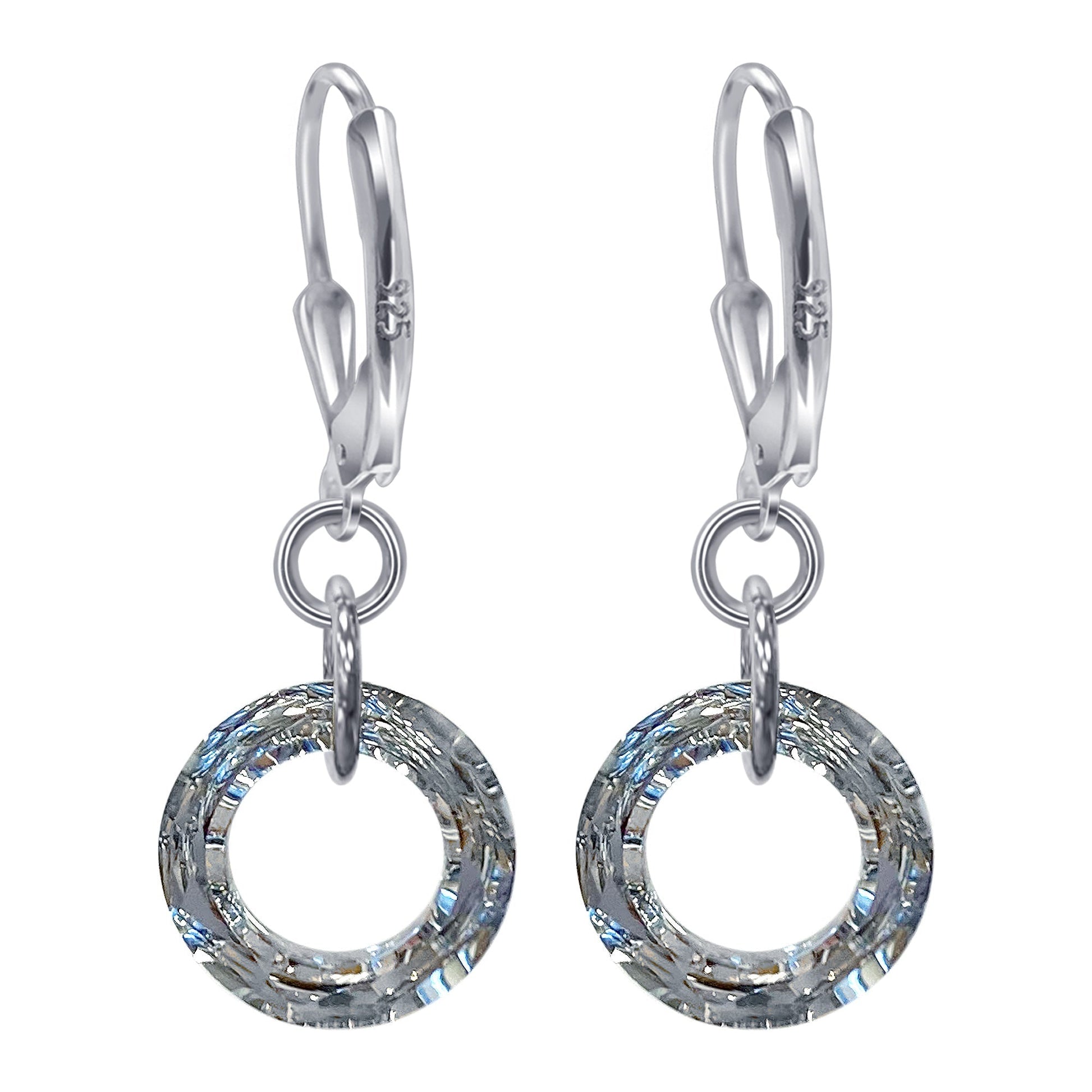 Donut Shape Austrian Crystal 925 Sterling Silver Drop Earrings