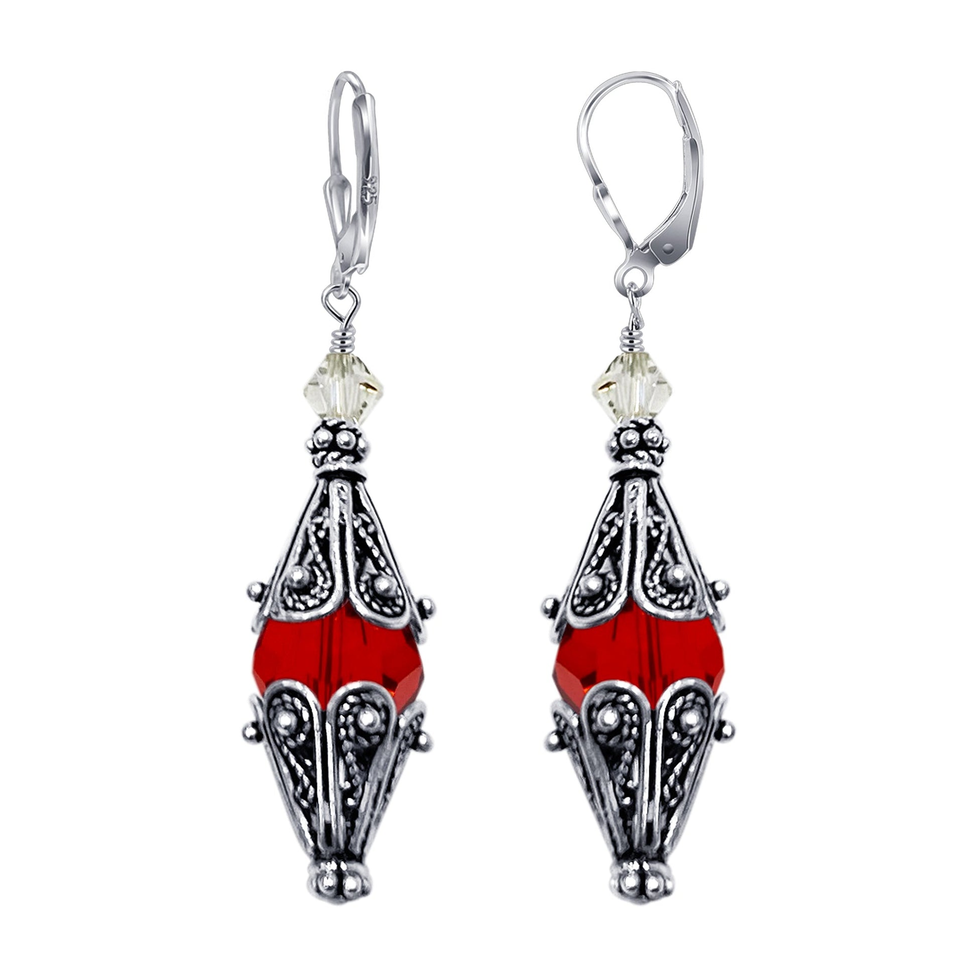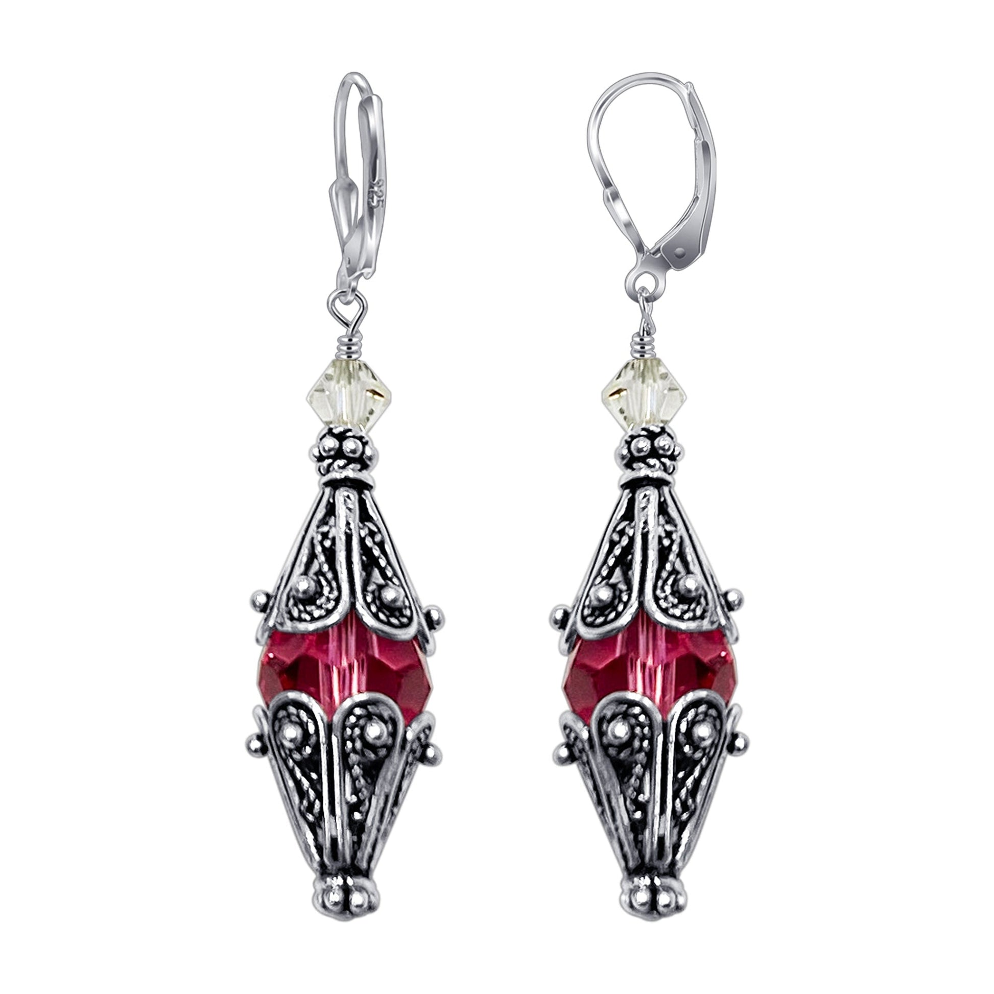 Vintage Style .925 Sterling Silver Drop Earrings with Austrian Crystal