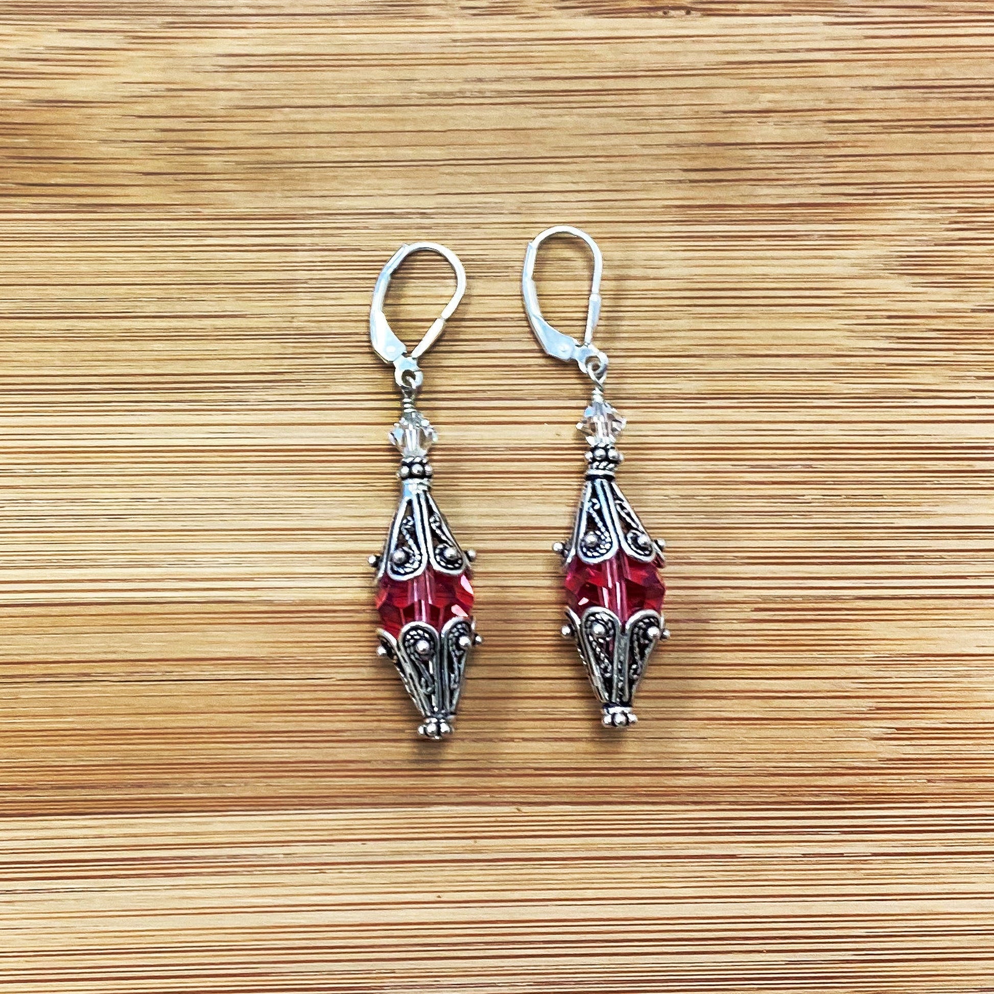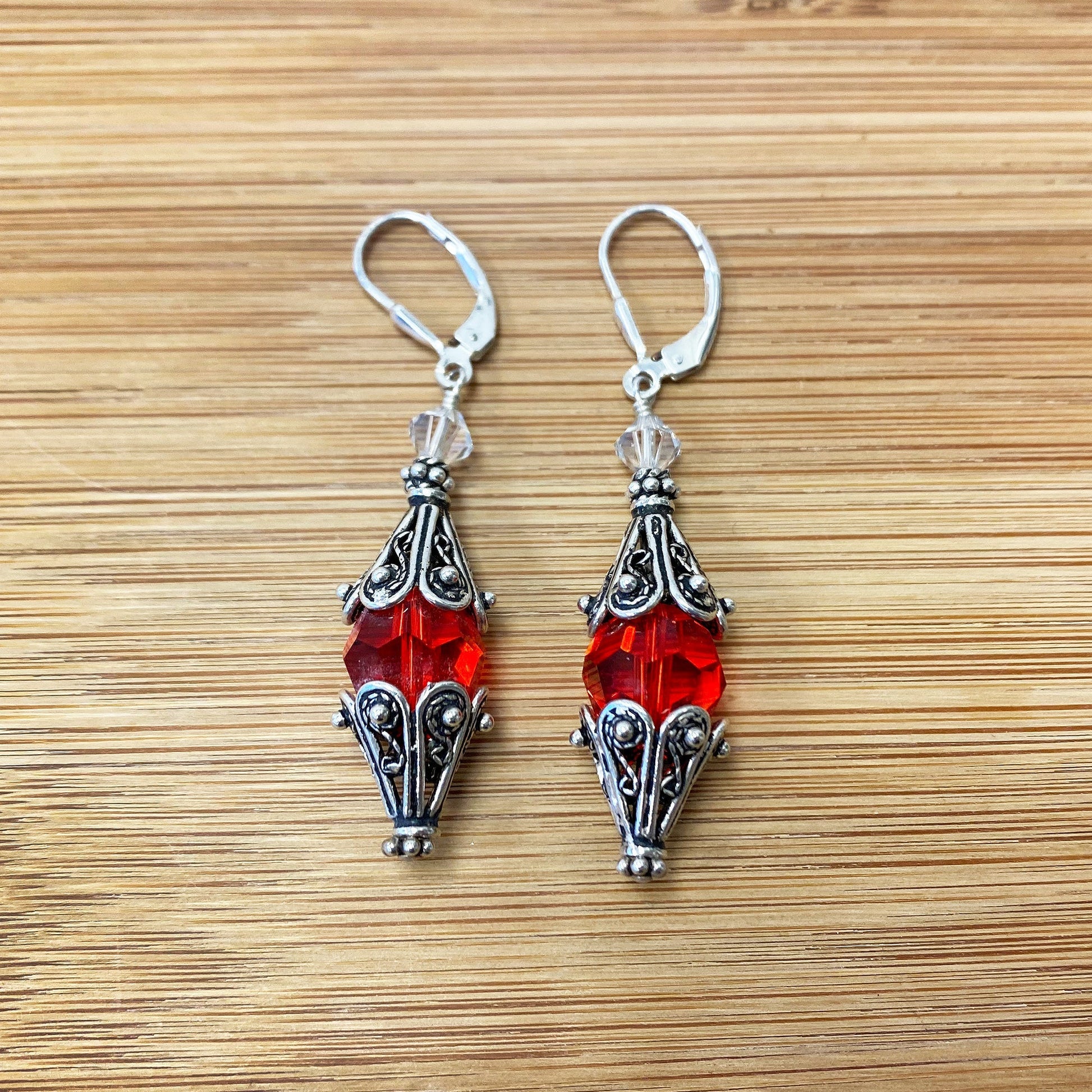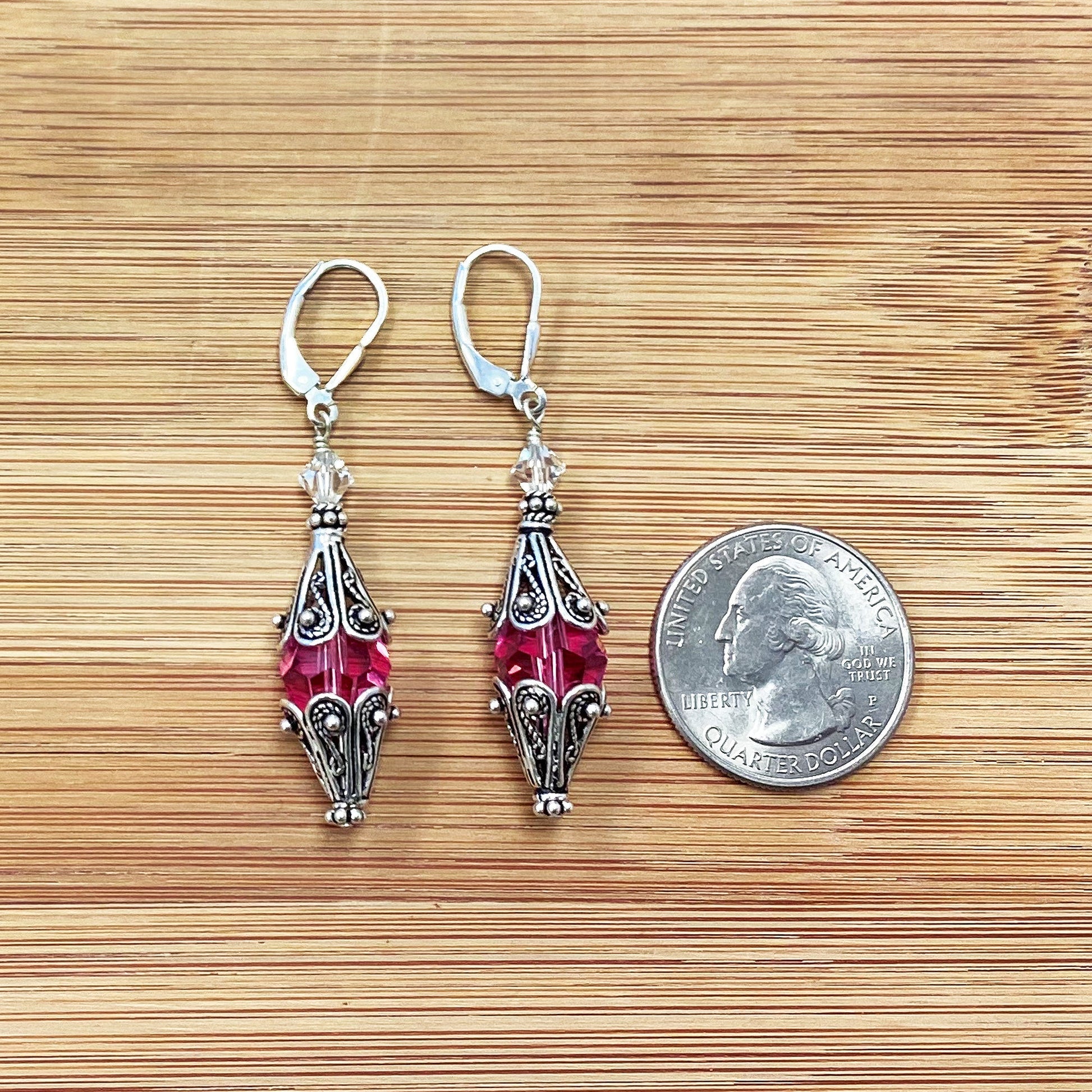 Accented with 6mm crystals the top where each piece is secured to a high quality sterling silver lever back finding. Beaded accents complement the crystal and provide a unique style that only you can show! Look at our other crystal items to make the perfect accessory ensemble! *32mm in length (excluding lever back finding)*High quality sterling silver Bali findings accents.