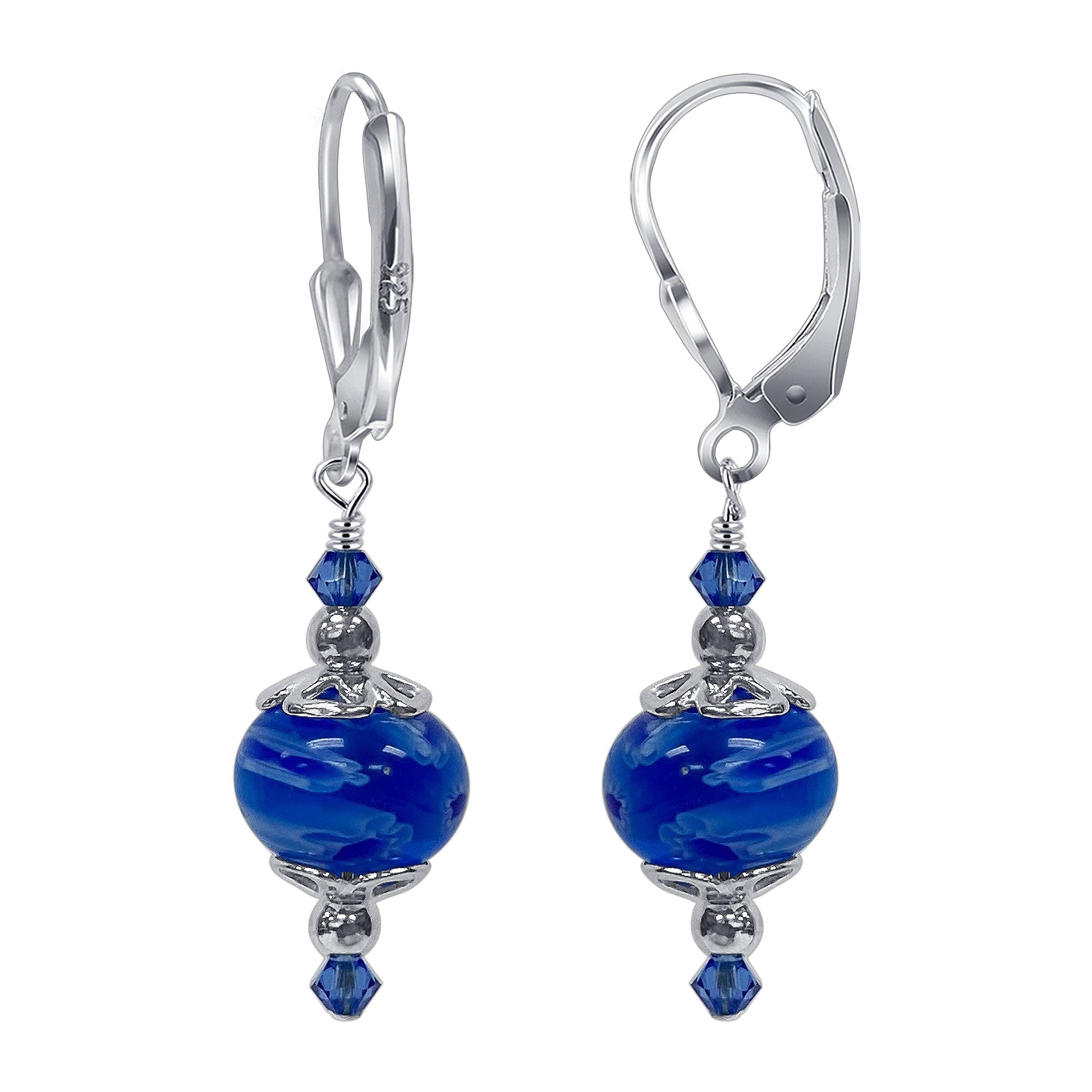 Graceful and charming, these earrings are unlike any other. These earrings feature 925 sterling silver flowers that surround each millefiori glass bead and Austrian Crystals accents.