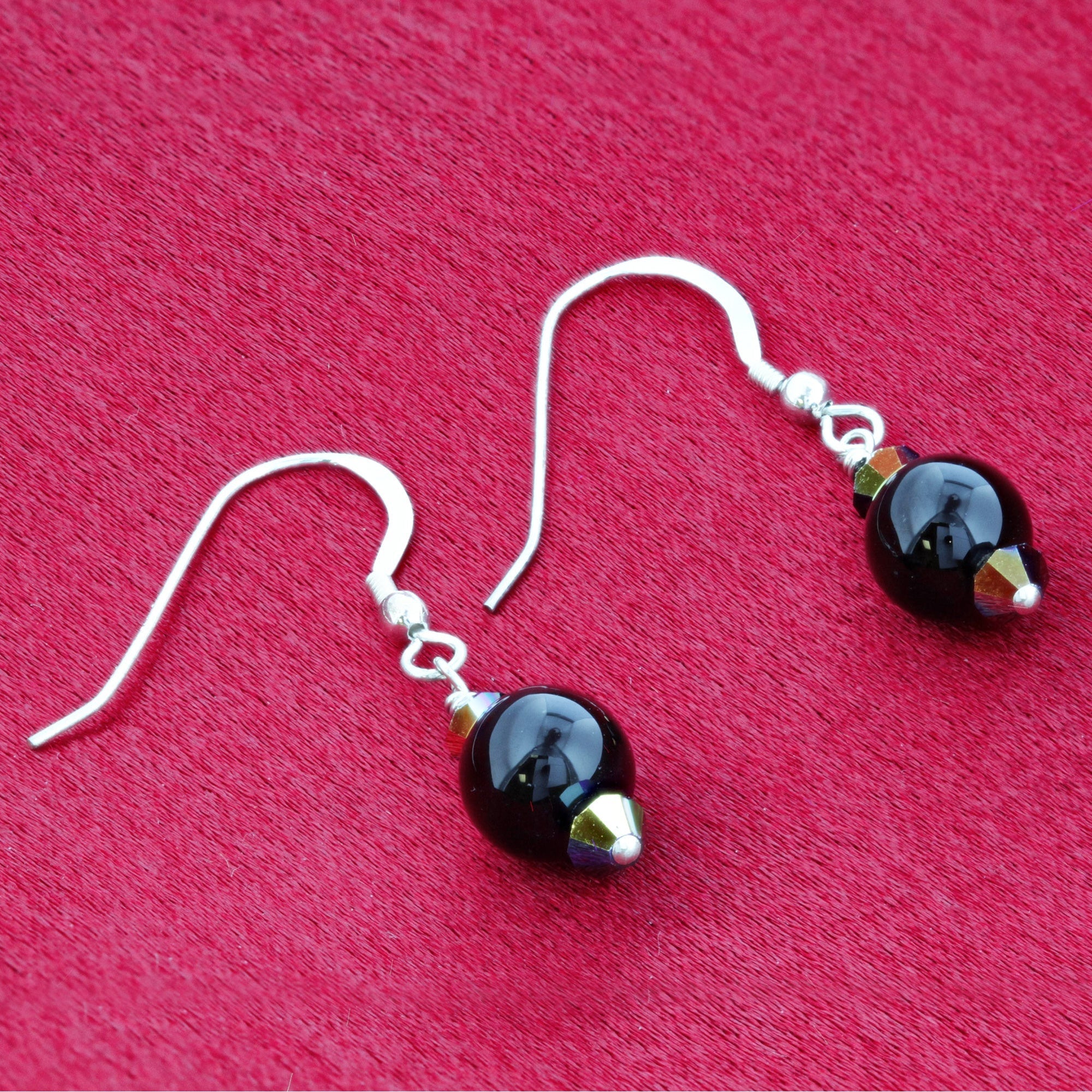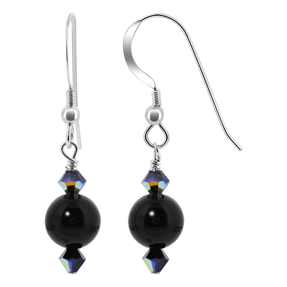 Sophisticated and full of charm, these dangle earrings will add style to any outfit. Crafted from.925 sterling silver, the earrings feature an 8mm round bead and 4mm bicone Austrian crystals that surround the amethyst bead. The earrings measure approximately 1.5" long and come with French ear wire hooks to help secure them into place.