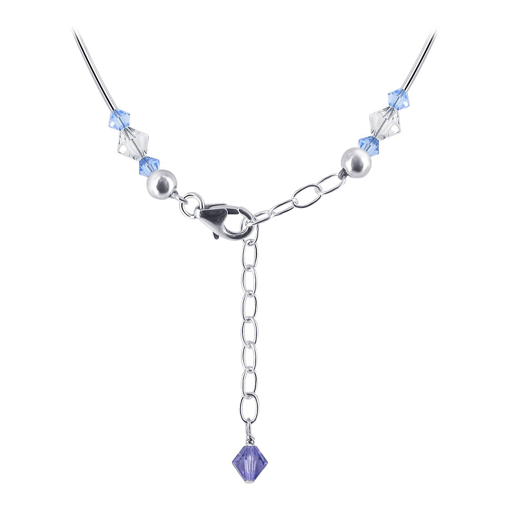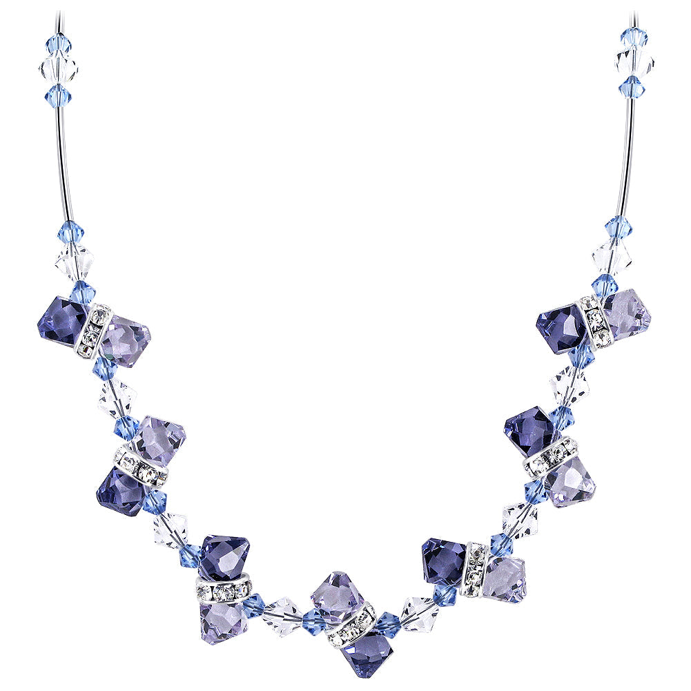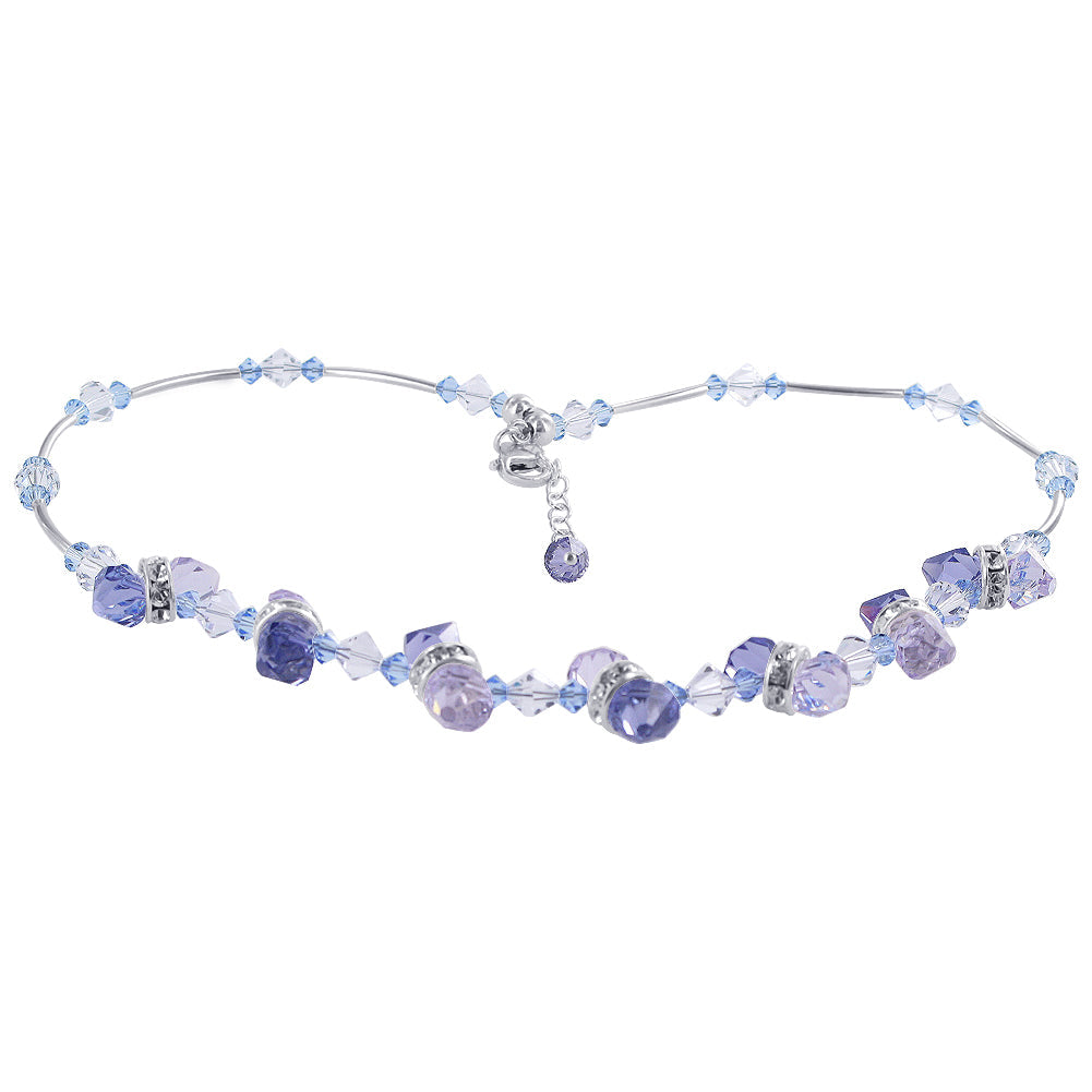 925 Sterling Silver Multicolor Cluster Necklace made with Austrian Crystals. Necklace made of Rondell Beads accents 15mm, 6mm and 4mm Multifaceted Purple, Lavender, Blue and Clear Crystal. We carry this Necklace in different Lengths from 16", 18", 20", 22", 24" and 26"