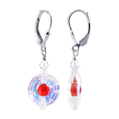 925 Sterling Silver with Austrian Crystals Leverback Earrings for Women