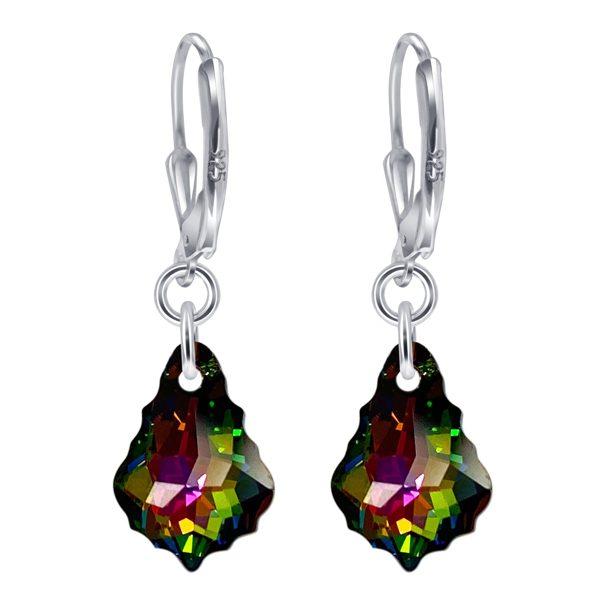 Vivid and sensuous, these drop earrings are a definite conversation starter. Crafted from beautiful Austrian Crystals formed into a Baroque shape that hang from 925 sterling silver lever backs, this is one classy set of earrings.