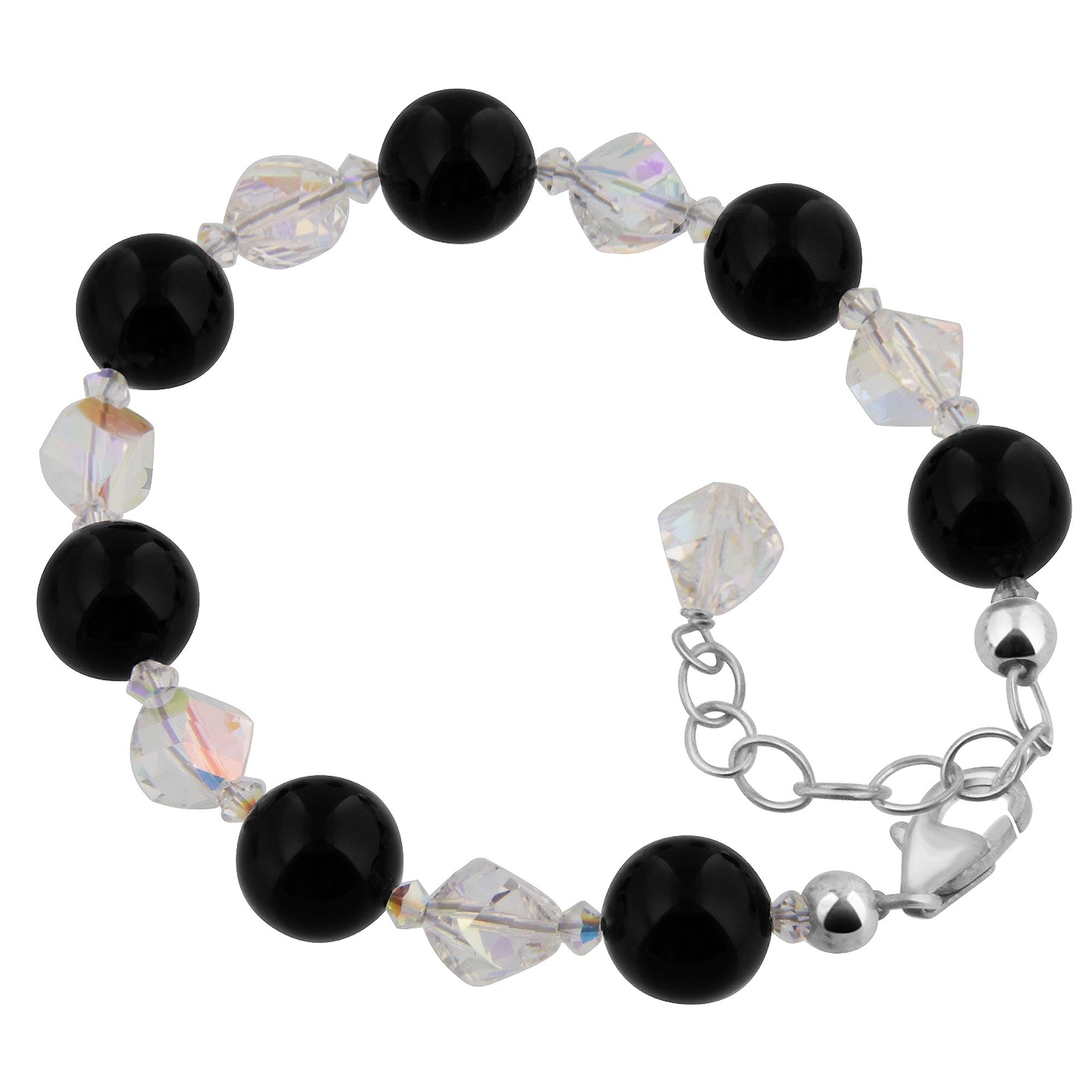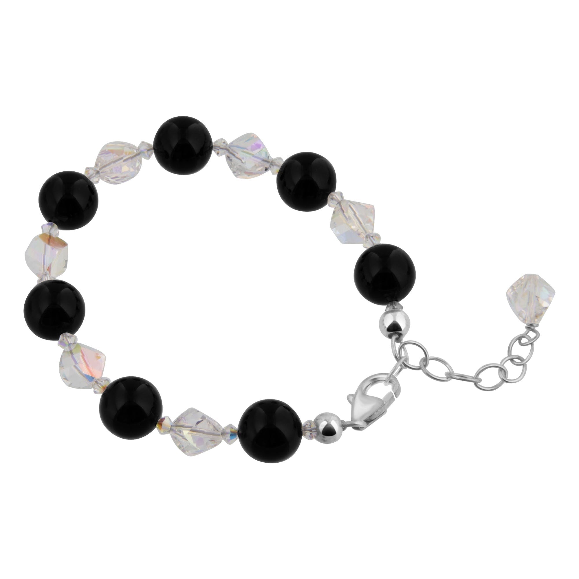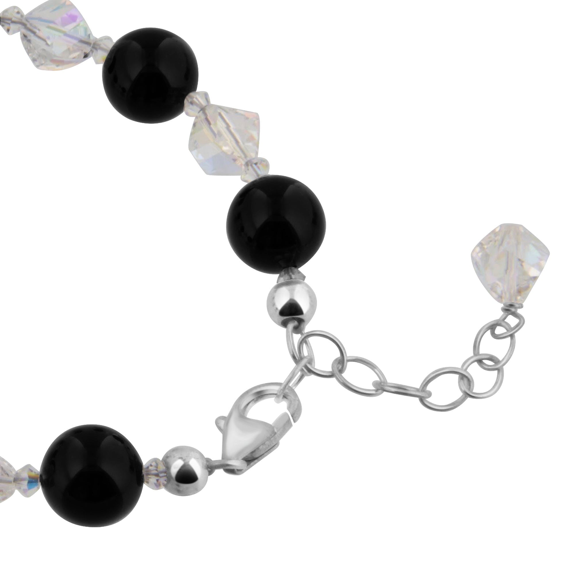 Sterling Silver Bracelet made with Onyx Gemstone and Clear Austrian Crystals. So simple and classically beautiful. The image says it all. Comes with a sterling silver lobster claw clasp, and the length is adjustable from 6 inches to 8 inches. We are offering this adorable piece at an incredible price. Buy now and grab this opportunity to secure one.