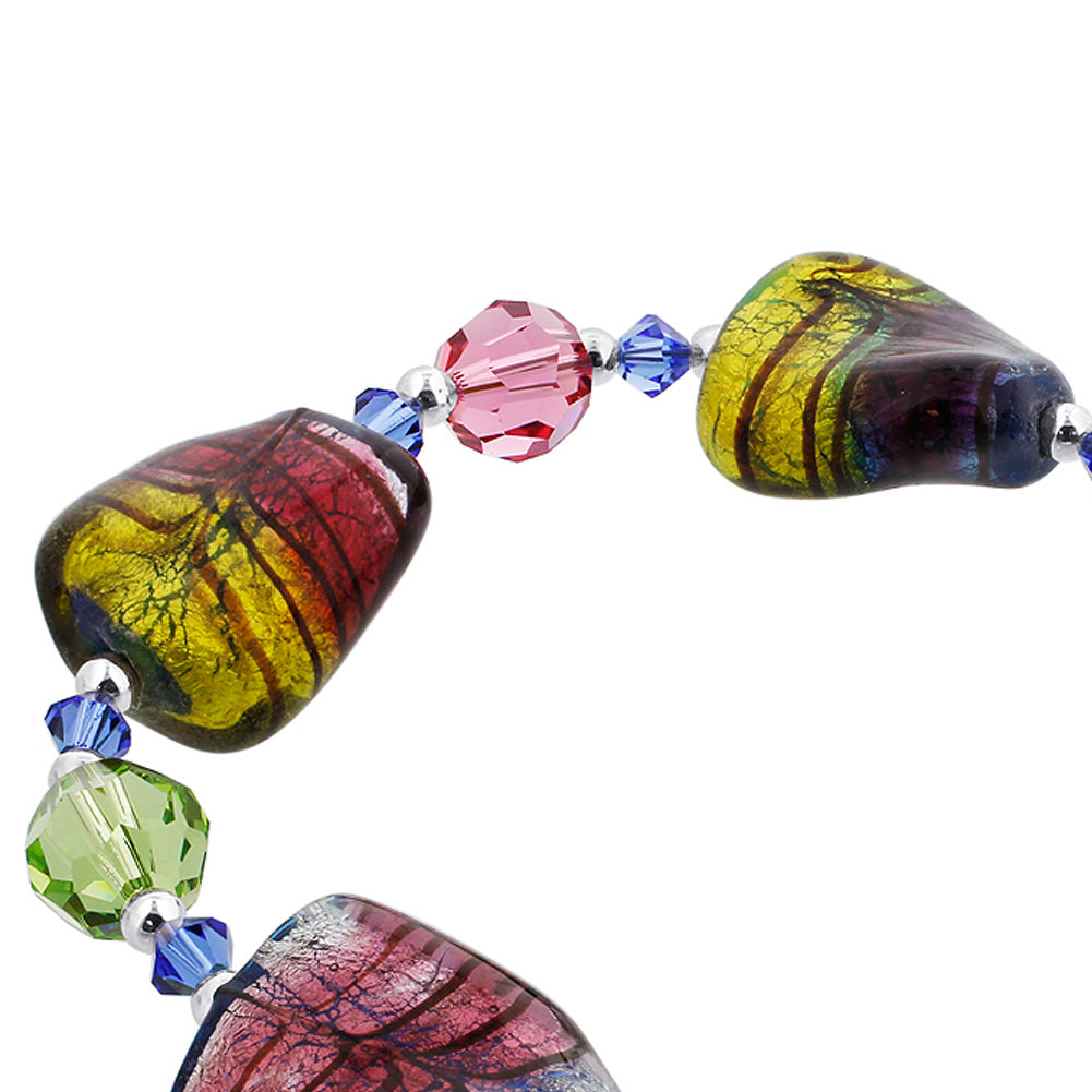 Handcrafted blown glass paired with vibrant multicolor Austrian crystals is set in genuine 925 sterling silver. The bracelet is lightweight at 0.025 lb and designed to fit most wrists comfortably.