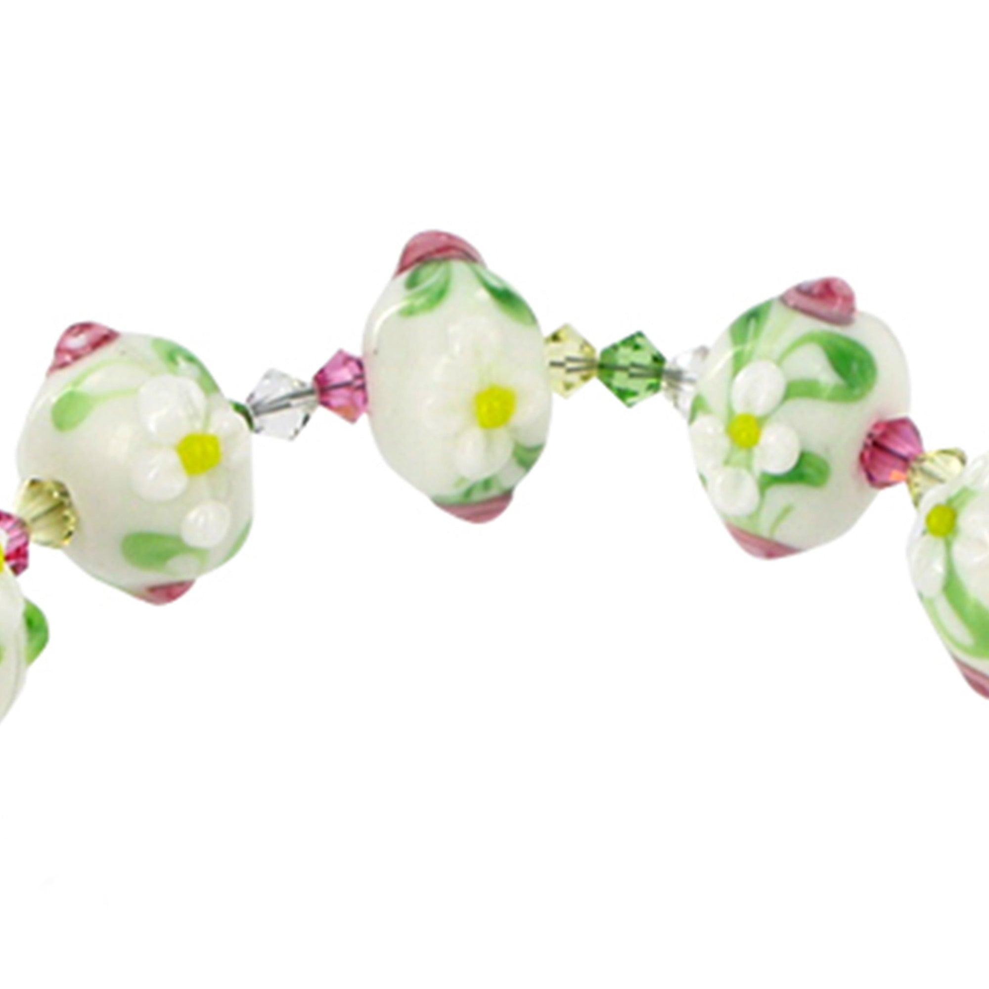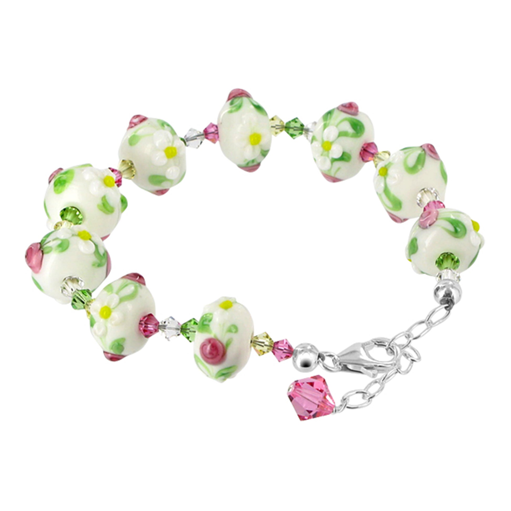 Handcrafted blown glass adorned with vibrant multicolor Austrian crystals is set in genuine 925 sterling silver. The bracelet is lightweight at only 0.025 gram, offering a comfortable feel while showcasing exquisite sparkle.