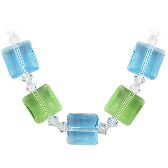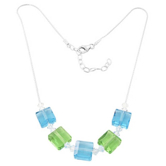 • title_tag : Blue and Green Austrian Crystals with 925 Silver Necklace - SCNK280