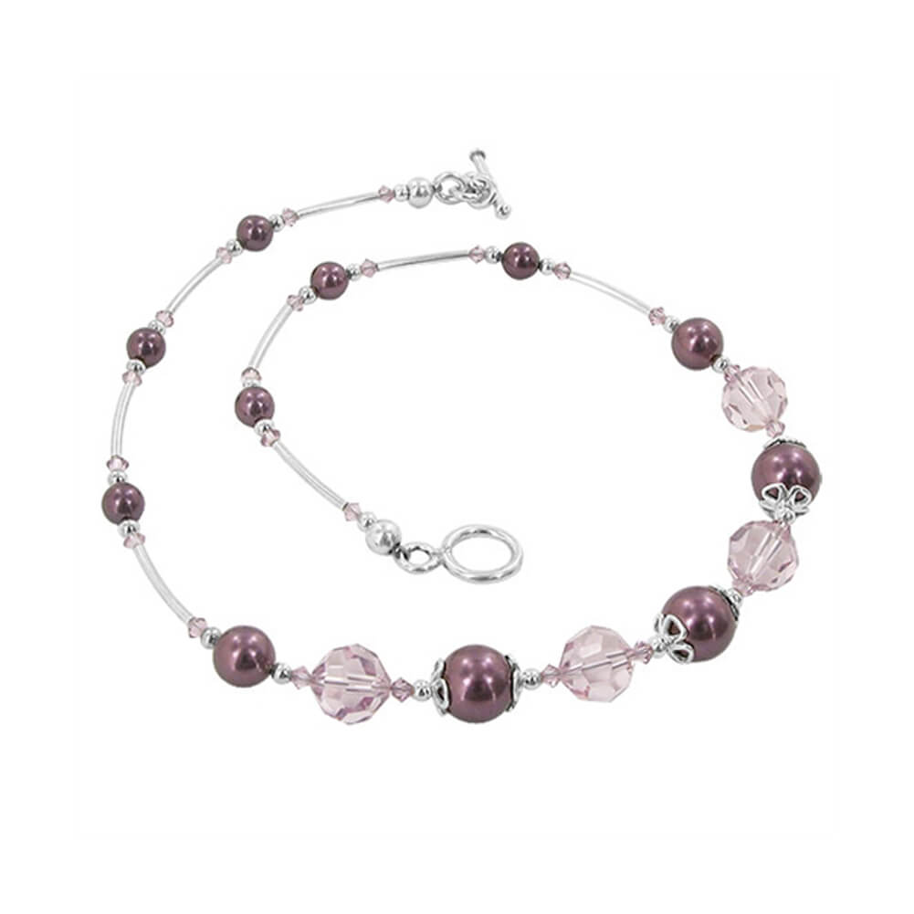 The 925 Sterling Silver necklace is created with silver accents and beautifully placed with authentic Austrian crystals. This gorgeous piece features brown crystals and imitation pearls.