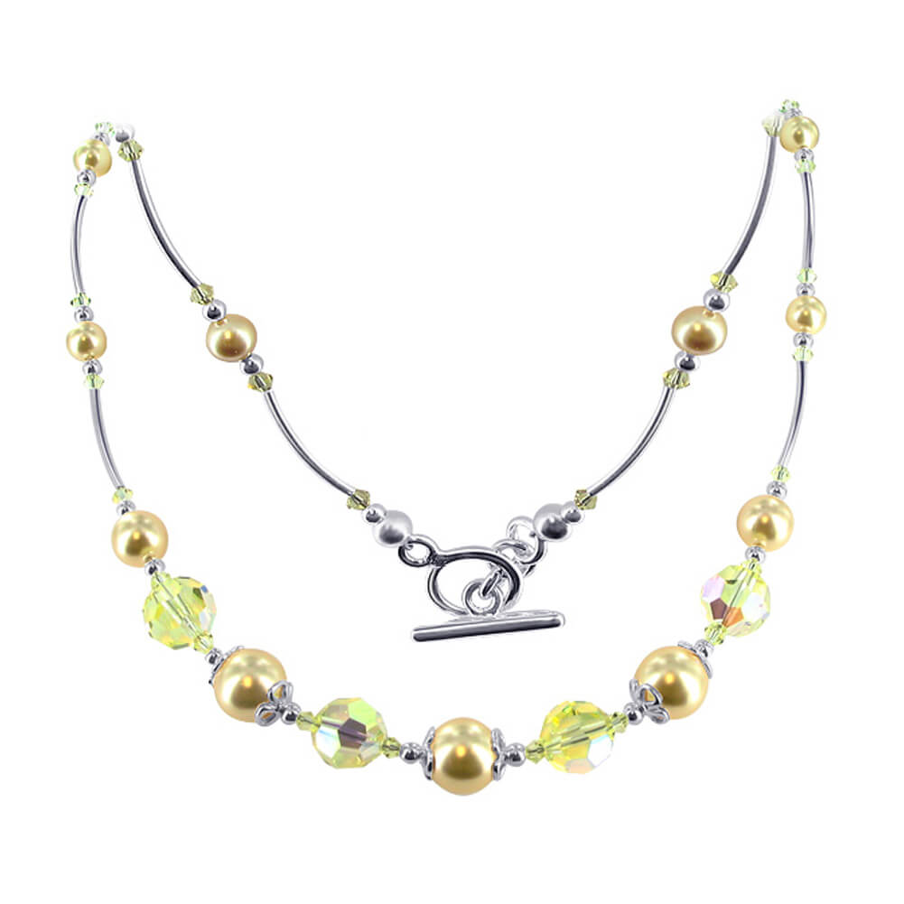 Sterling Silver Necklace adorned with Yellow and Gold Austrian Crystals. The floral details in sterling silver enhance the fashionable appearance of this stunning piece. Coordinating bracelets within the identical design are also available.