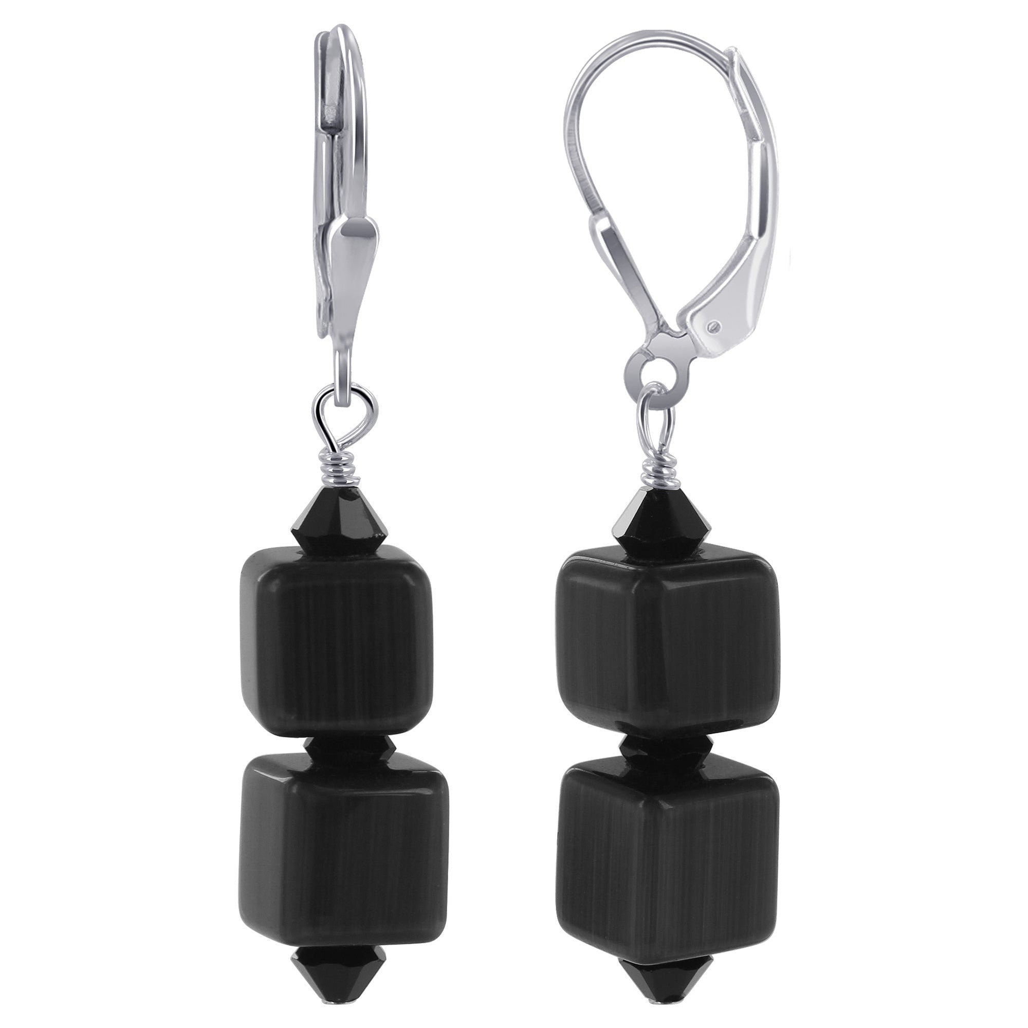 You will fall in love with these gorgeous dangle earrings. Made from.925 sterling silver, the earrings feature bold 8mm cat's-eye cubes surrounded by 4mm bicone Austrian crystals that glitter with every move.