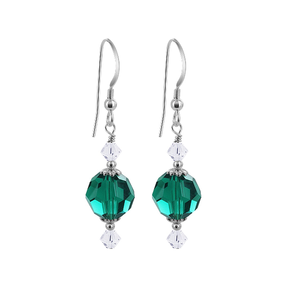 Handmade 925 Sterling Silver Drop Earrings with Round and Bicone Multifaceted Austrian Crystals