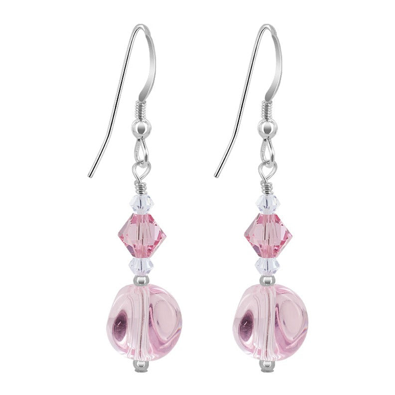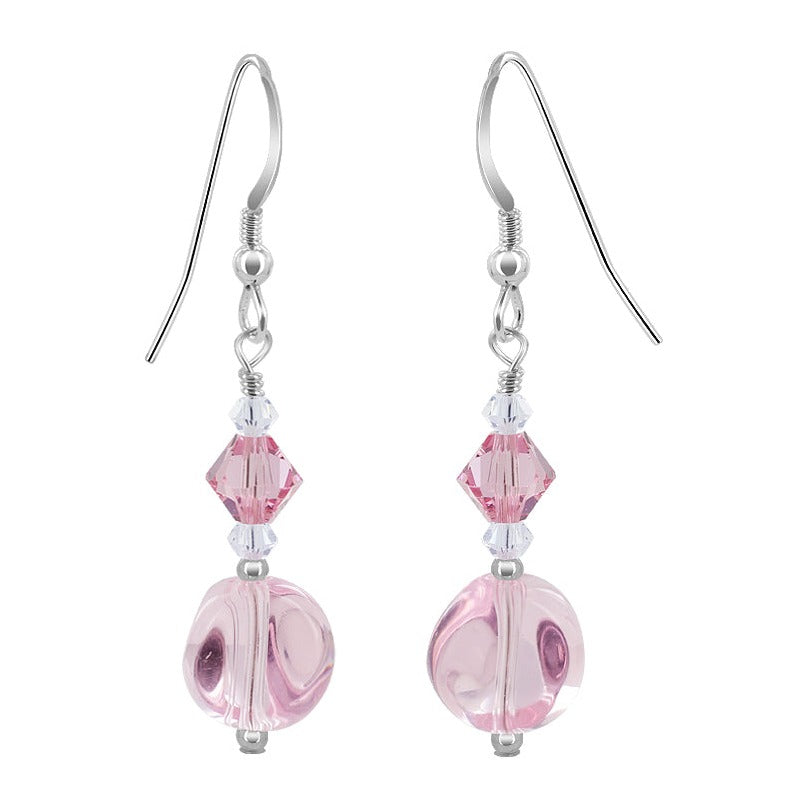 You will fall in love with these stunning dangle earrings. Made from .925 sterling silver, the earrings feature 3mm and 6mm light rose and clear bicone crystals.
