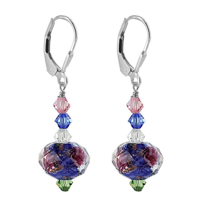 You'll fall in love with these blue blown glass bead earrings! Crafted from .925 sterling silver, each earring features a multifaceted blown glass bead, along with Austrian bicone crystals in light rose, blue, green, and clear.