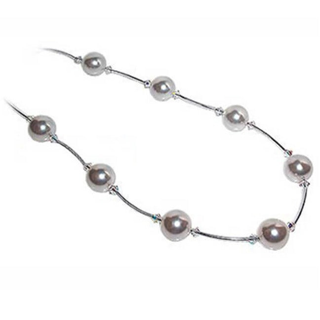 This 925 sterling silver necklace features silver accents elegantly adorned with clear and white Austrian crystals. We also offer matching bracelets and earrings in the same design.
