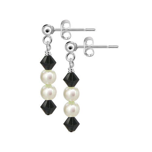 925 Sterling Silver Dangle Earrings made with Cultured Freshwater Pearls and Austrian Crystals. Comes with Post back findings in Sterling Silver. Length of this Earrings is 0.75 inch Long.