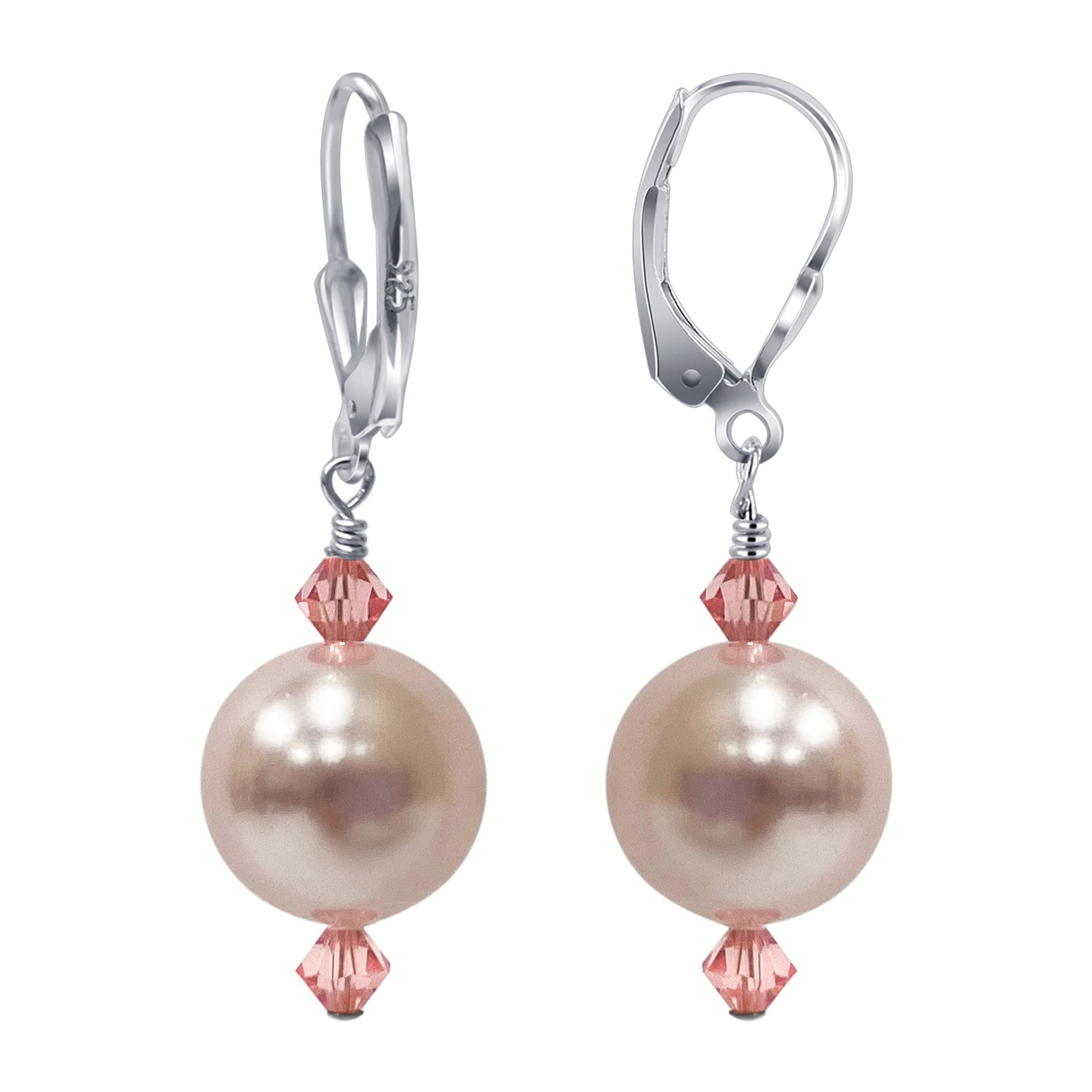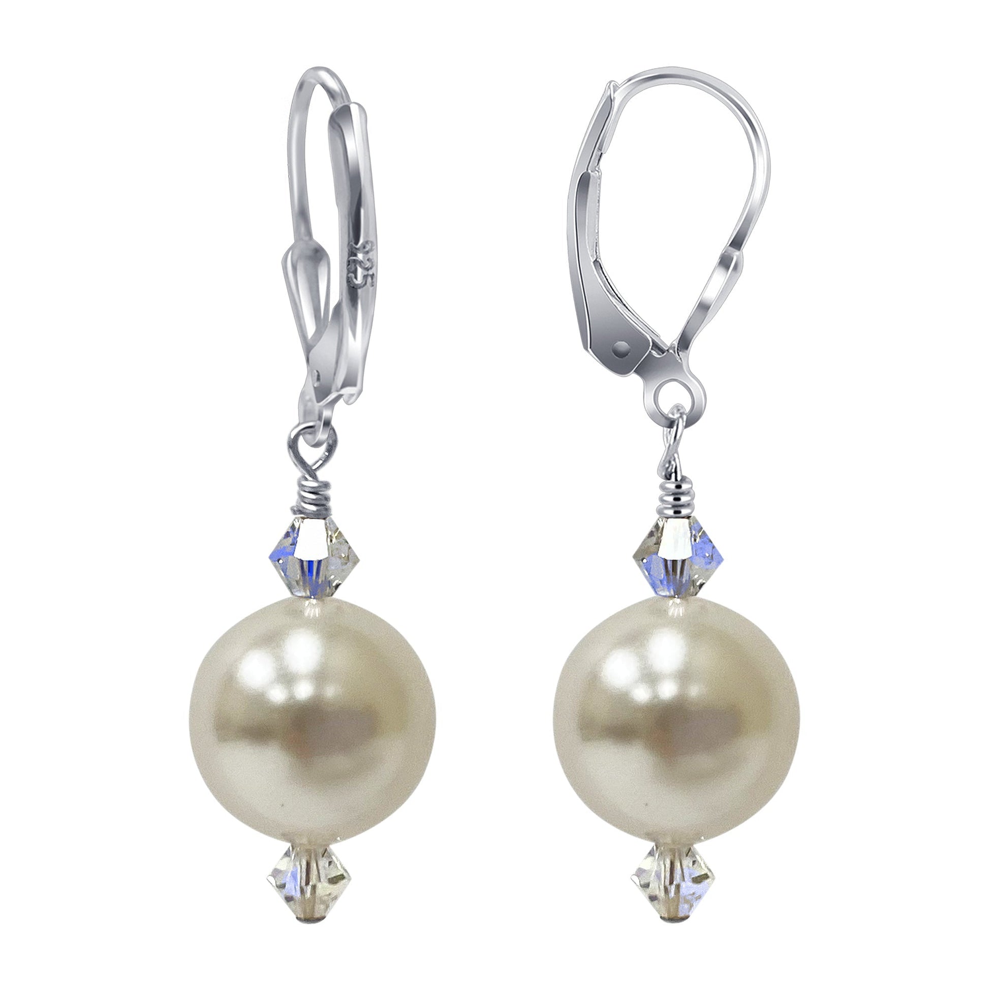 - title_tag : .925 Silver Drop Earrings with Pearl and Austrian Crystals - GEG115