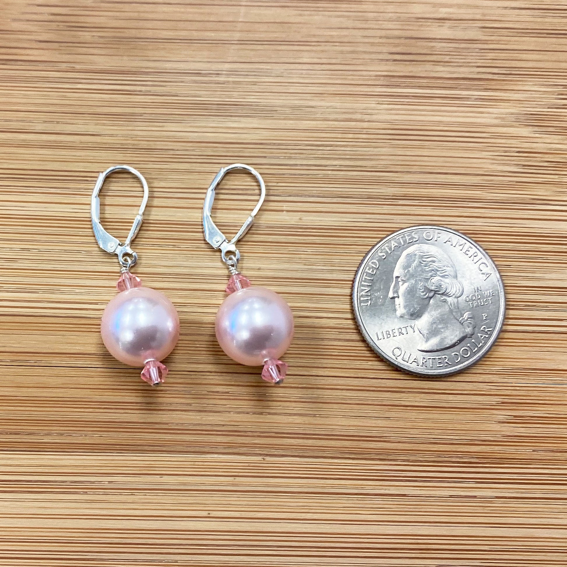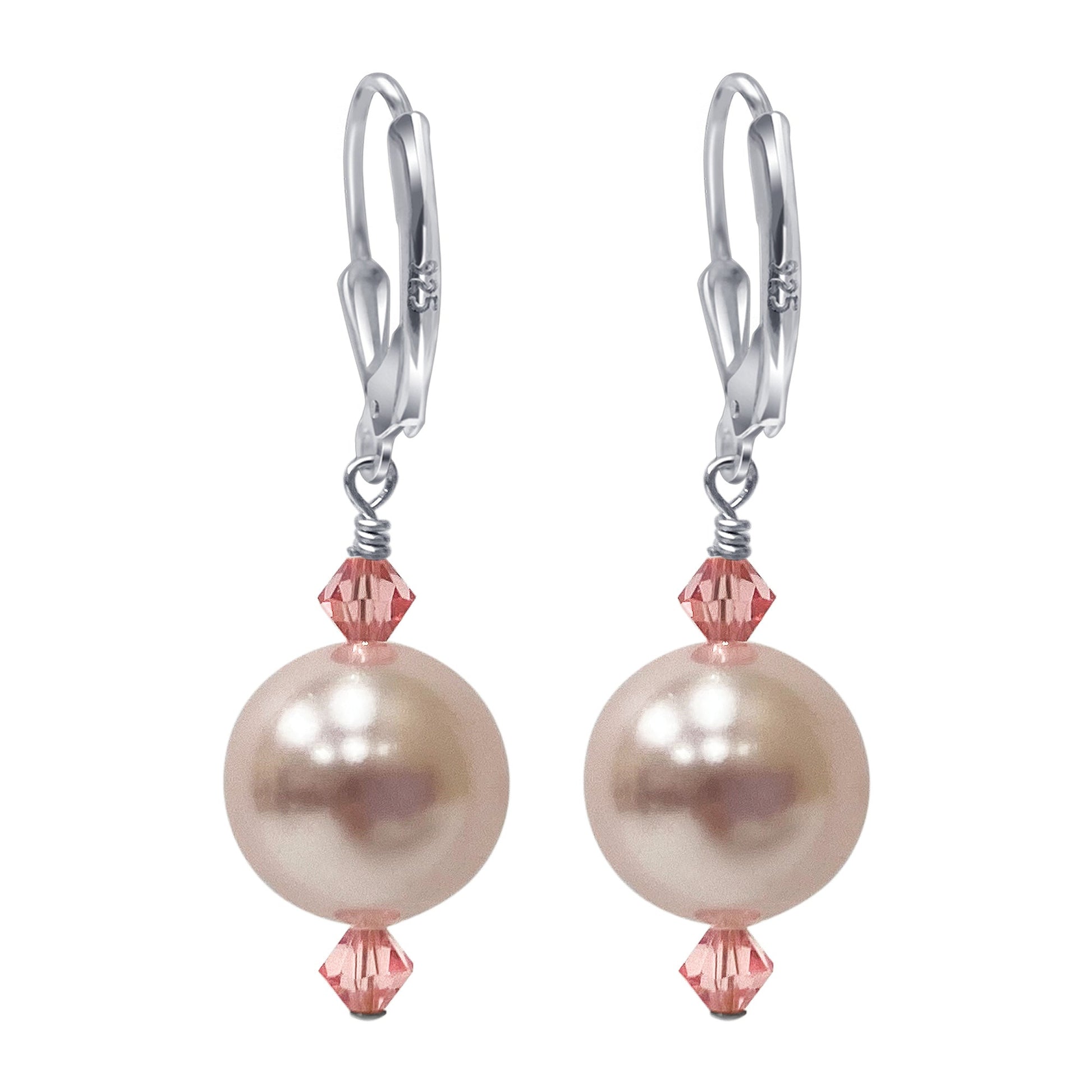 .925 Sterling Silver Drop Earrings with Pearl and Austrian Crystals