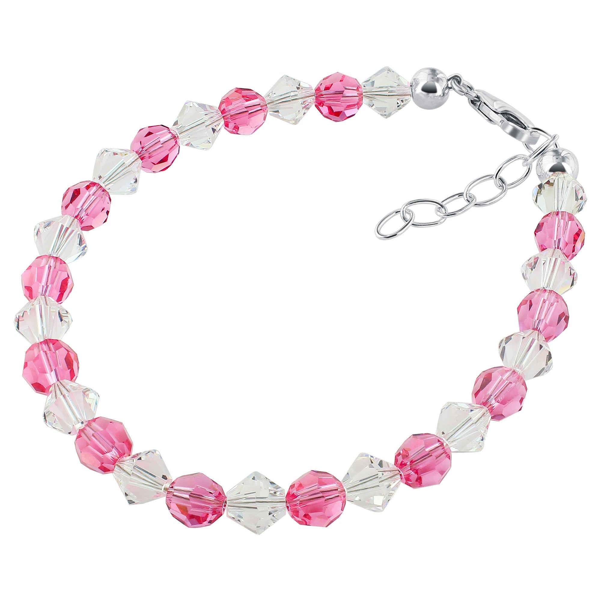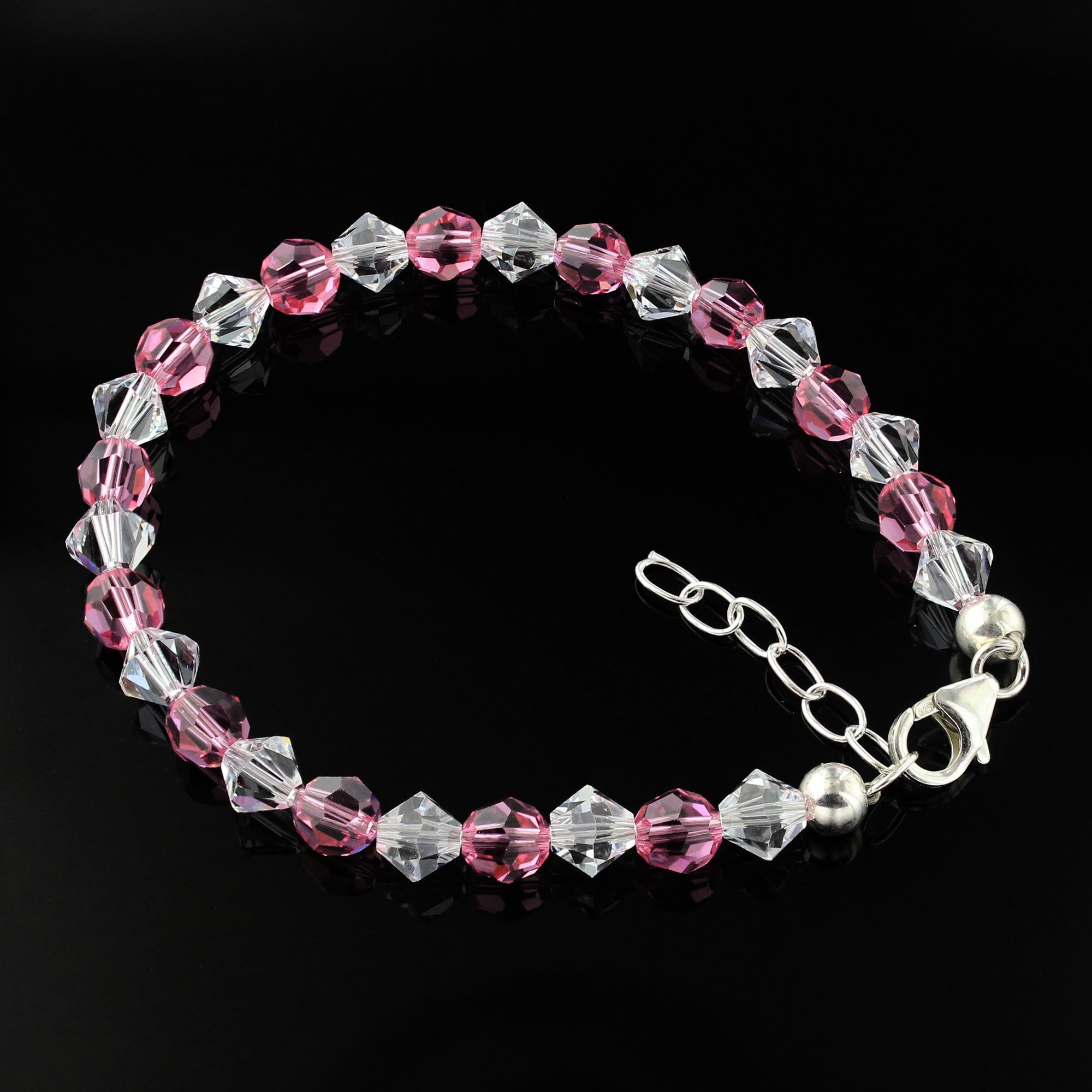 Crafted with Sterling Silver Adjustable Bracelet made with Bicone and Round Shape Austrian Crystals.