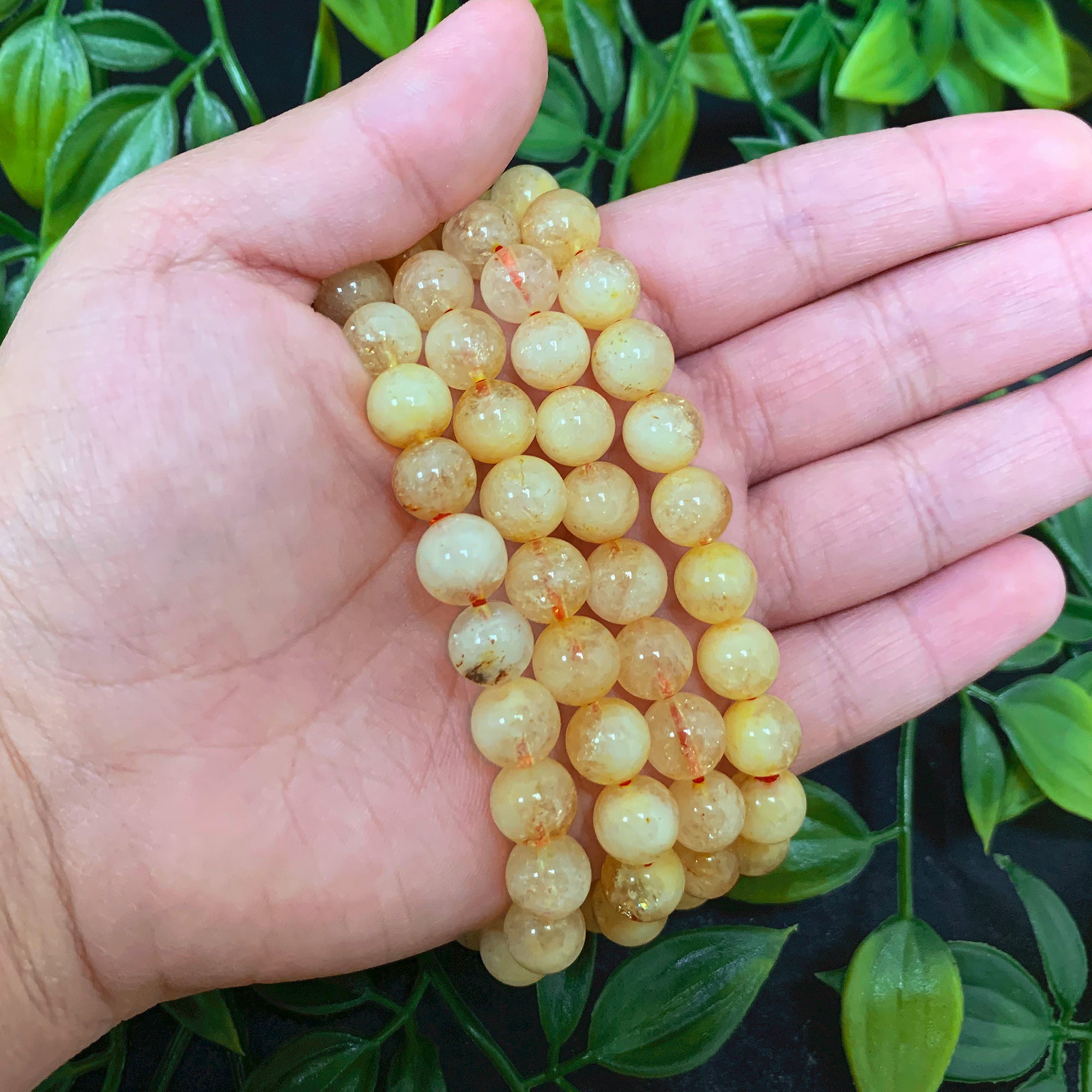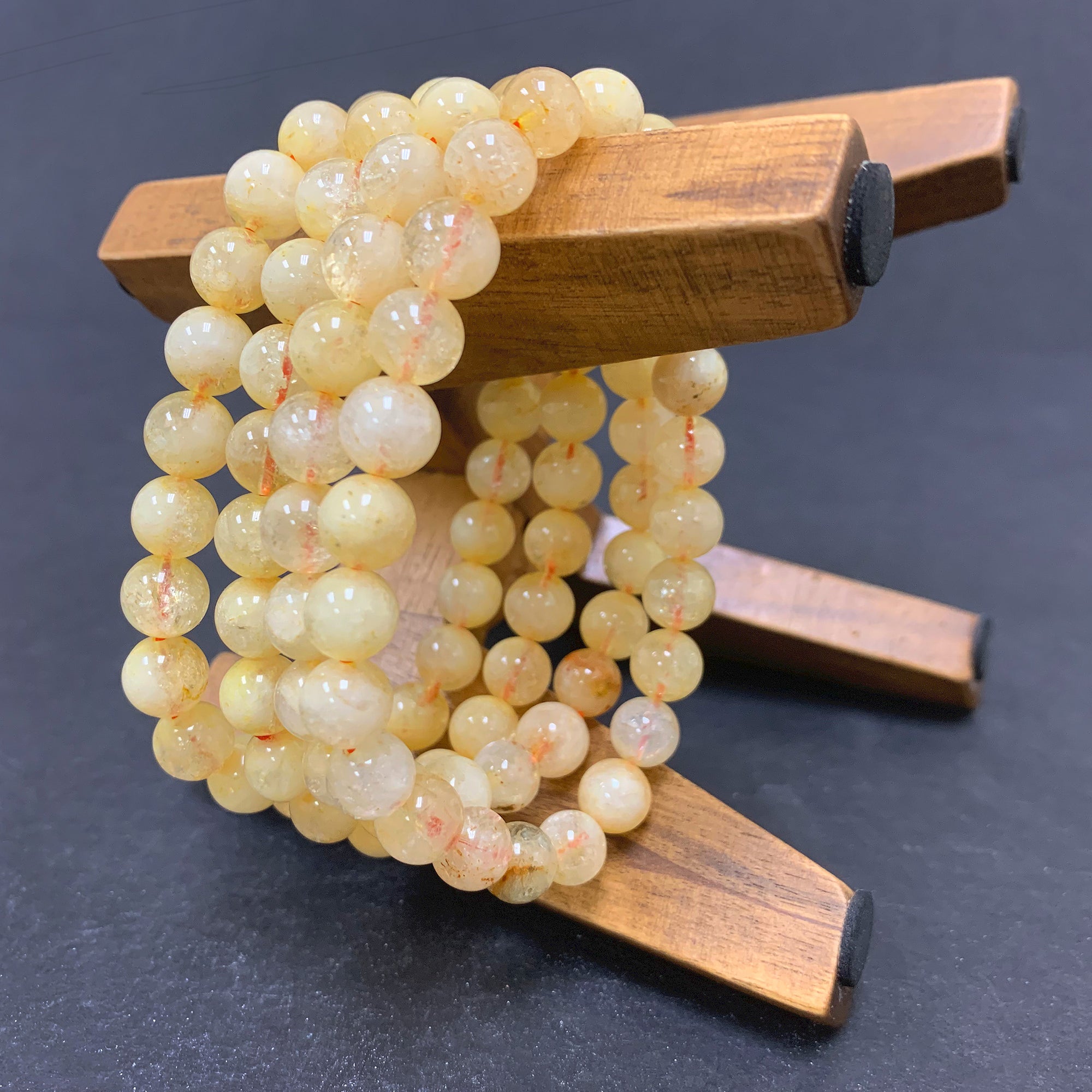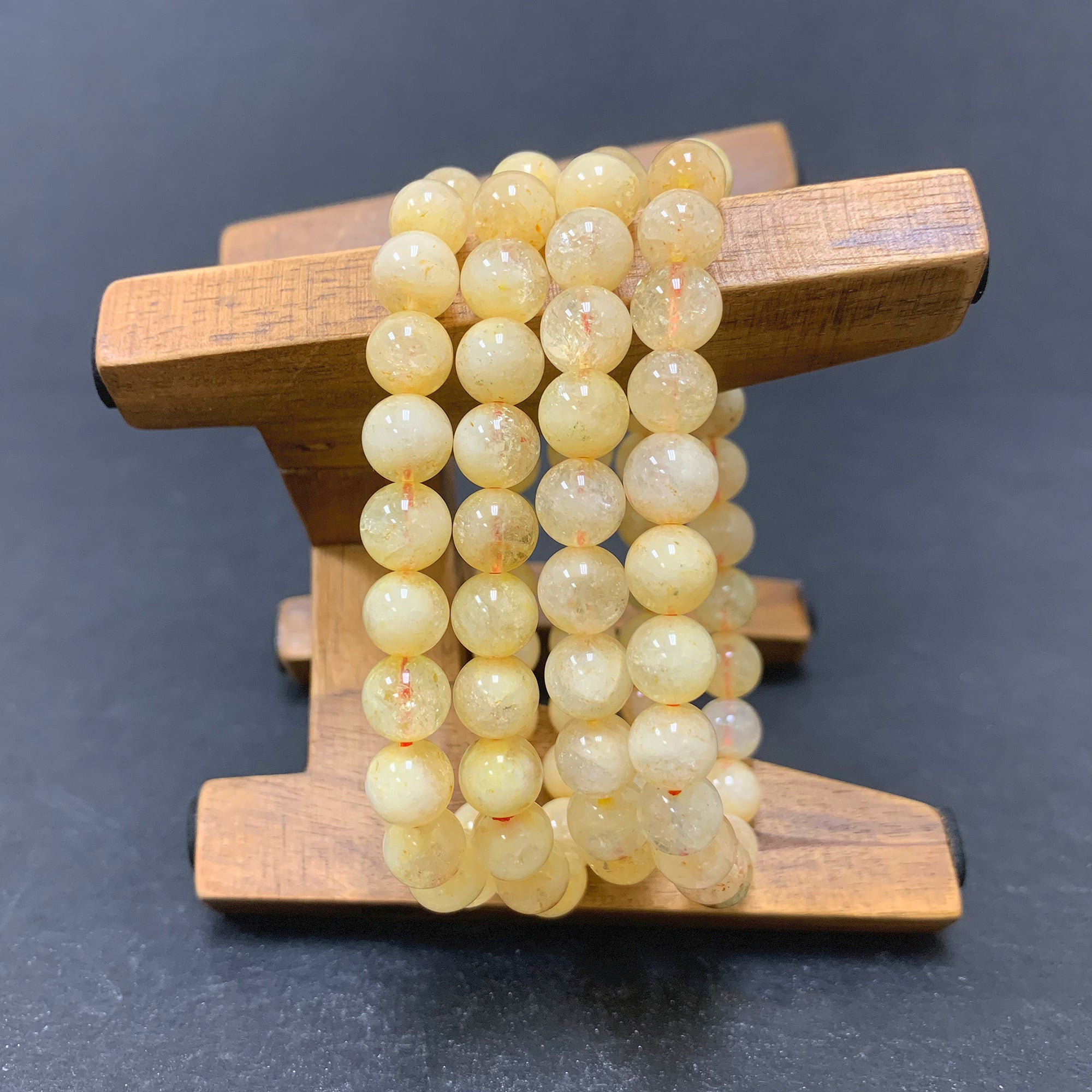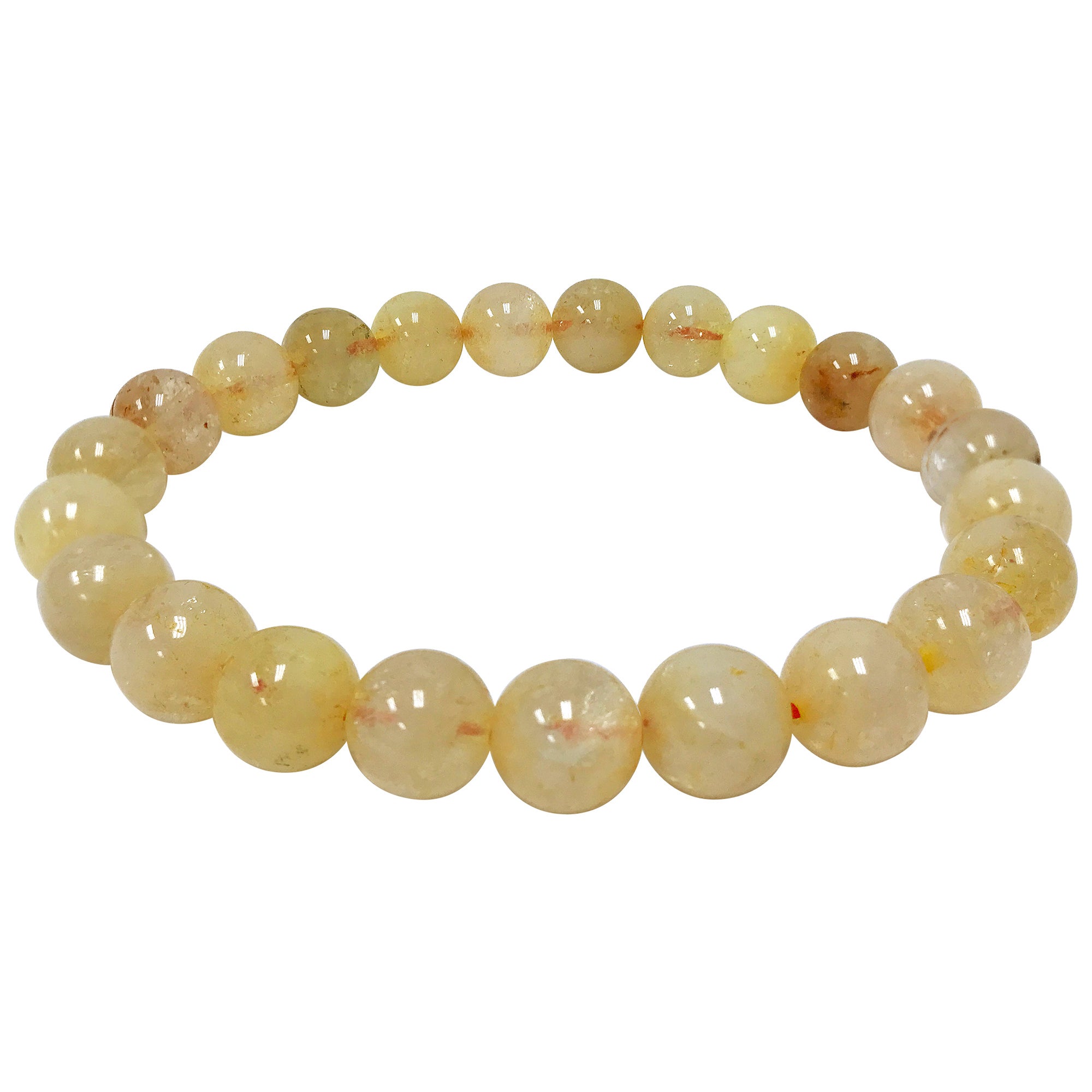 Each bracelet is composed of 8mm Citrine beads. Every individual bead contains a vibrant yellow shade with subtle hints of white found throughout. This Citrine bracelet is a sure must have at an unbeatable price!