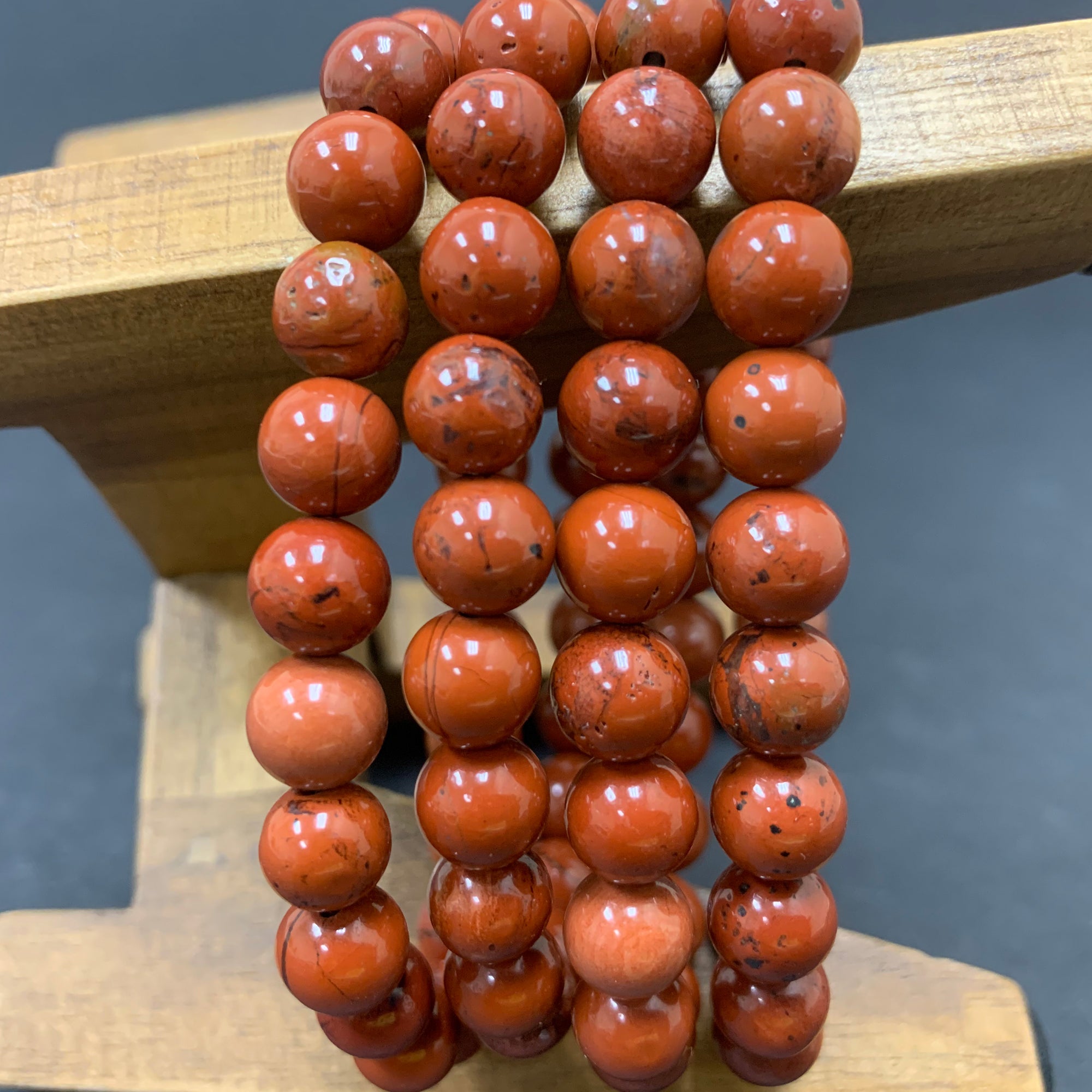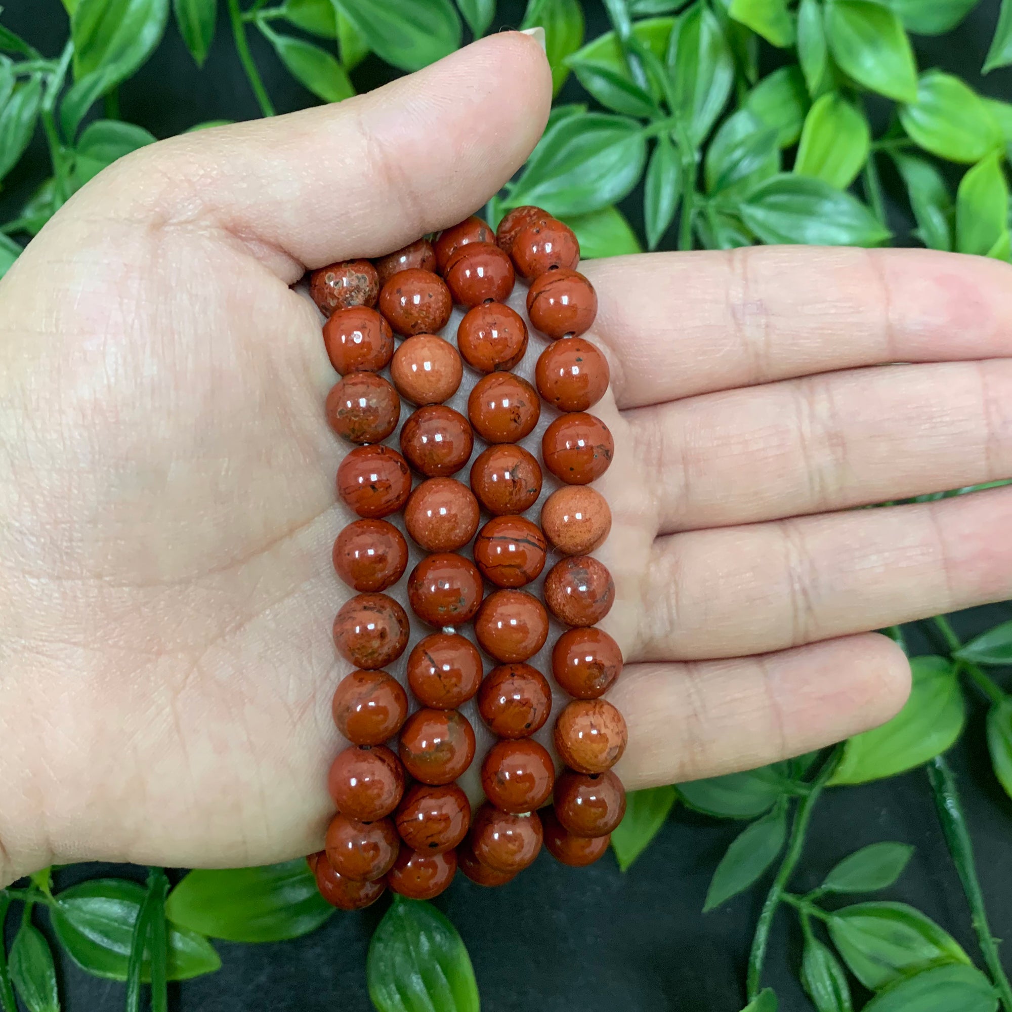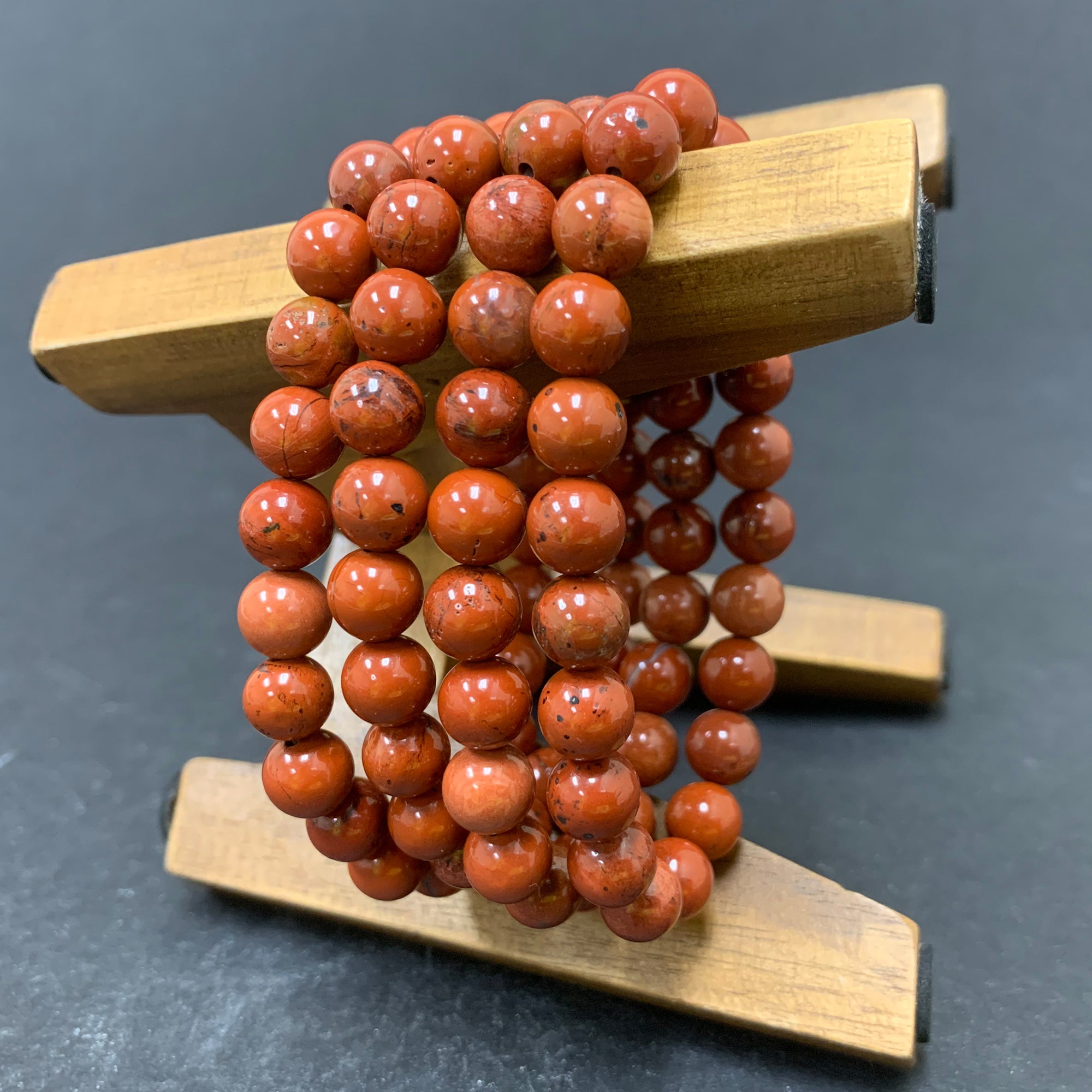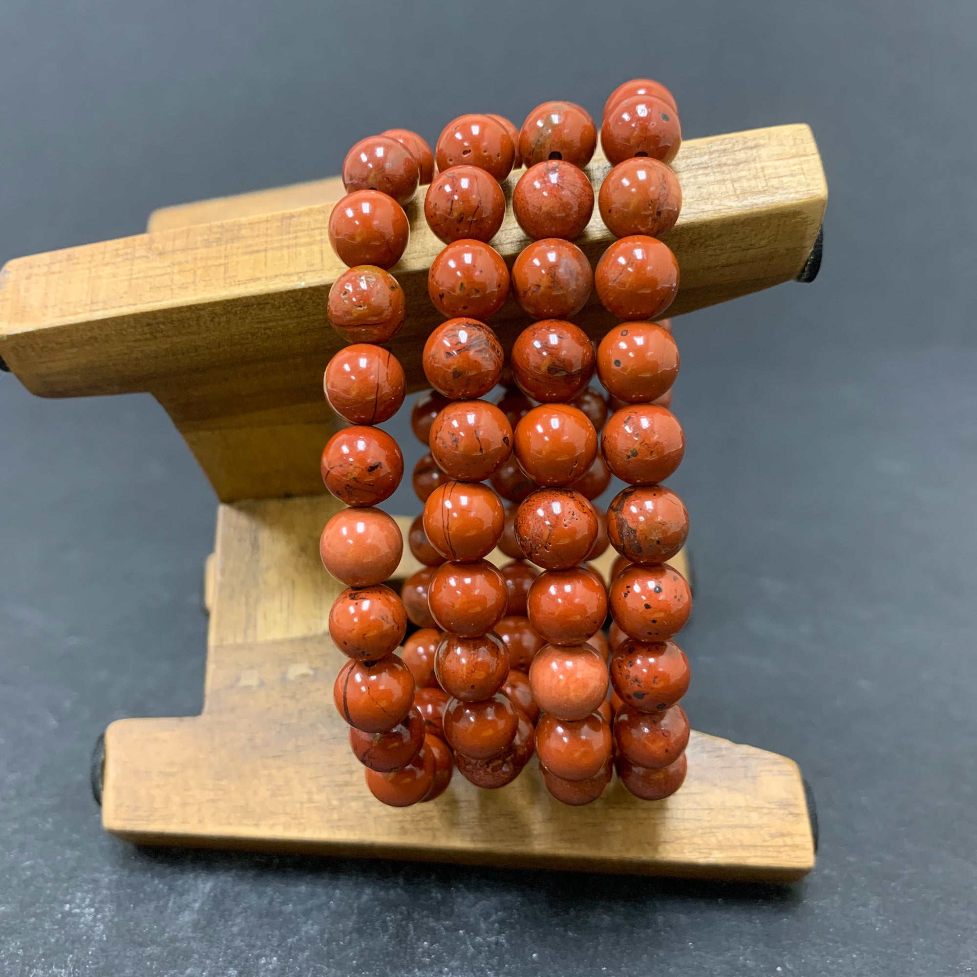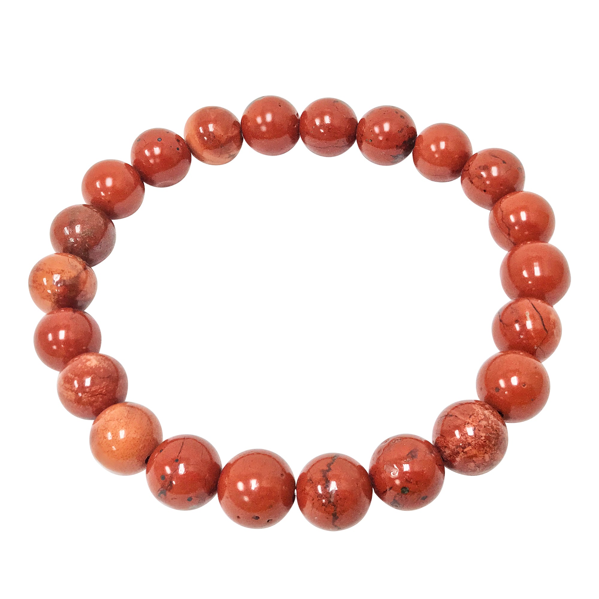 Each bracelet is composed of 8mm Red Jasper beads. Every individual bead contains a vibrant shade of red along with subtle touches of black. This Red Jasper bracelet is a sure must have at an unbeatable price!