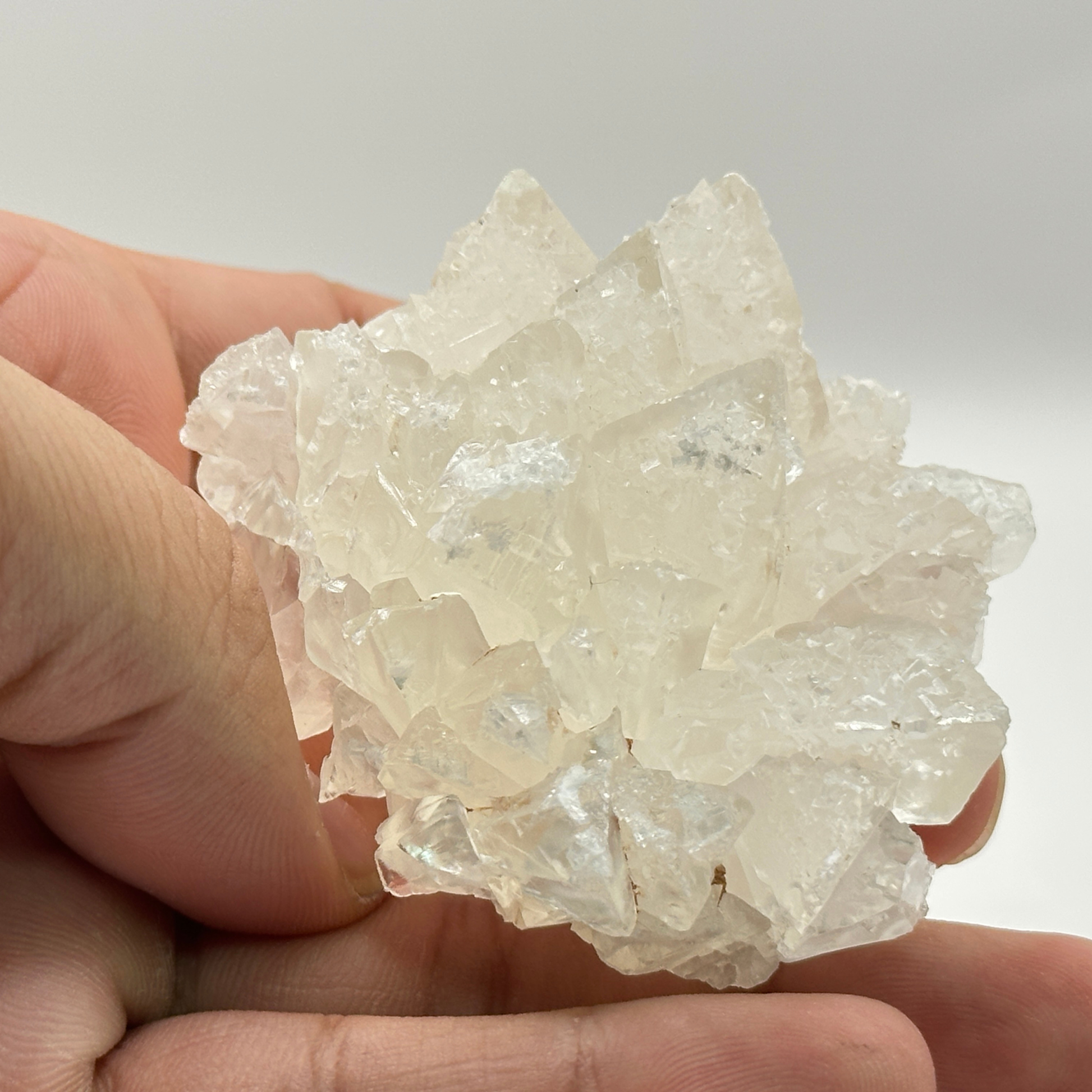 Introducing our captivating Natural Calcite Mineral Specimen, a unique addition to your collection or home decor. This stunning piece hails from the lush landscapes of Indonesia, measuring approximately 2.5 inches in length, 2.25 inches in width, and 1.5 inches in height, with a weight of around 5.3 ounces. The specimen showcases a mesmerizing array of crystal formations, featuring distinct, translucent calcite crystals that sparkle under natural light.