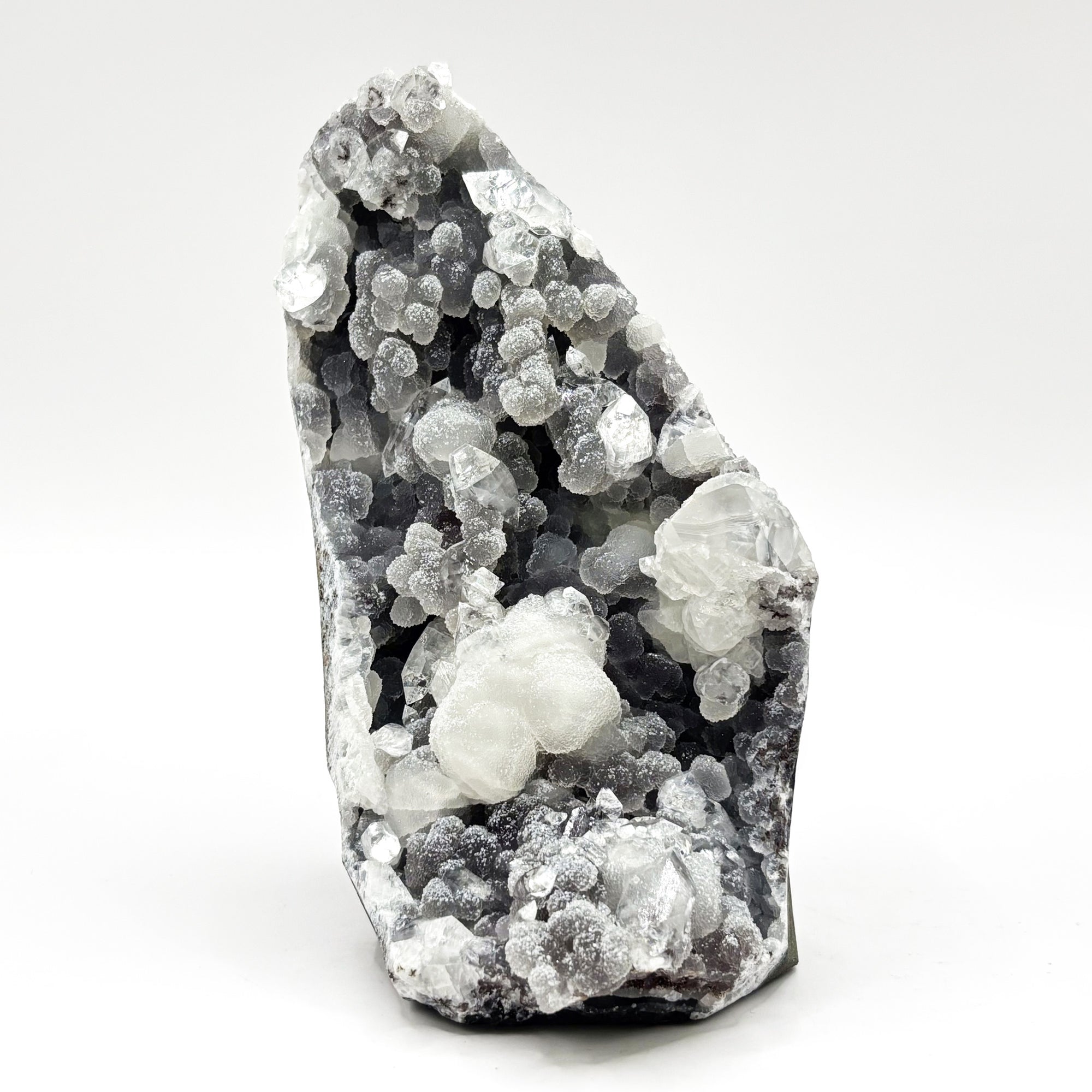 This stunning cluster is not only a delight to the eyes but also a fascinating piece for collectors and enthusiasts of mineralogy. It's a perfect addition to any display, offering a blend of colors and textures that can brighten up any space. The specimen is sourced from the mineral-rich regions of India, ensuring its authenticity and quality.