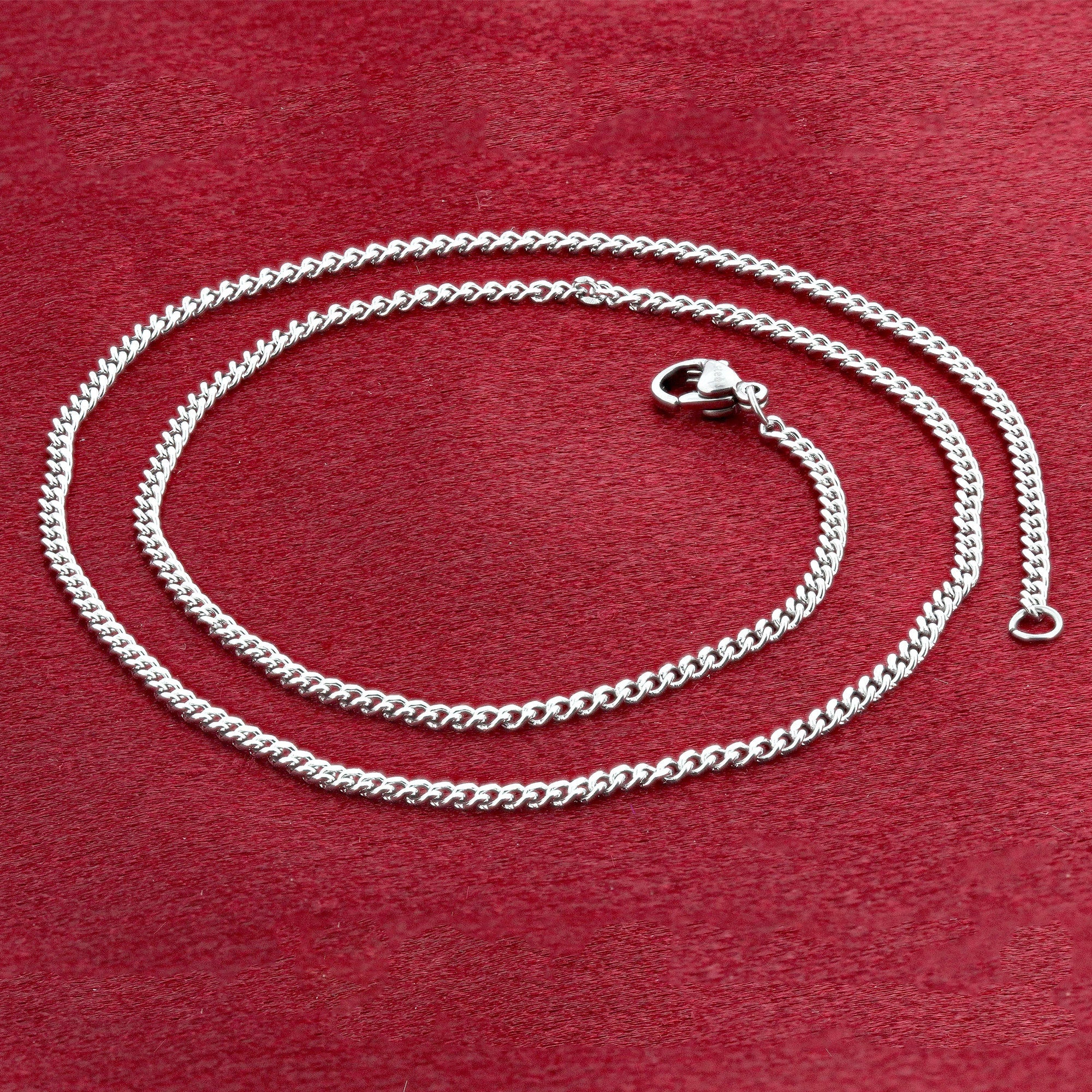 - description_tag : This stunning 2.3mm stainless steel curb Cuban chain necklace is available in lengths from 16 to 24 inches. Made from high-quality materials, it offers luxury at an affordable price. Perfect for gifting, it arrives in a classic box for elegant presentation. Slight color variations may occur due to lighting.