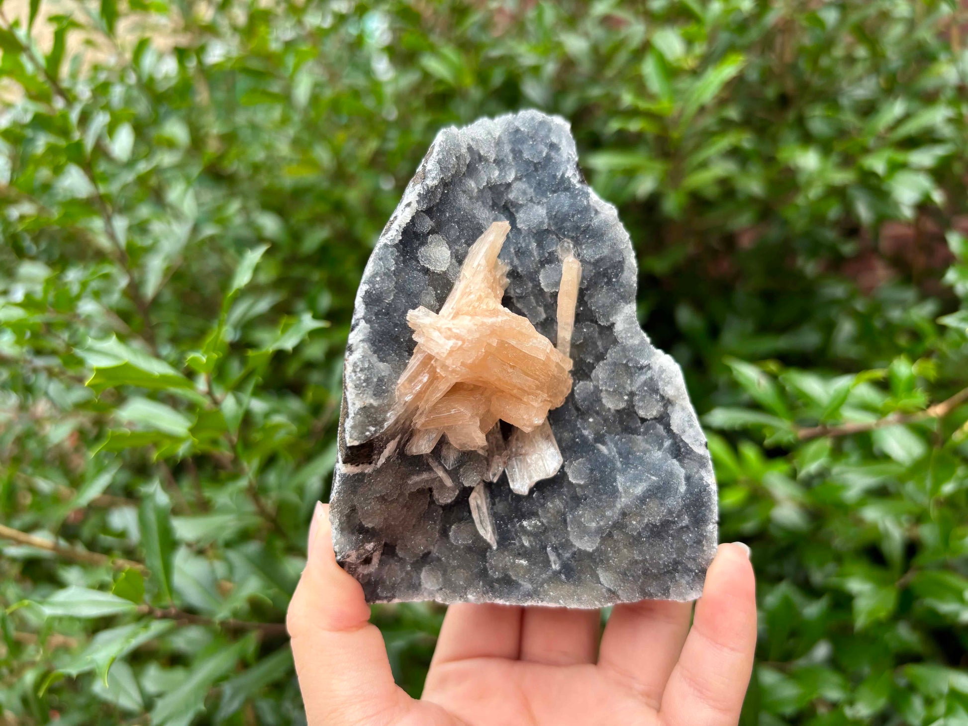 This unique crystal cluster is not only a striking addition to any home decor but also a powerful tool for healing, meditation, and energy work. Stilbite is known for its calming properties, helping to alleviate stress and anxiety, while promoting emotional healing and spiritual growth. The peach hue is associated with the heart chakra, making it an excellent stone for fostering love, compassion, and inner peace. Whether you're a seasoned crystal collector or a beginner looking to explore the world of energy work, this specimen is a must-have addition to your collection.