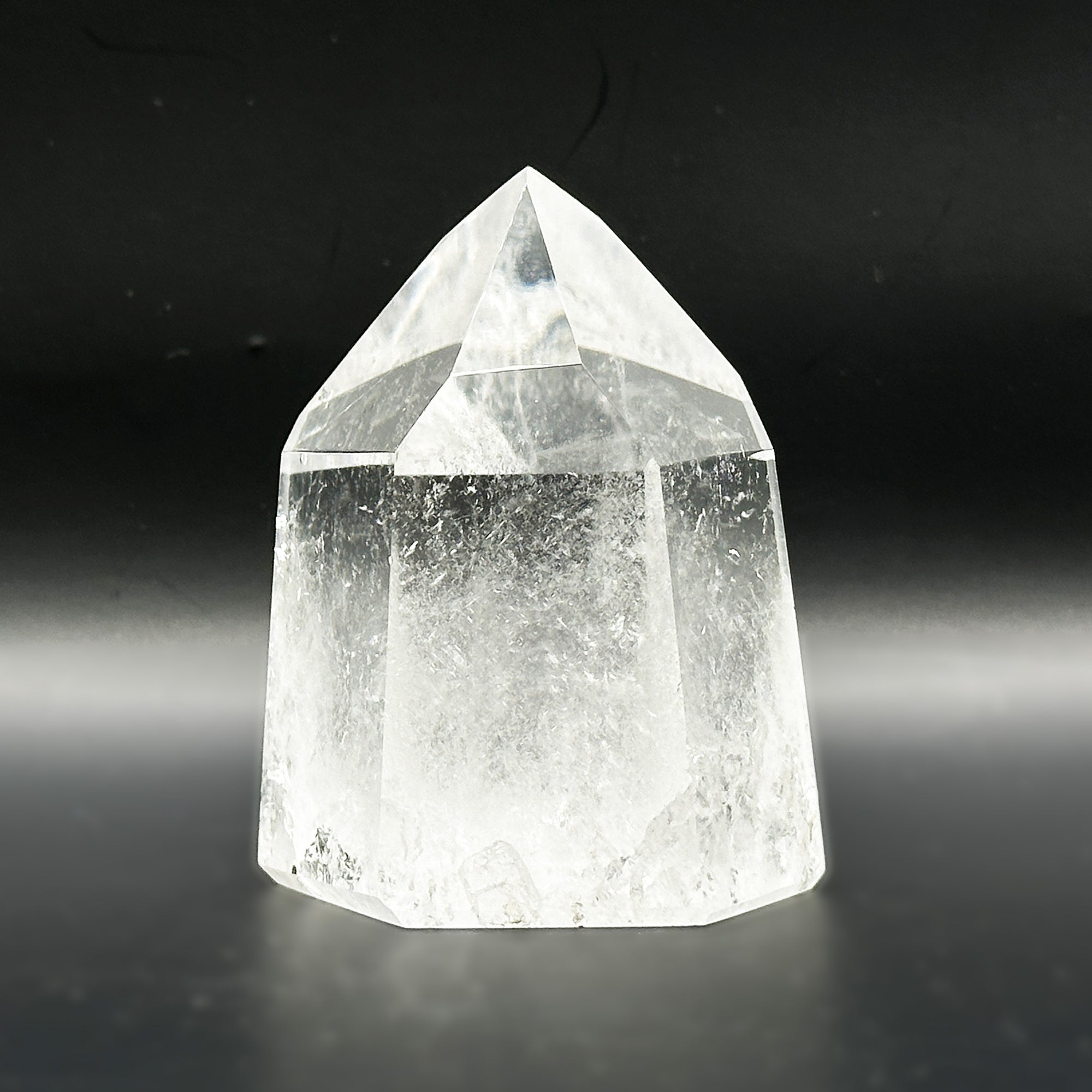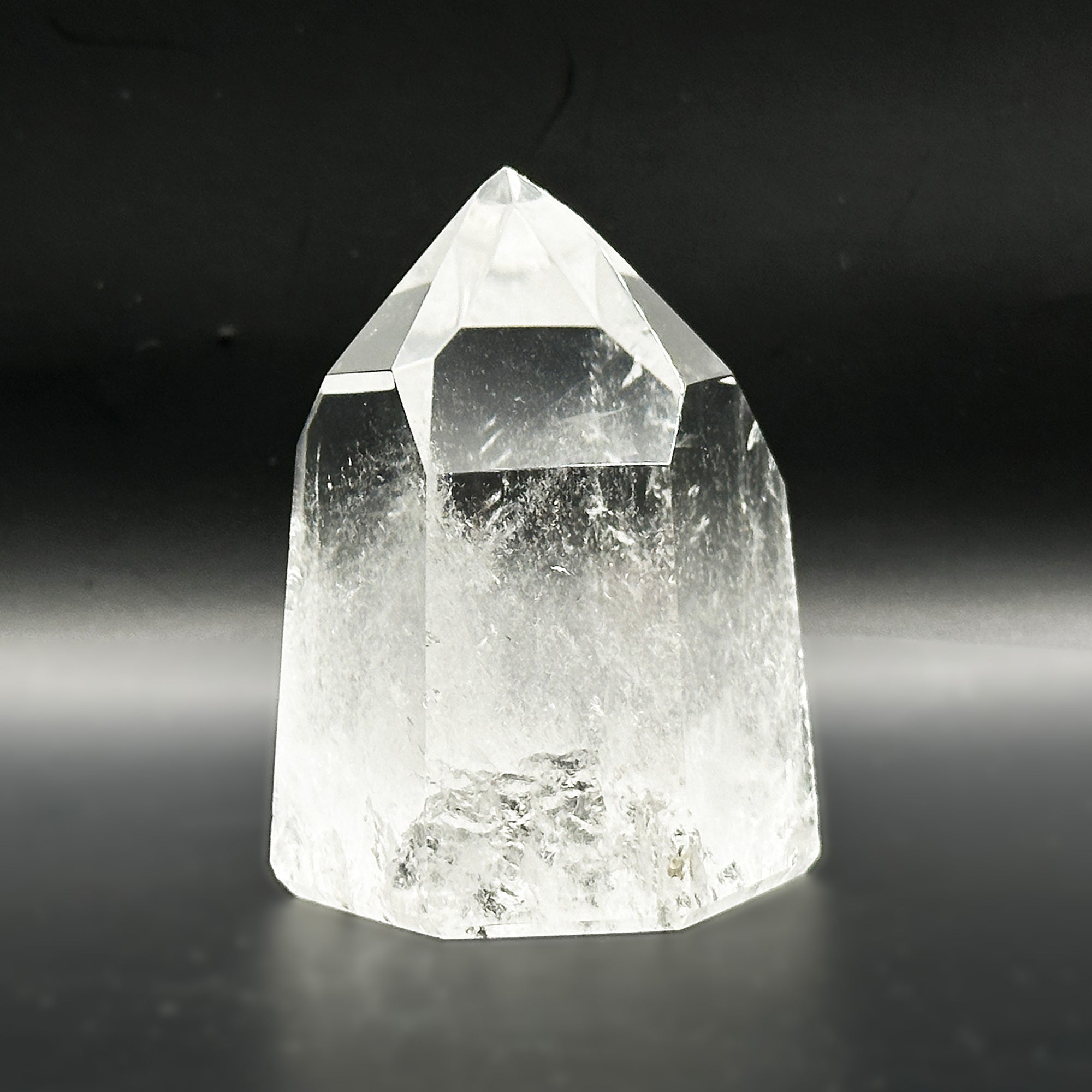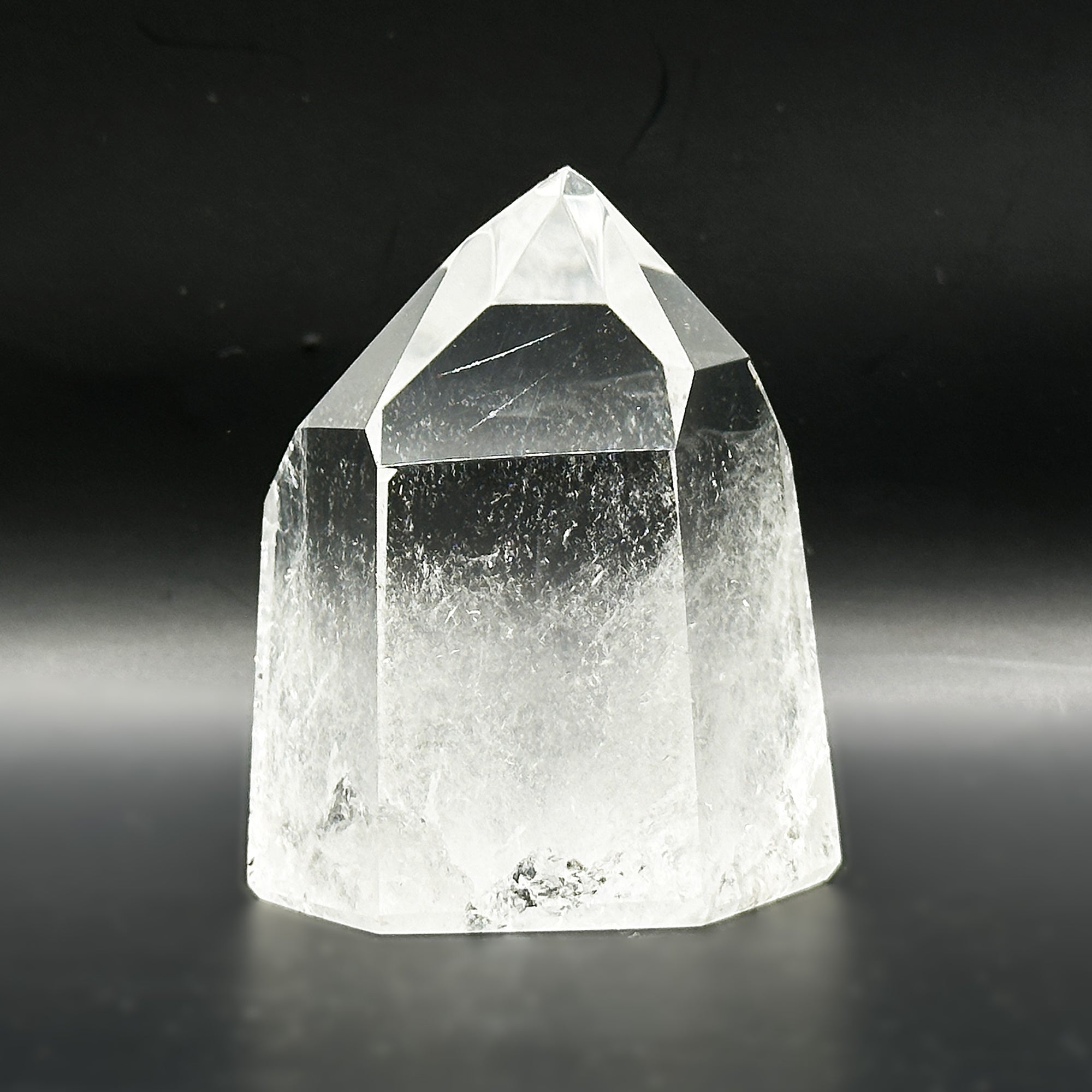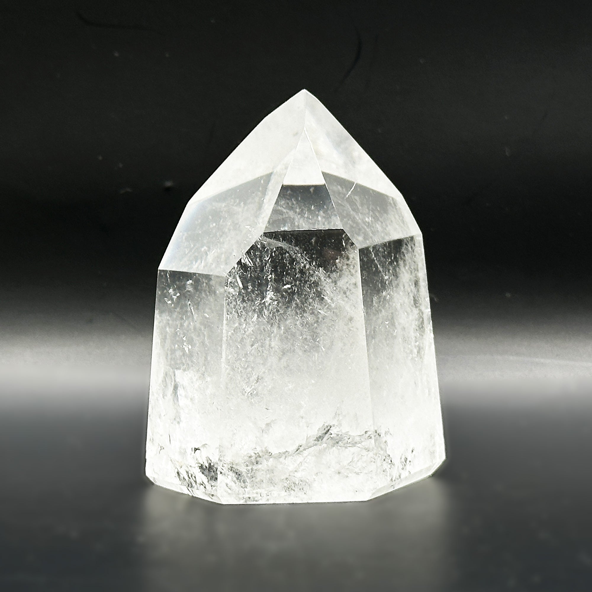 This Natural Clear Quartz Point is sourced from Brazil and polished to a smooth glossy finish. The crystal measures 1.75 inches in length 1.5 inches in width and 2.5 inches in height weighing approximately 6.2 ounces. Its transparent clarity and naturally formed hexagonal termination showcase its pure mineral structure making it an eye-catching display piece ideal for collectors enthusiasts or decorative use.