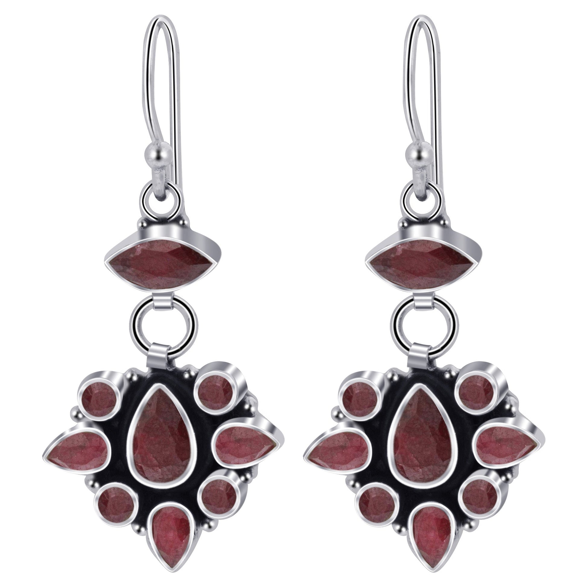 - title_tag : Dyed Ruby Gemstone Bali Design Drop Earrings with .925 Sterling Silver - GE536