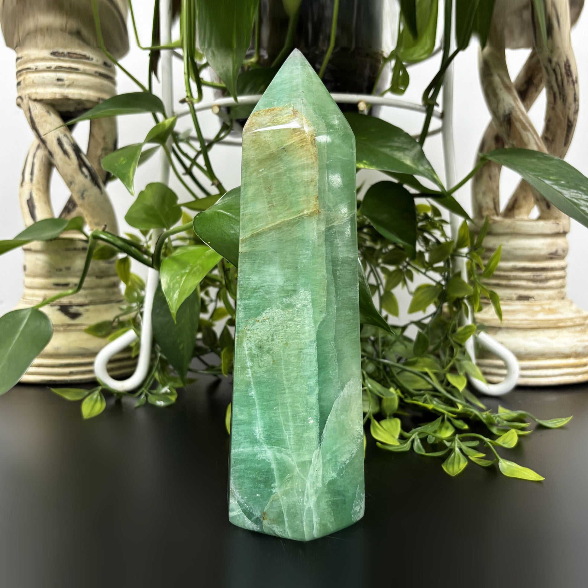 - title_tag : Natural Green Fluorite Obelisk Tower Polished Crystal - RPO460