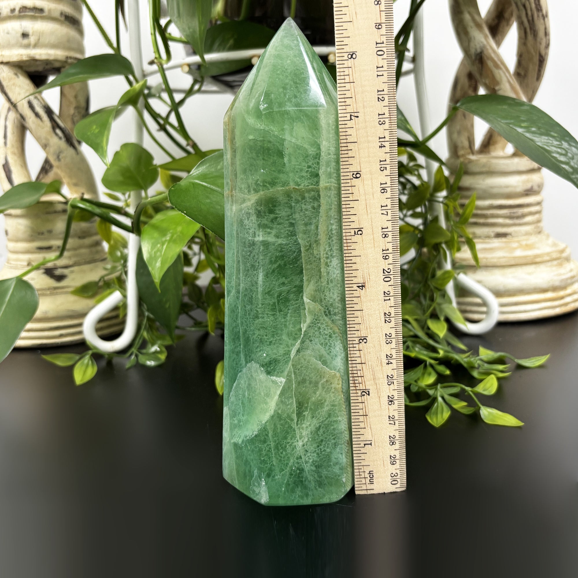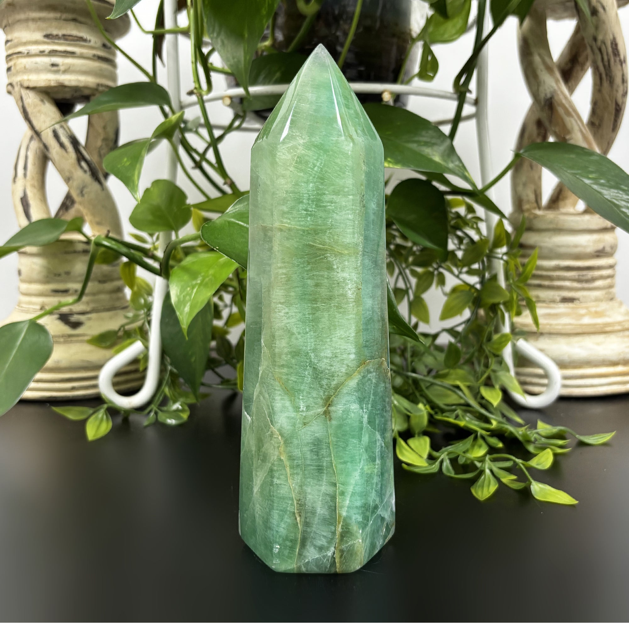 This Natural Green Fluorite Crystal Gemstone Obelisk Tower Point is a perfect addition to your healing and spiritual practice. The polished stone harnesses the natural energy and clarity of fluorite, aiding in mental focus and emotional balance. Expertly crafted for optimal healing benefits.