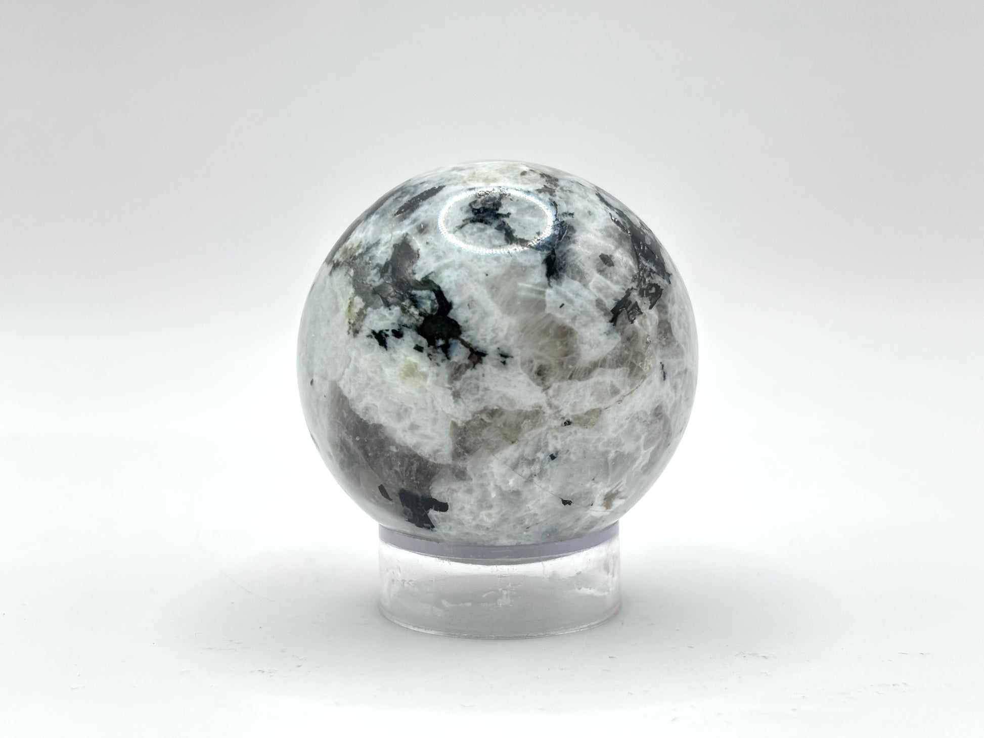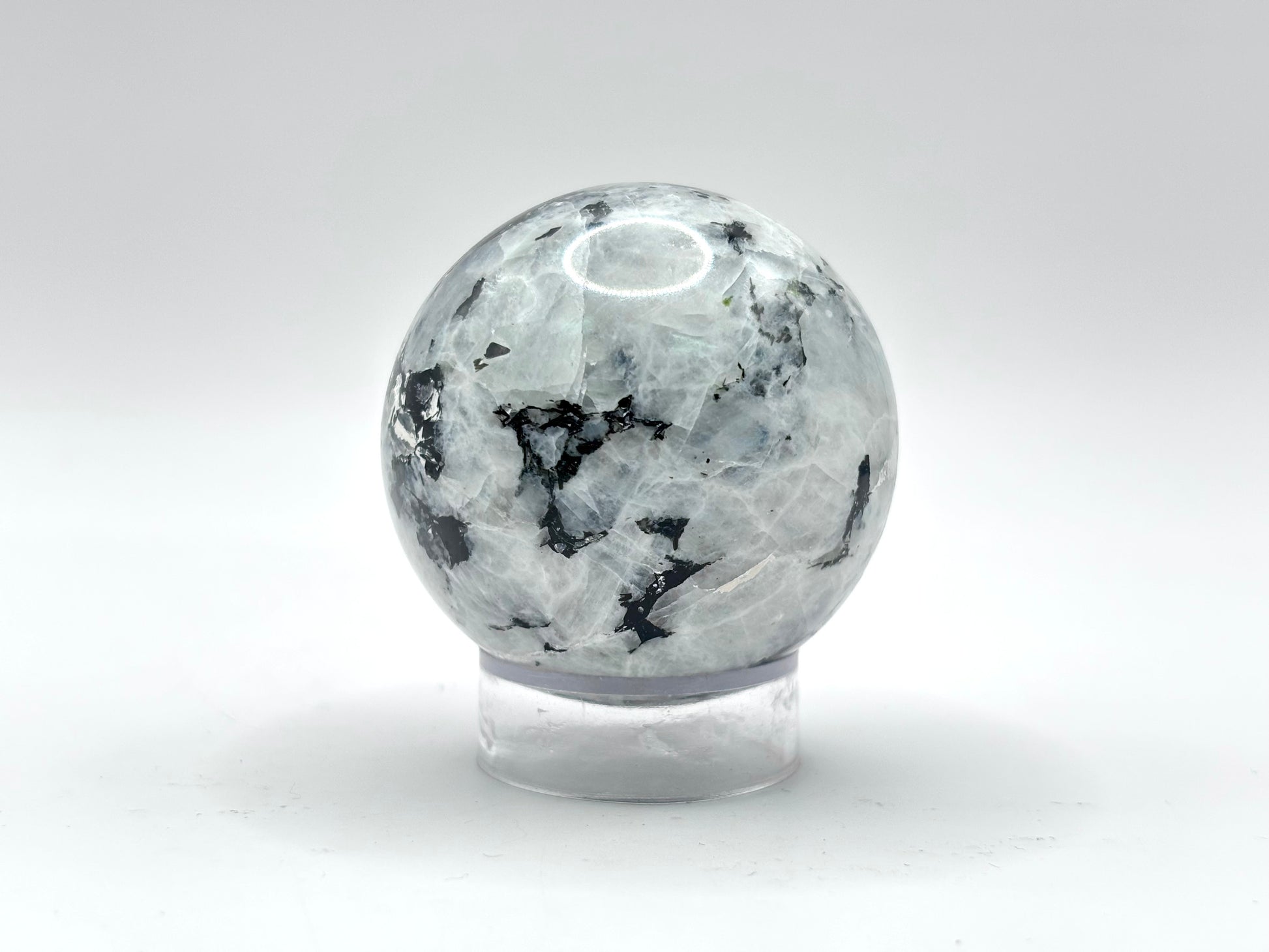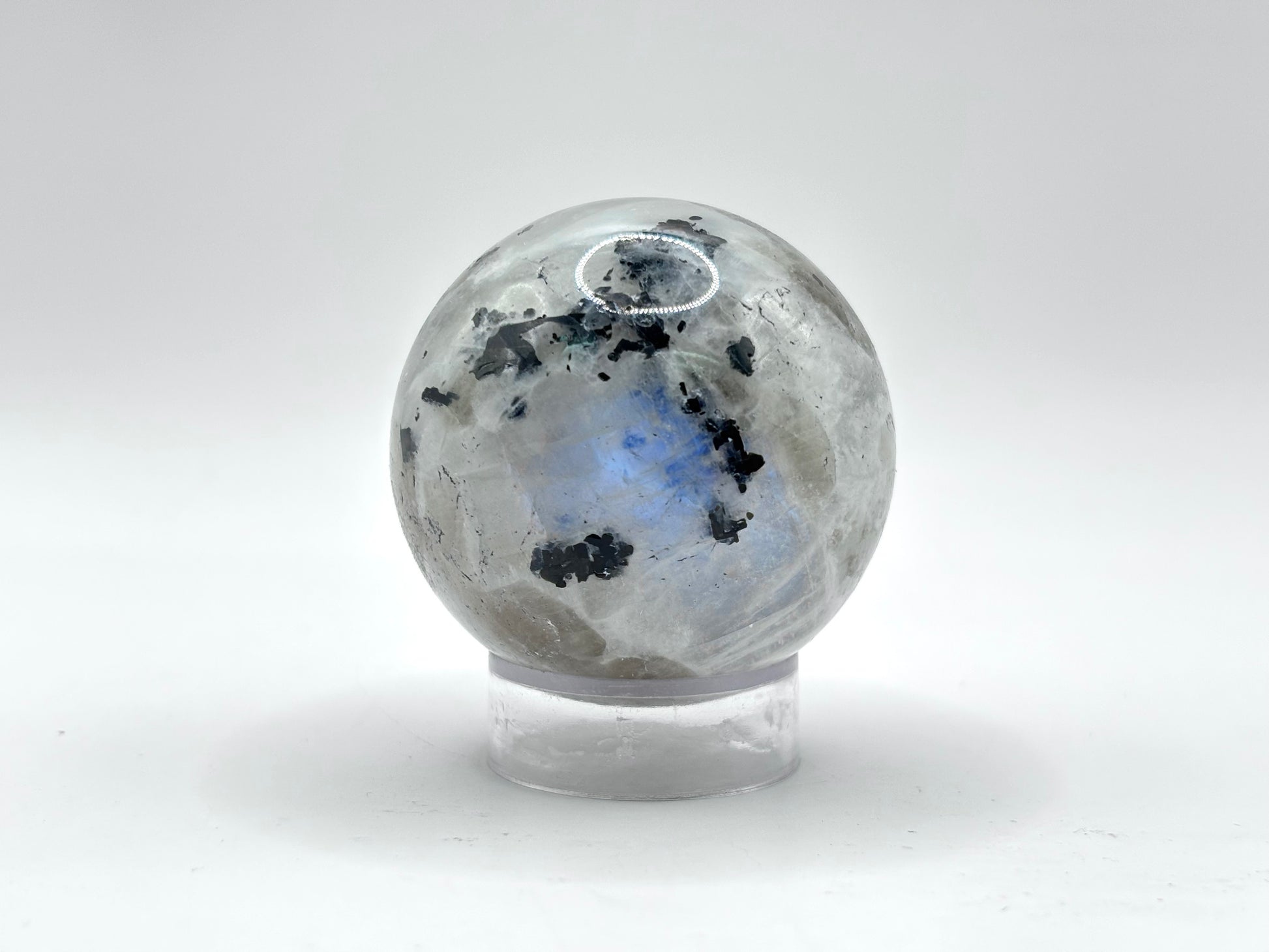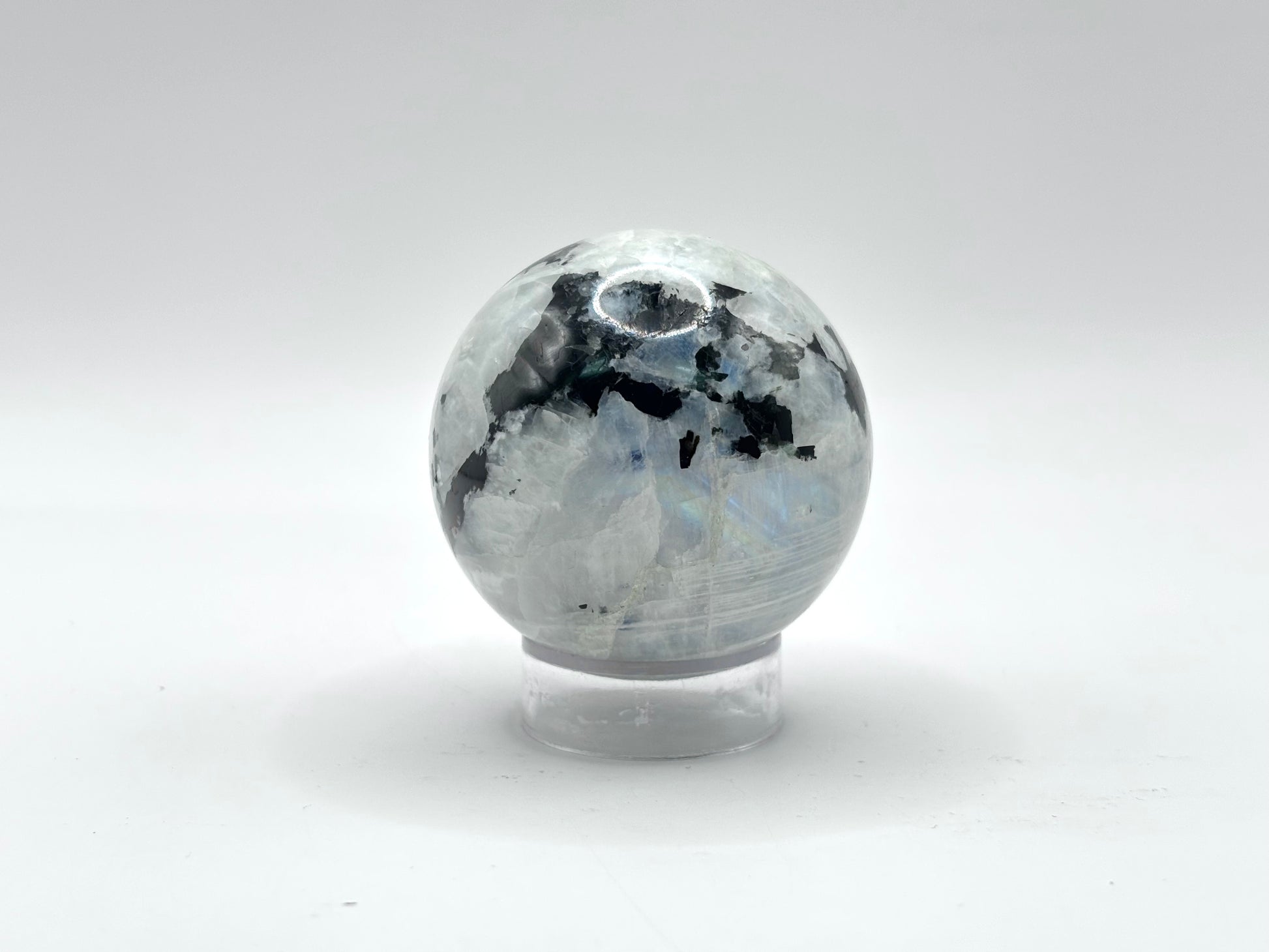 - title_tag : Rainbow Moonstone Sphere w/ Black Tourmaline - RBL337