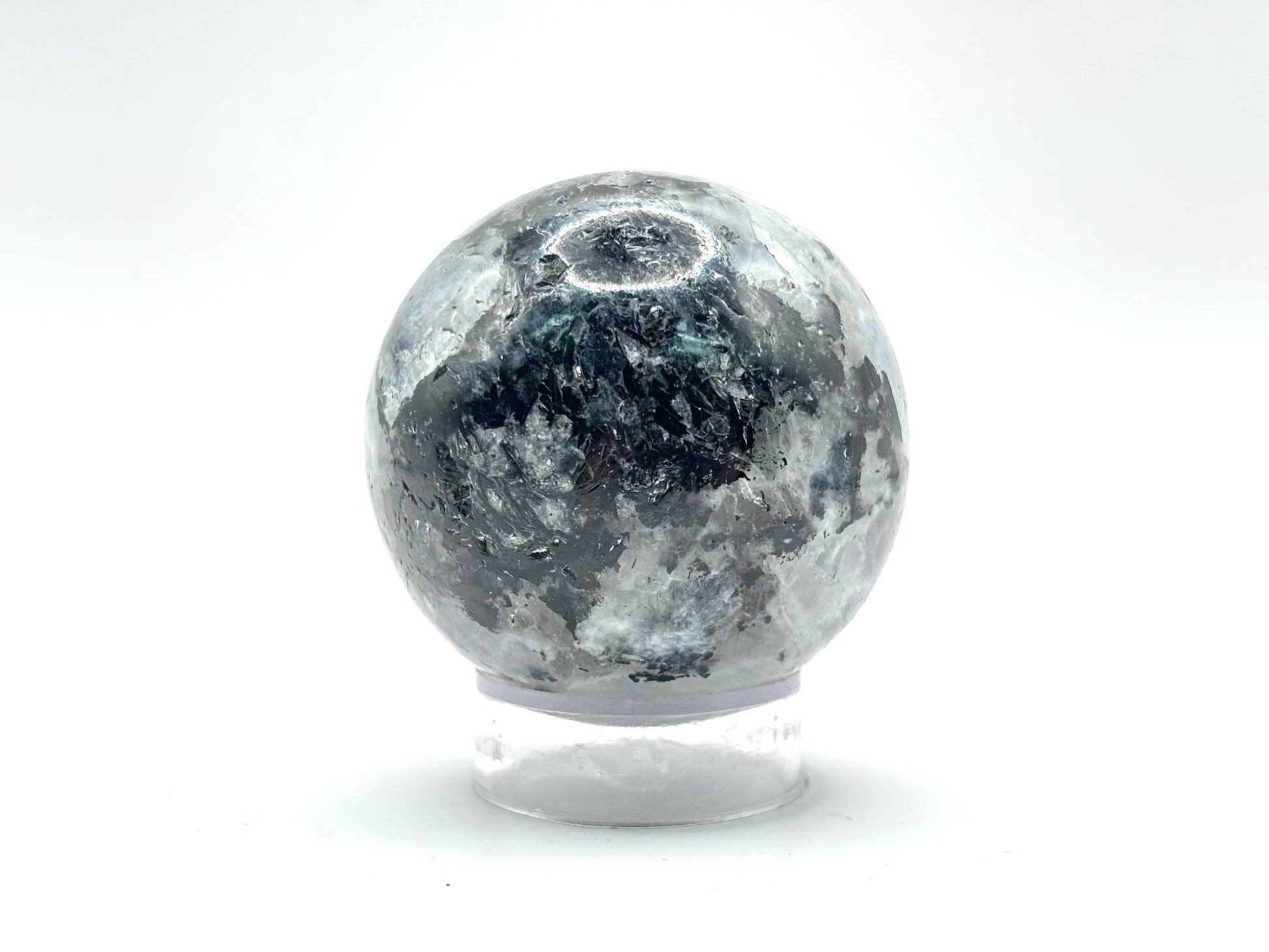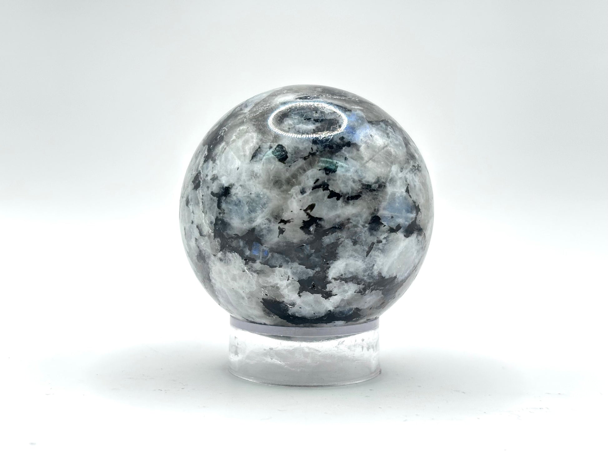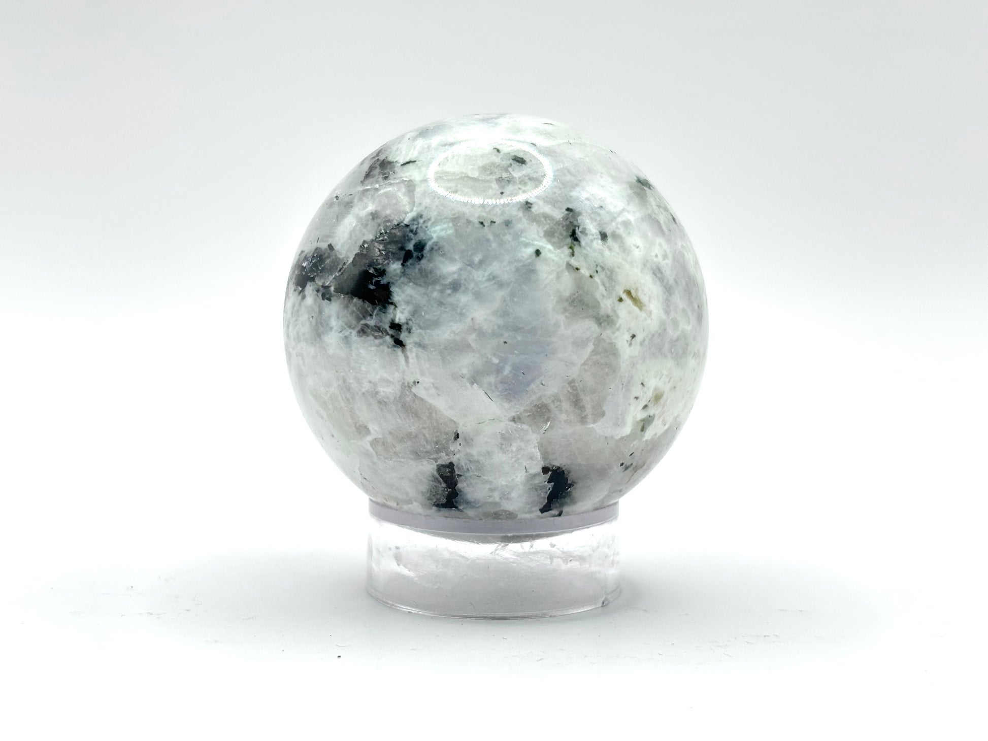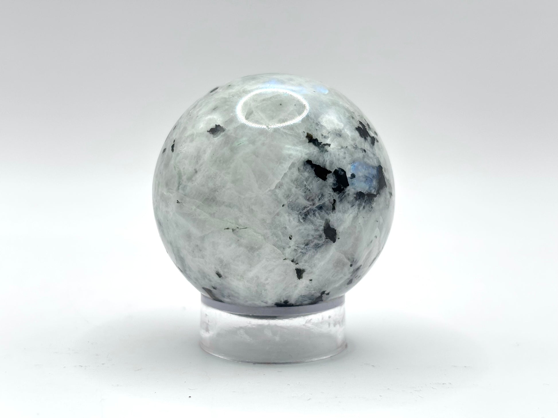 Rainbow Moonstone Sphere with Black Tourmaline Inclusions, Natural Healing Crystal Ball for Meditation, Energy Cleansing & Home Decor